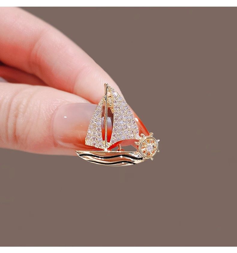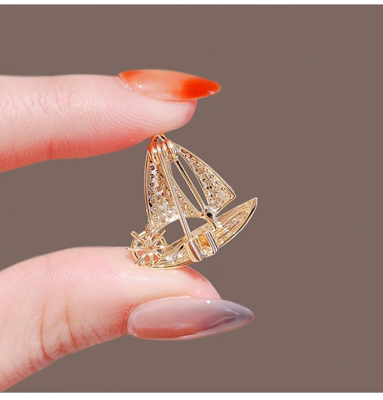Outlet Brand Clearance Sale Discount Bargain Sailboat Smooth Sailing Brooch Versatile Accessory Exquisite and Fashionable