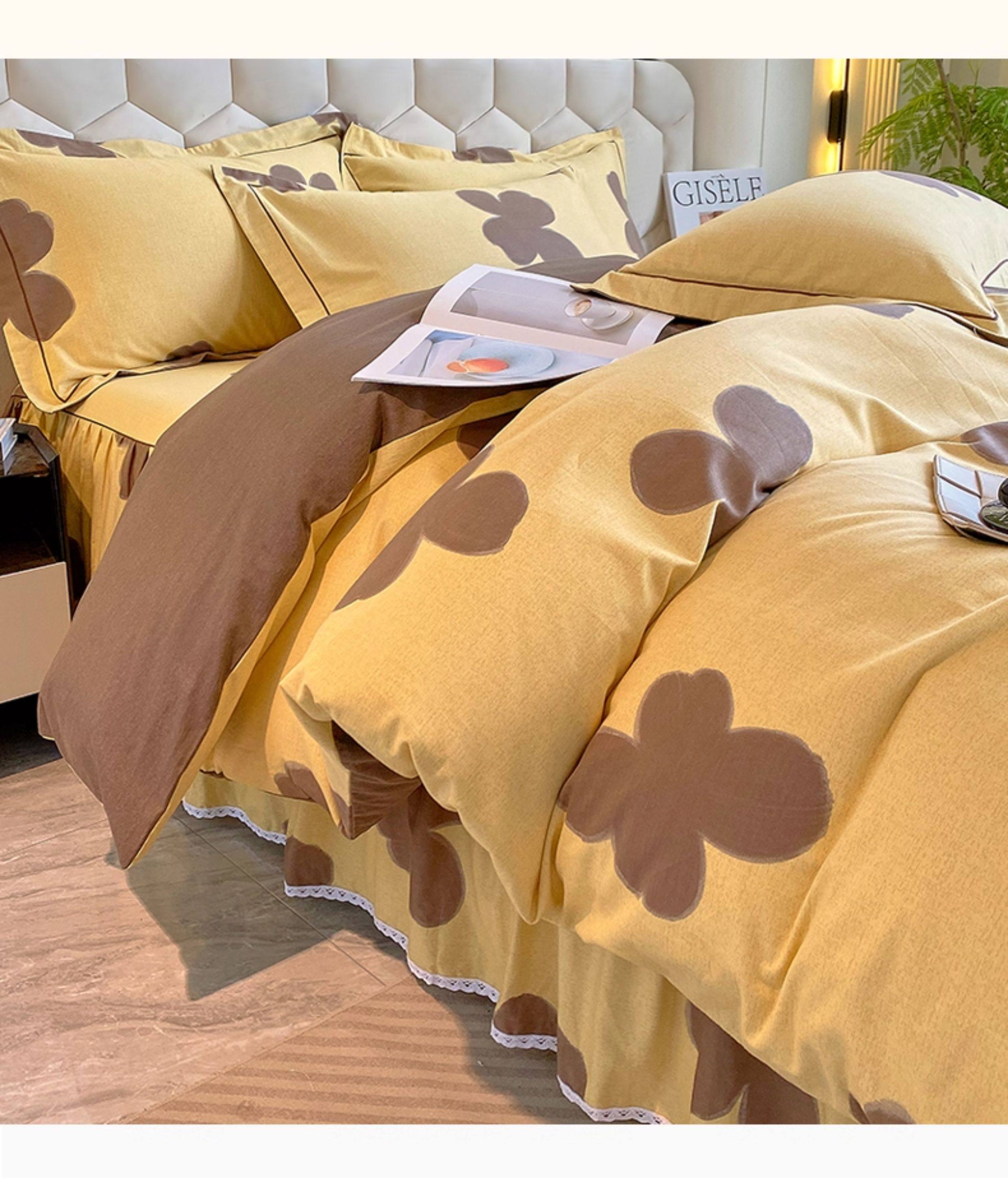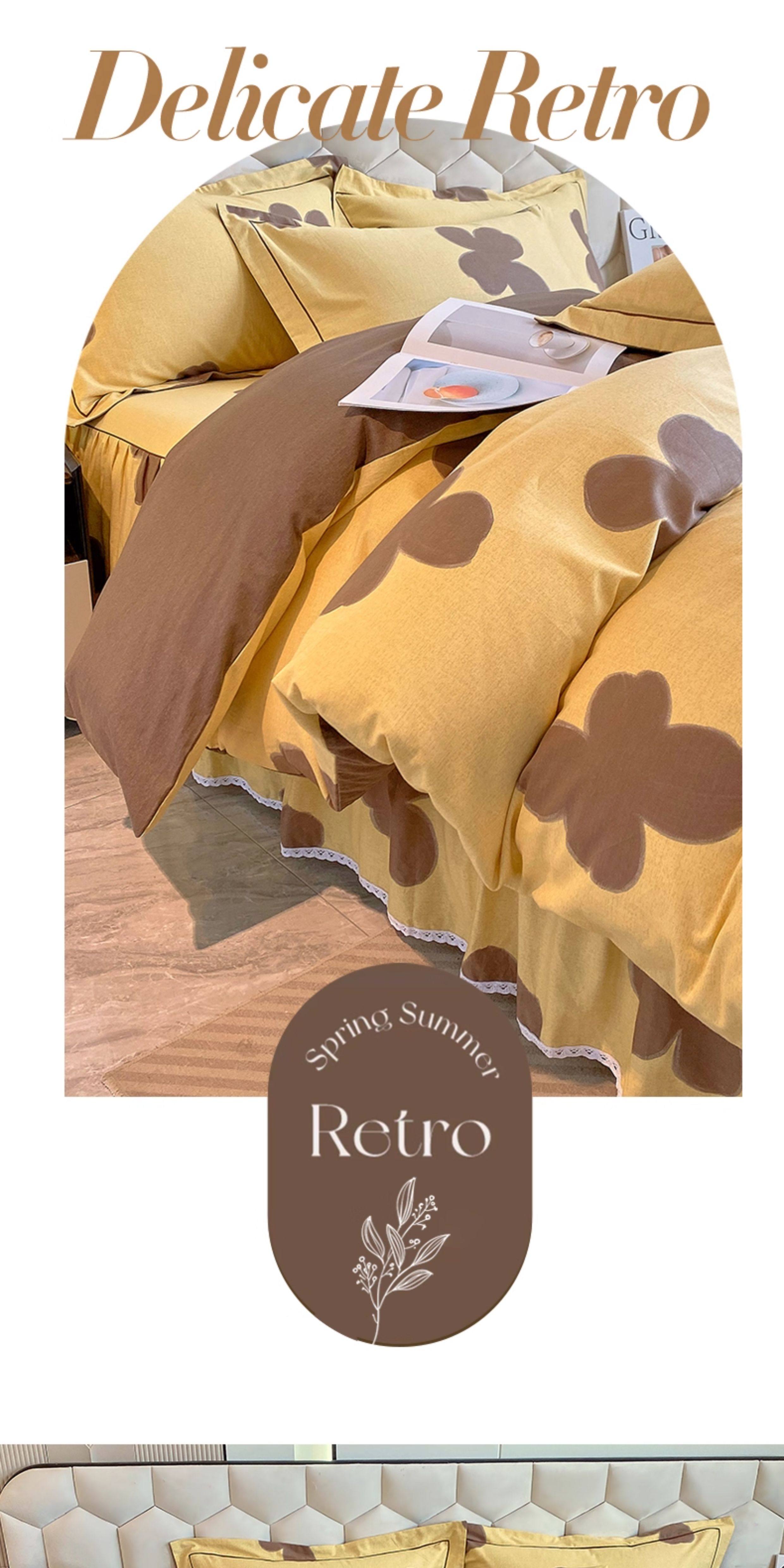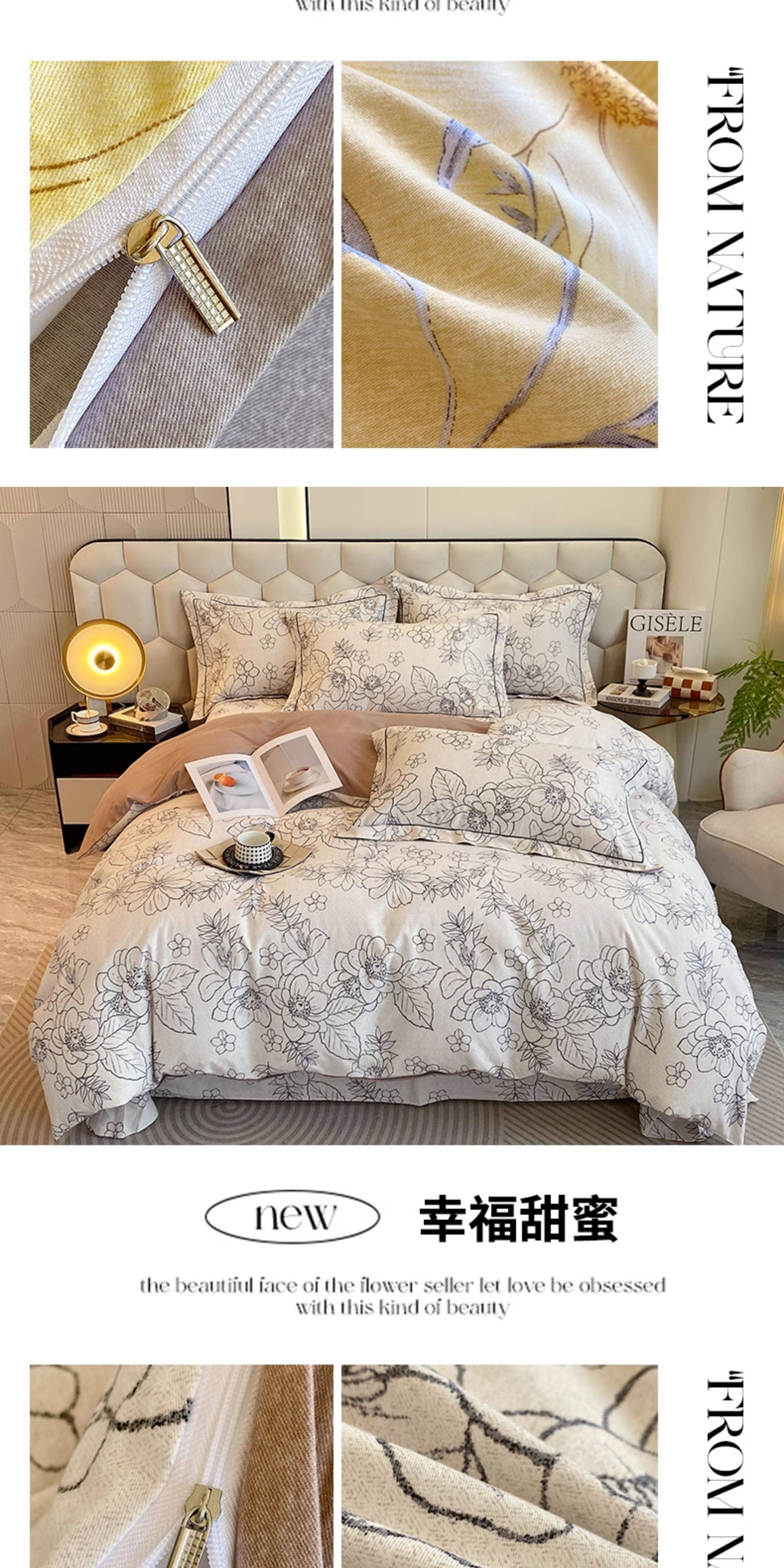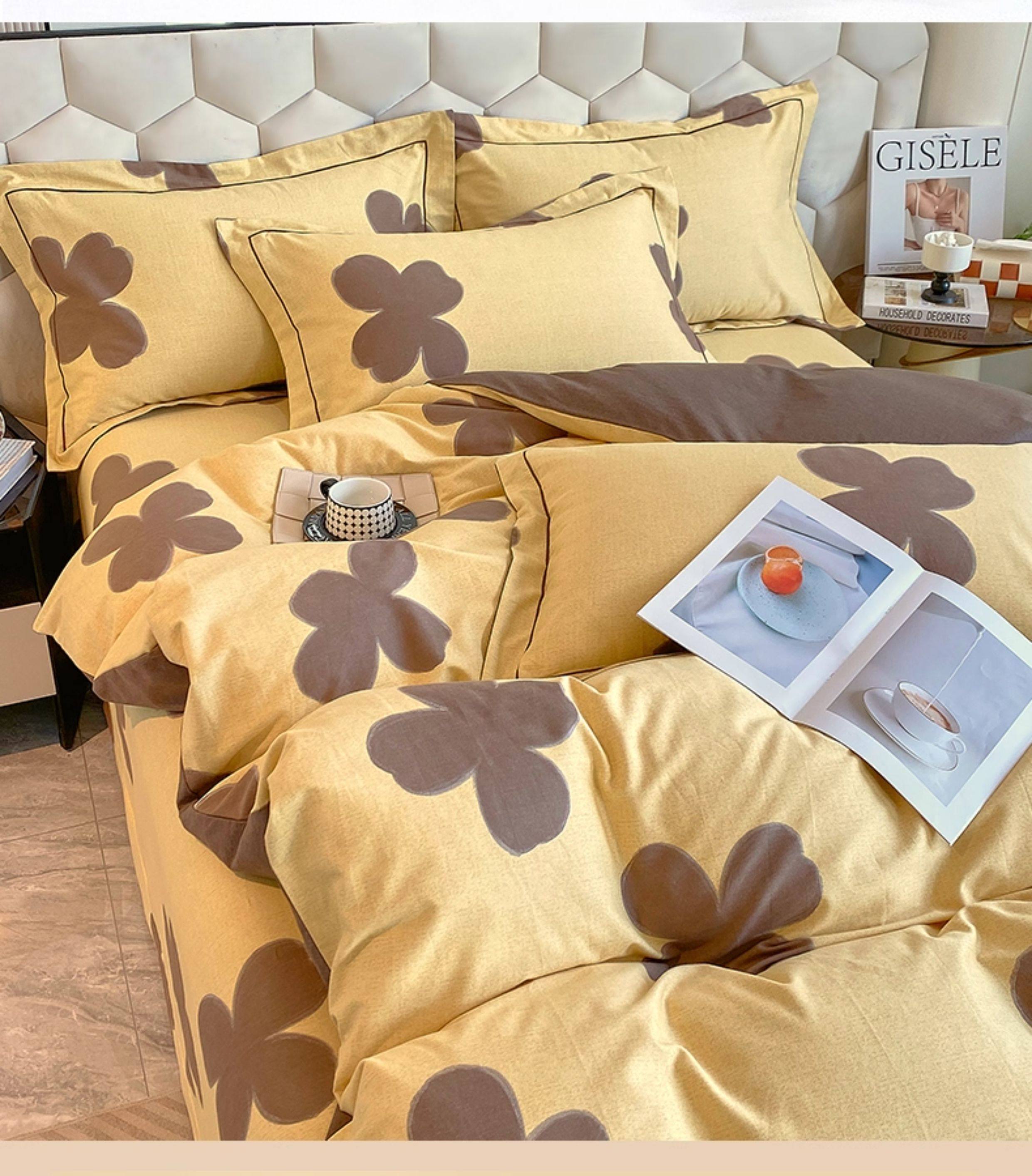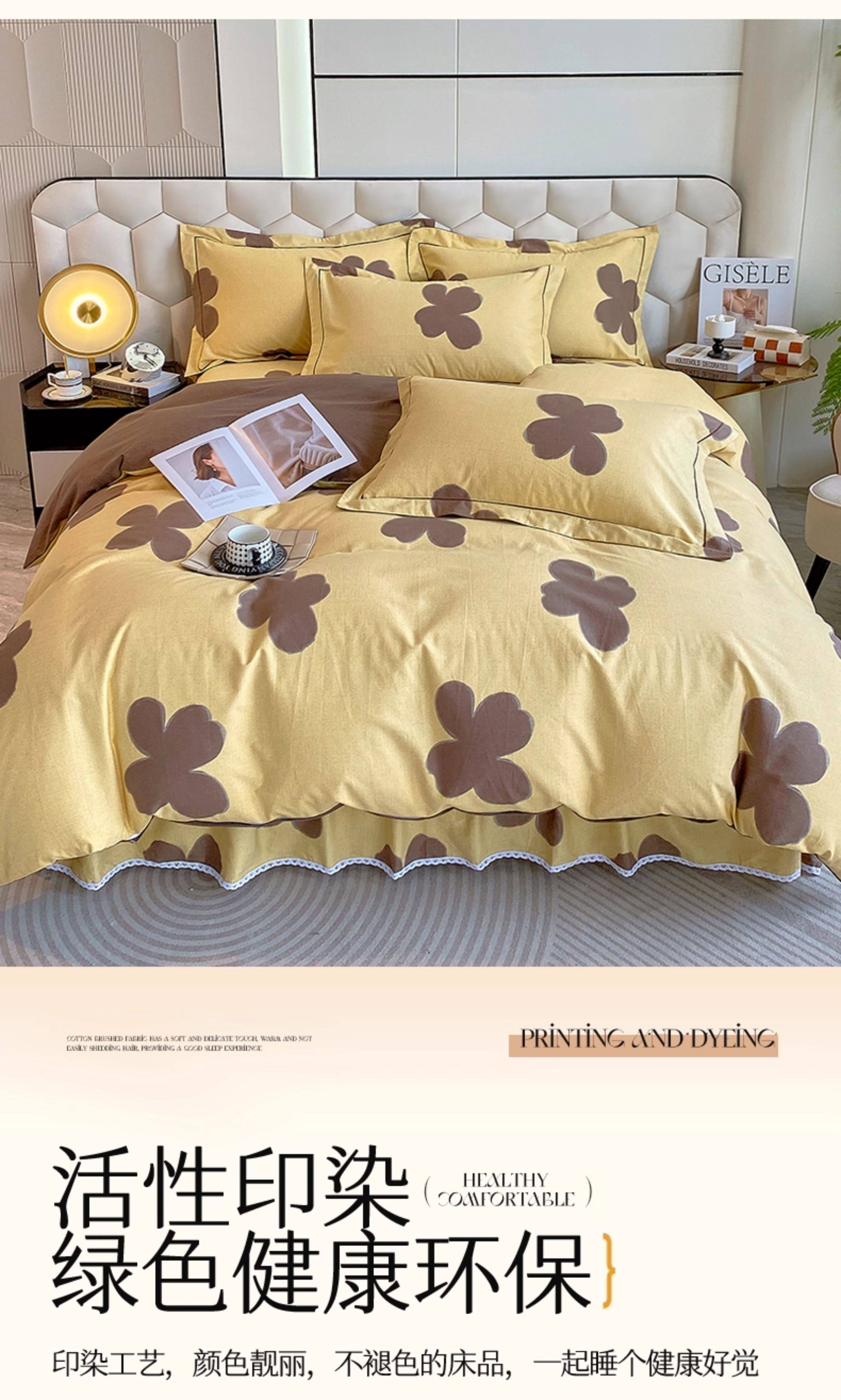 Thickened 100 Brushed Cotton Printed Four-Piece Set, Pure Cotton Bedding, Spring and Summer Bed Sheet, Duvet Cover, Simple 1.8m Size