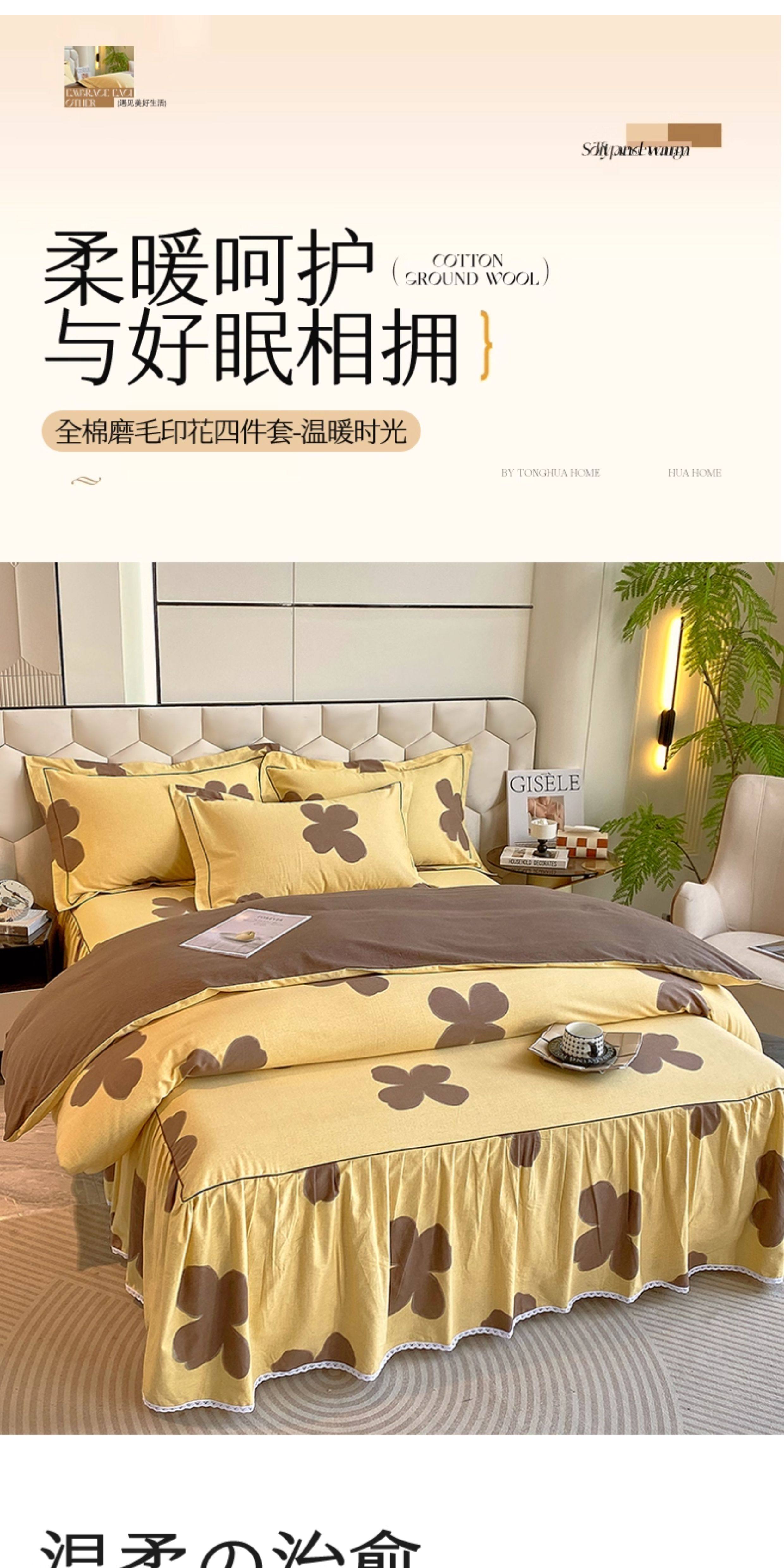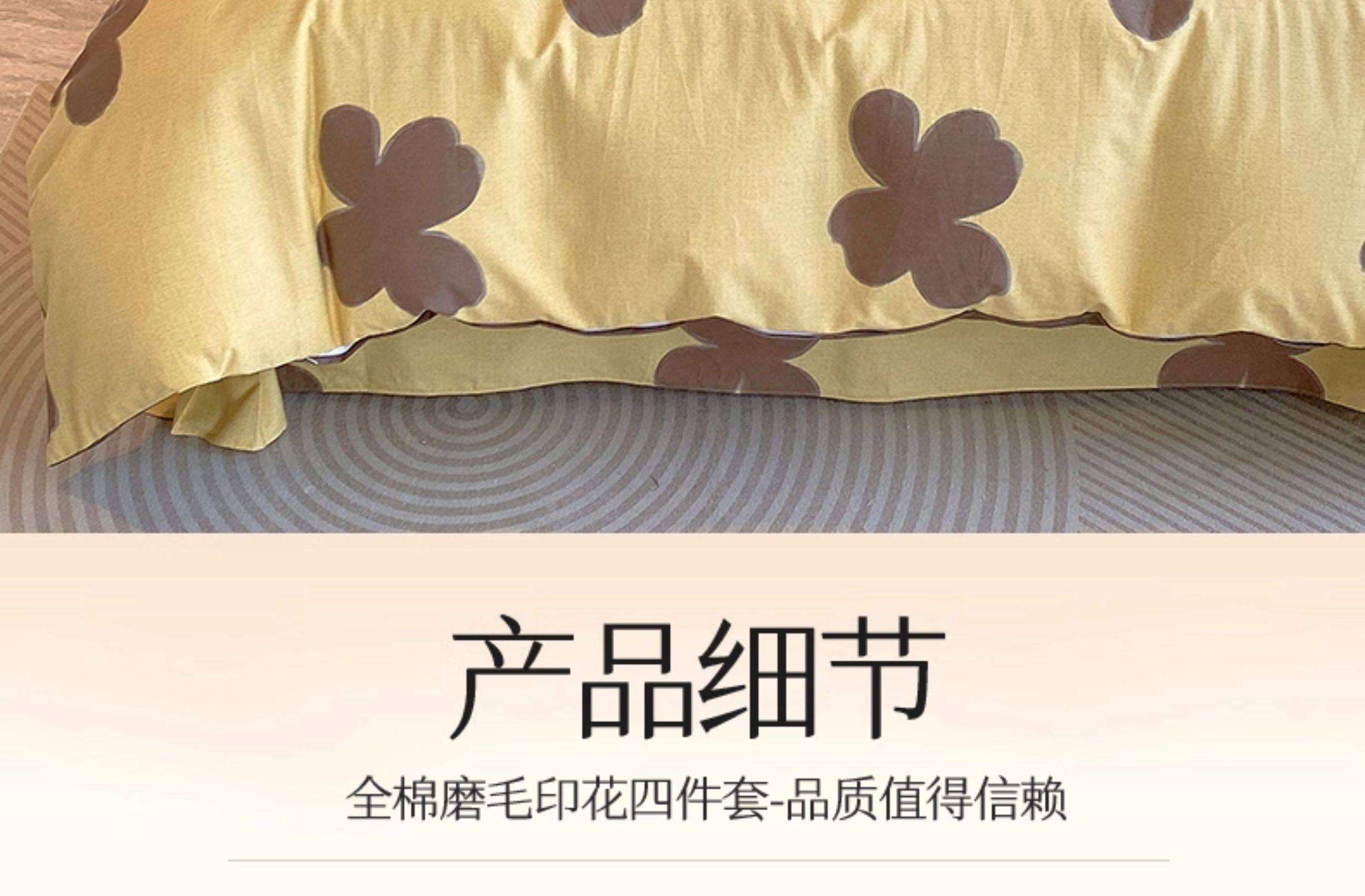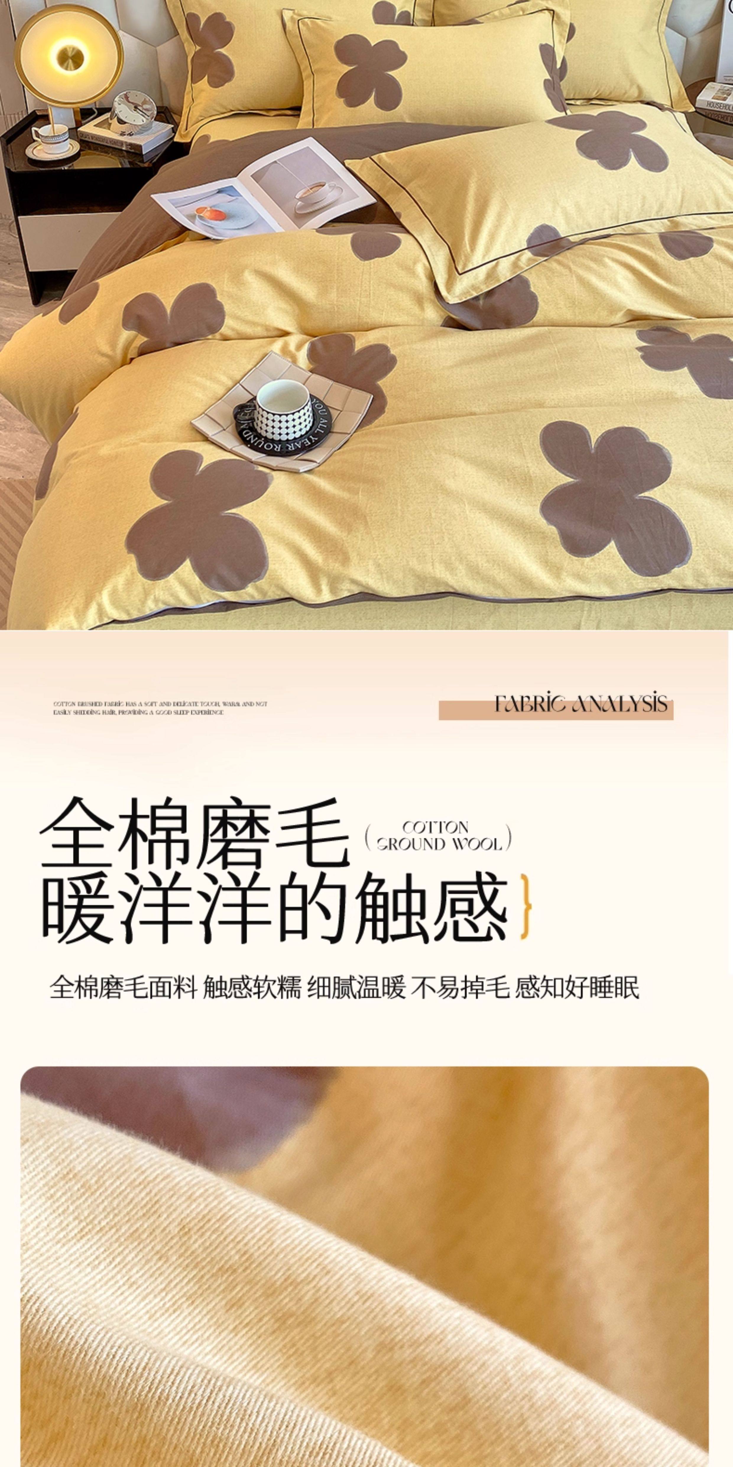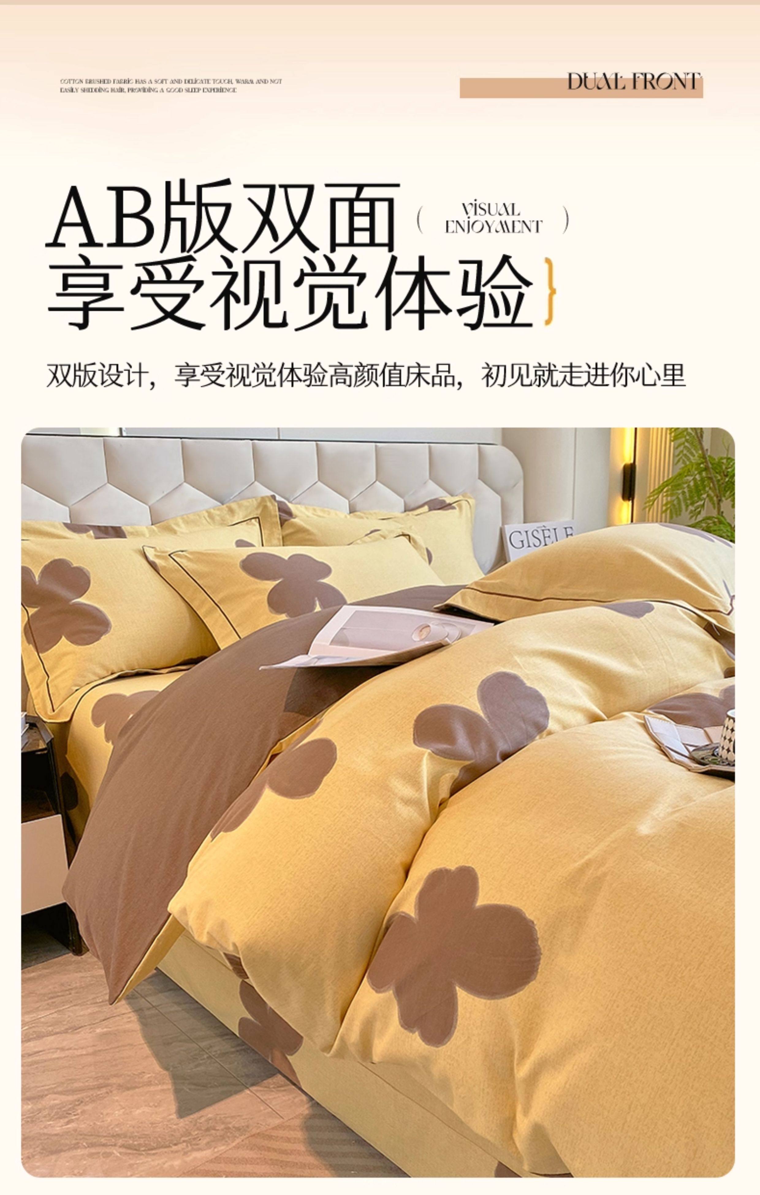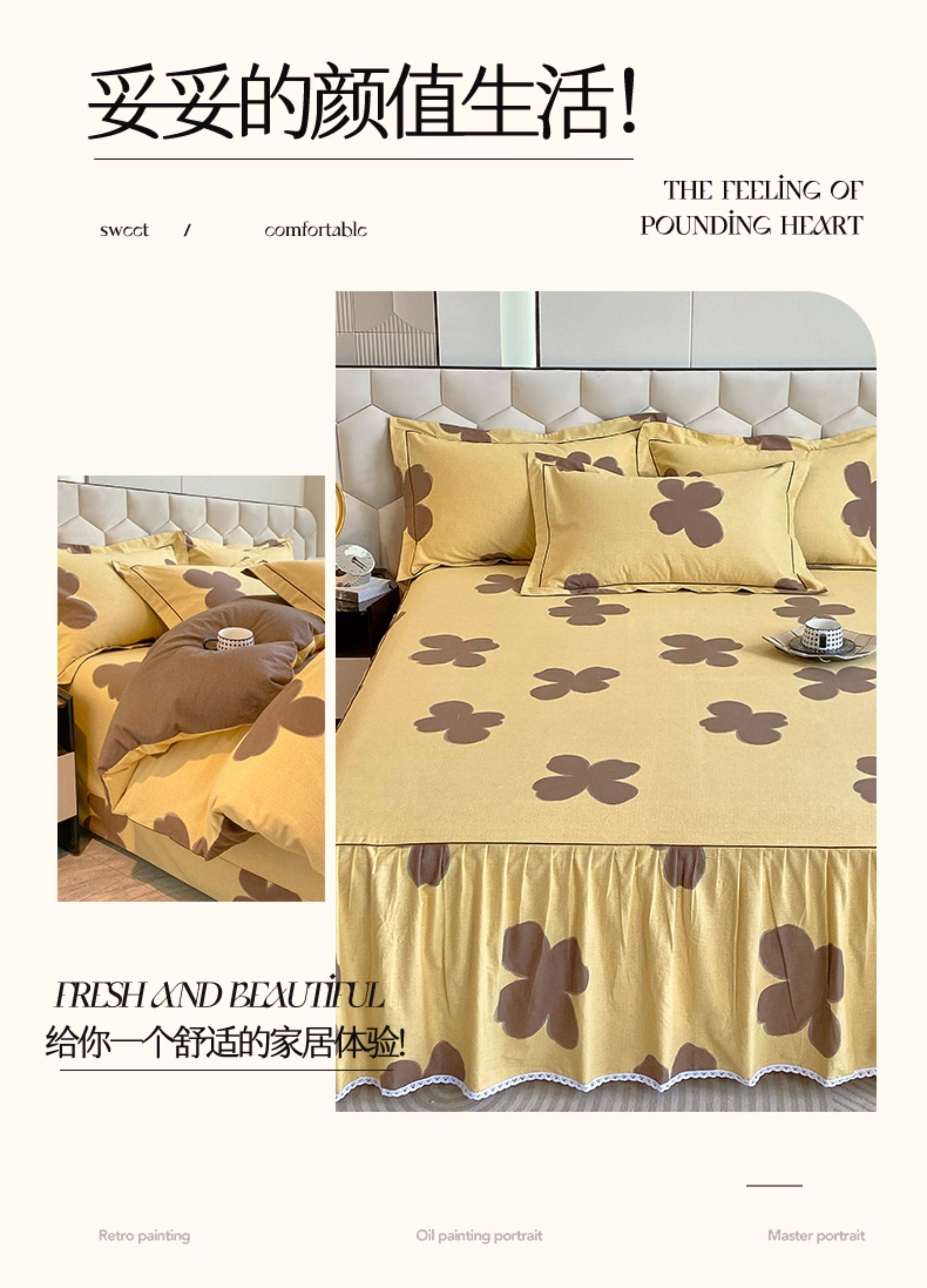 Thickened 100 Brushed Cotton Printed Four-Piece Set, Pure Cotton Bedding, Spring and Summer Bed Sheet, Duvet Cover, Simple 1.8m Size