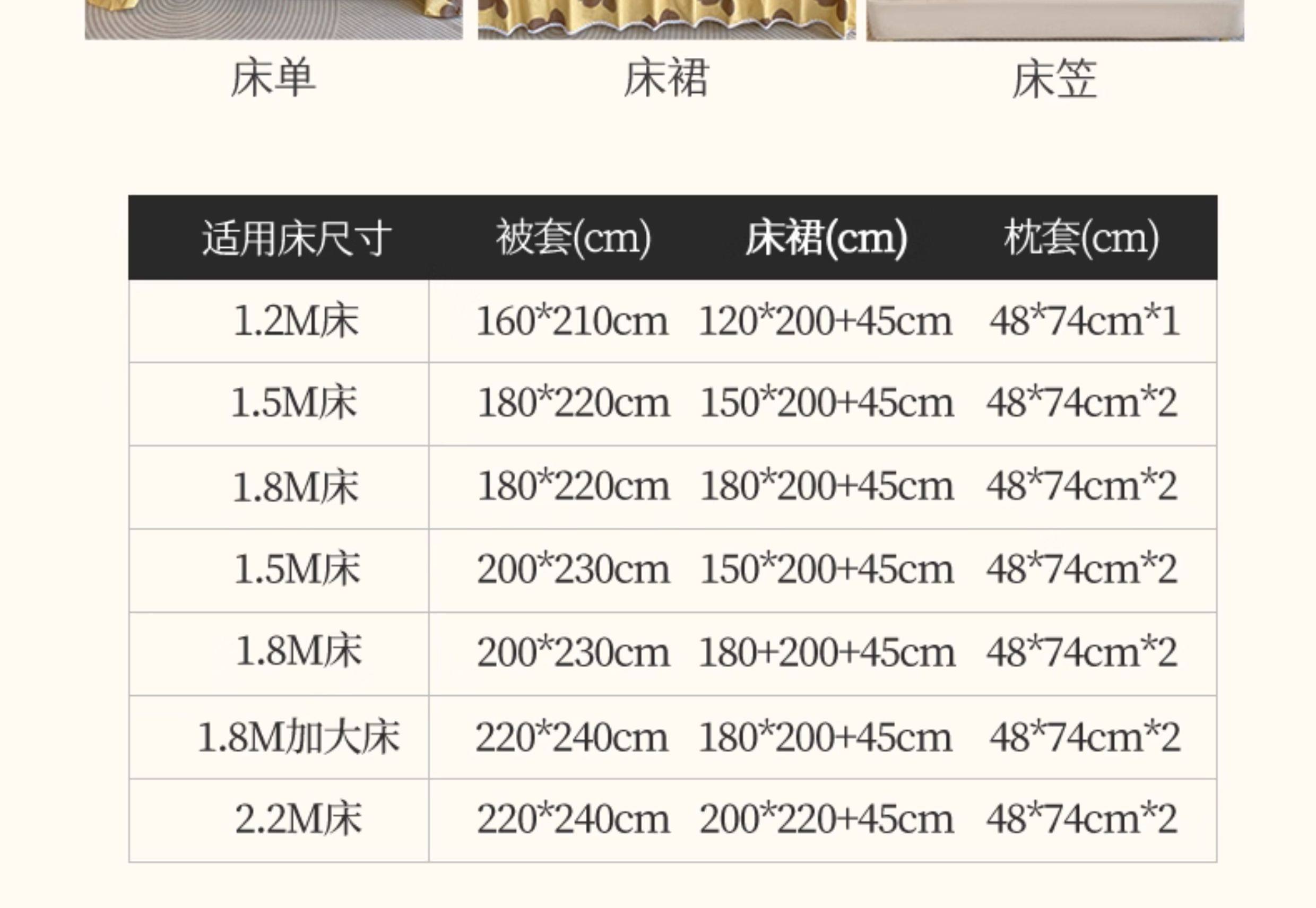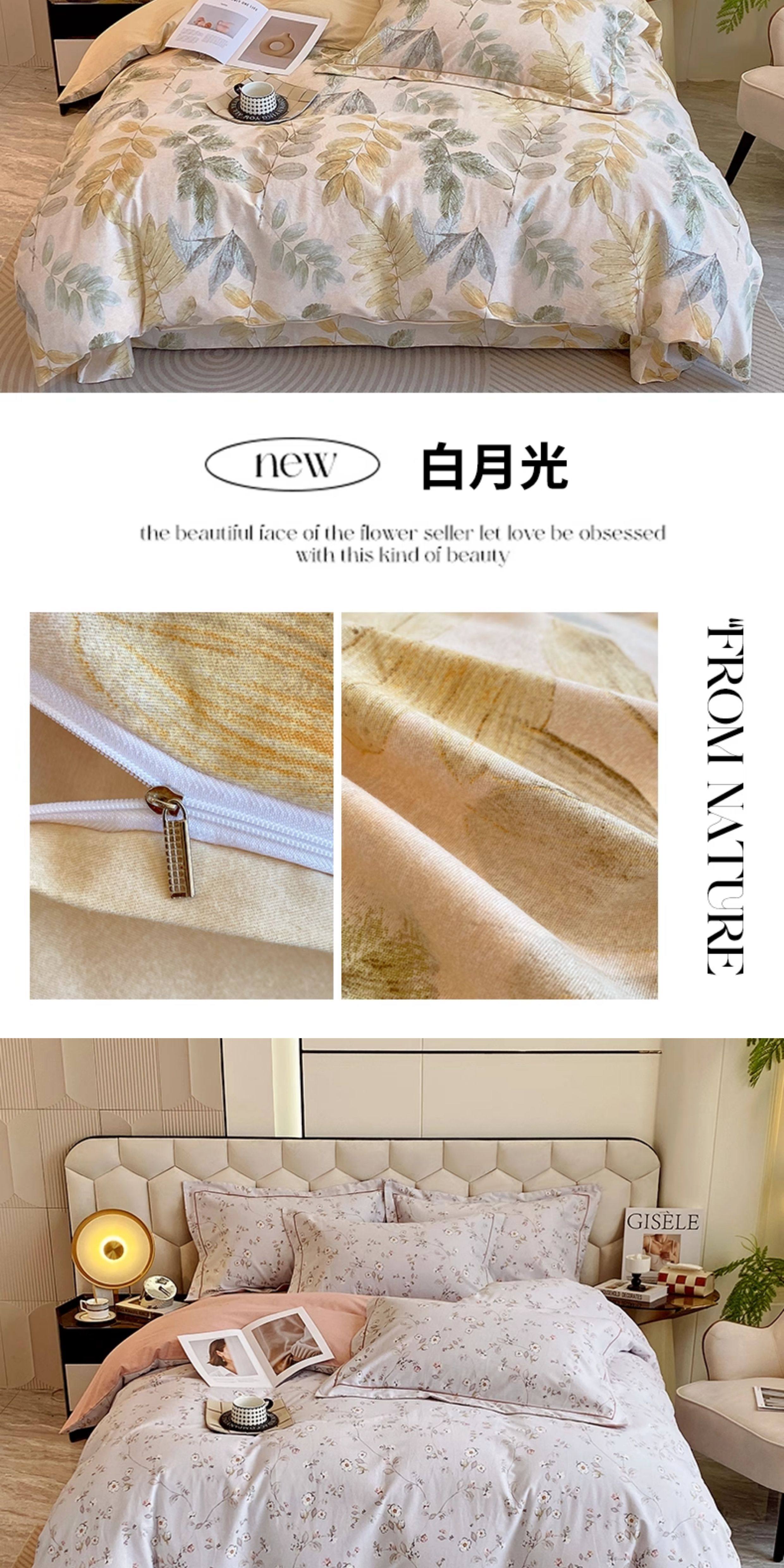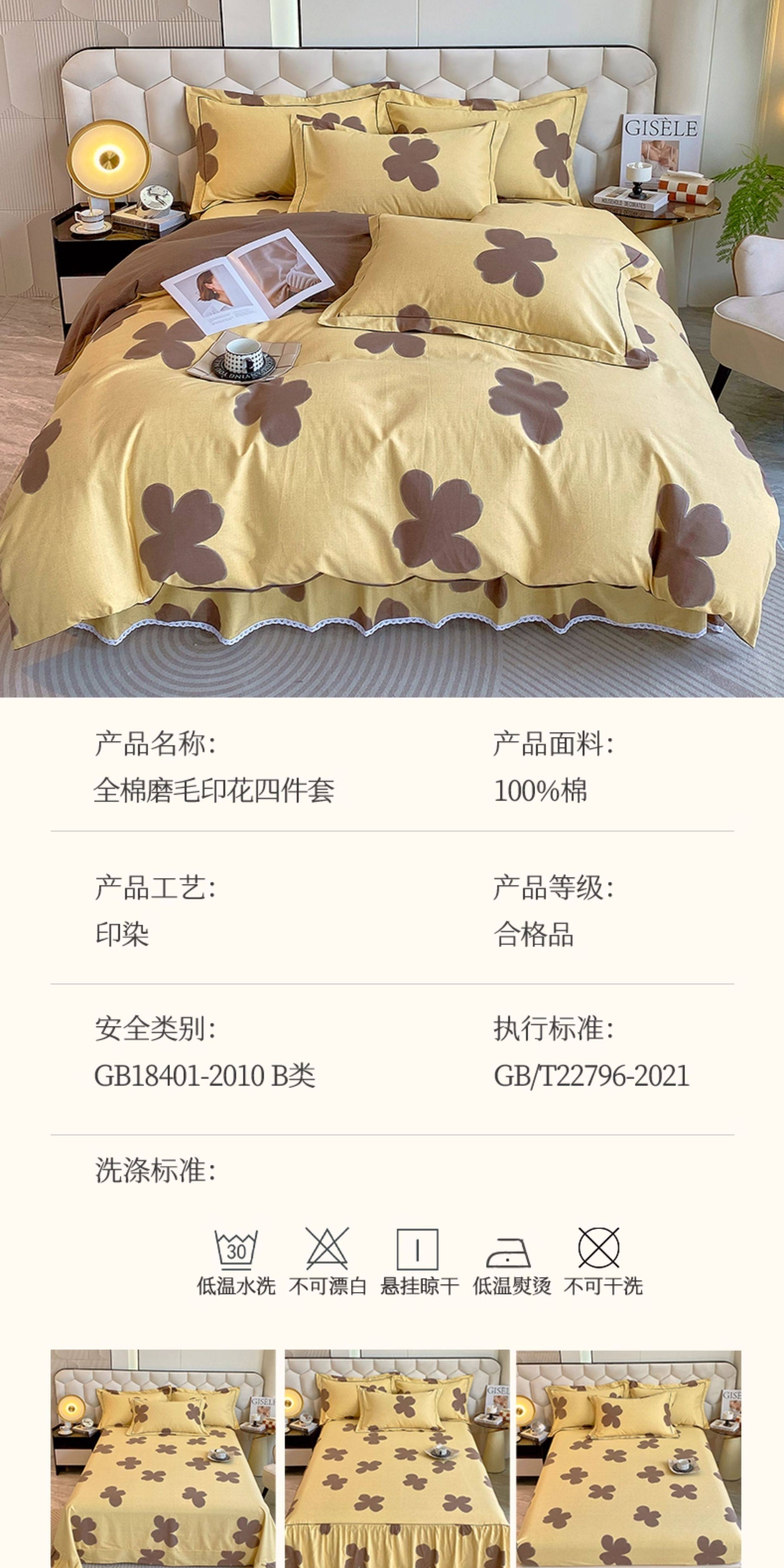 | Applicable Bed Size | 1.2m Dormitory Bed Sheet Three-Piece Set[Suitable for Quilt 150Cm*200Cm],1.5m Bed Sheet Four-Piece Set[Suitable for Quilt 200Cm×230Cm],1.8m Bed Sheet Four-Piece Set[Suitable for Quilt 200Cm×230Cm],2.0m Bed Sheet Four-Piece Set[Suitable for Quilt 220Cm×240Cm],1.5m Fitted Sheet Set of Four[Suitable for Quilt 200Cm×230Cm],1.8m Fitted Sheet Set of Four[Suitable for Quilt 200Cm×230Cm] |