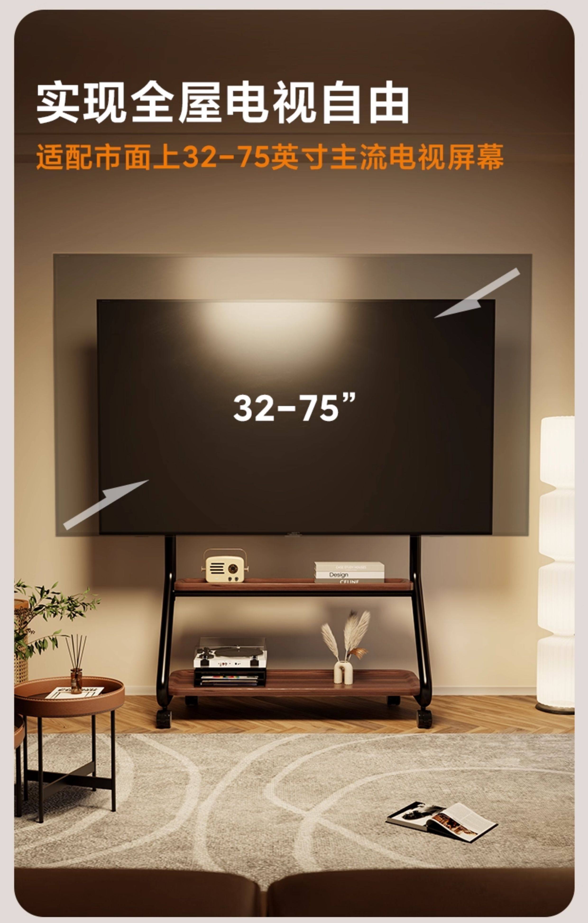 Movable Tv Stand with Wheels, Floor Cart 55/65/ 75inch Suitable for Hisense, Skyworth, Tcl, Etc