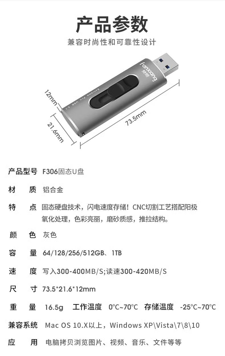 Fanxiang Mobile Solid-State Genuine USB Flash Drive for Computer, Large Capacity 1Tb, Car Storage 512Gb, High-Speed USB Flash Drive F306