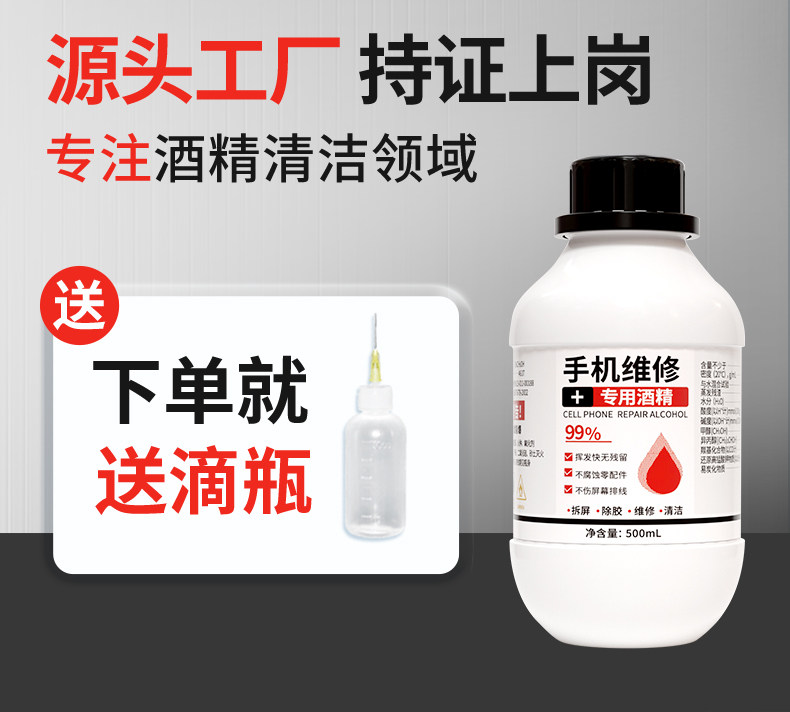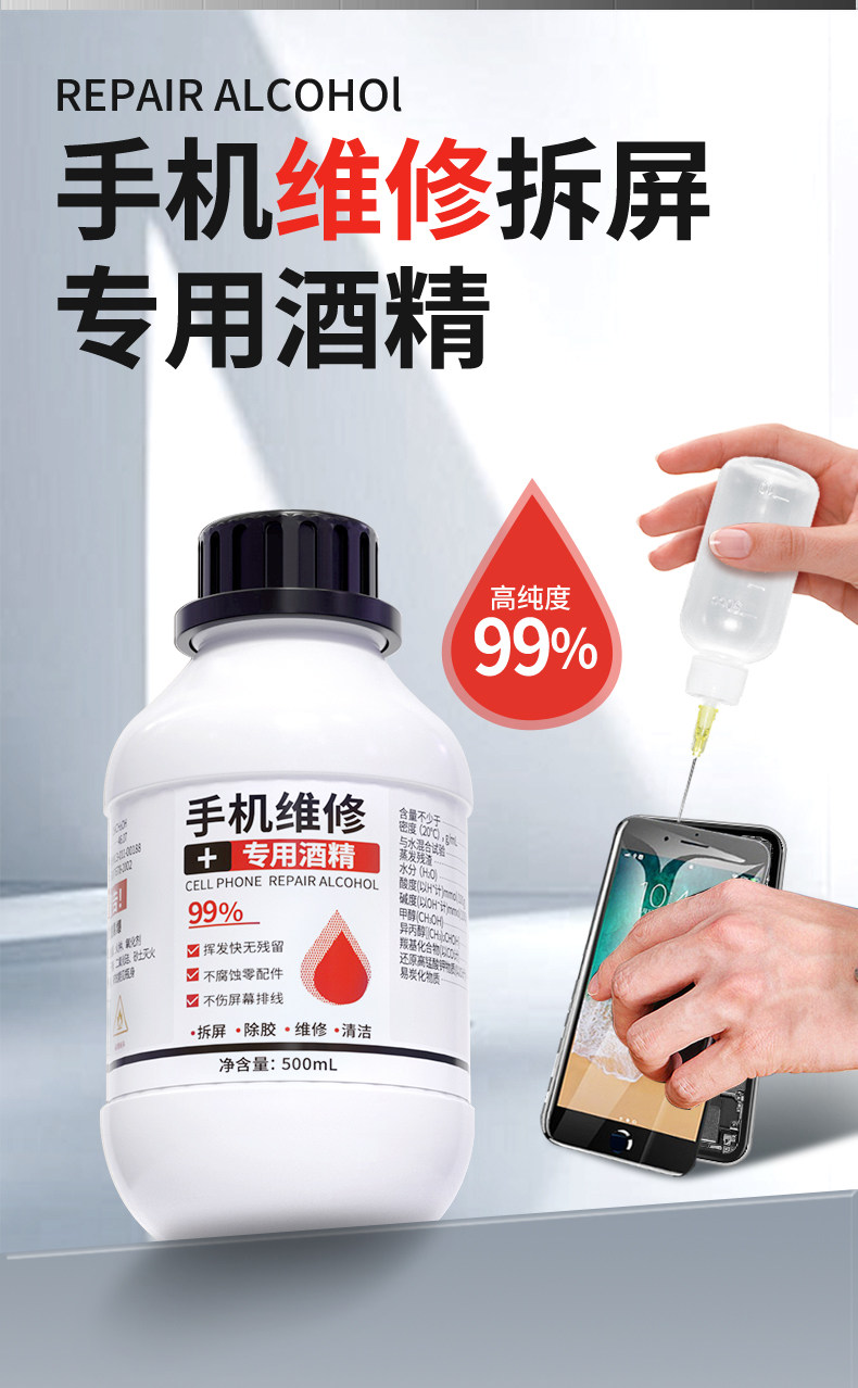 Special Alcohol Ethanol 99% for Mobile Phone Repair, Disassembly, Screen Removal, Glue Removal, Cleaning and Wiping of External Screens