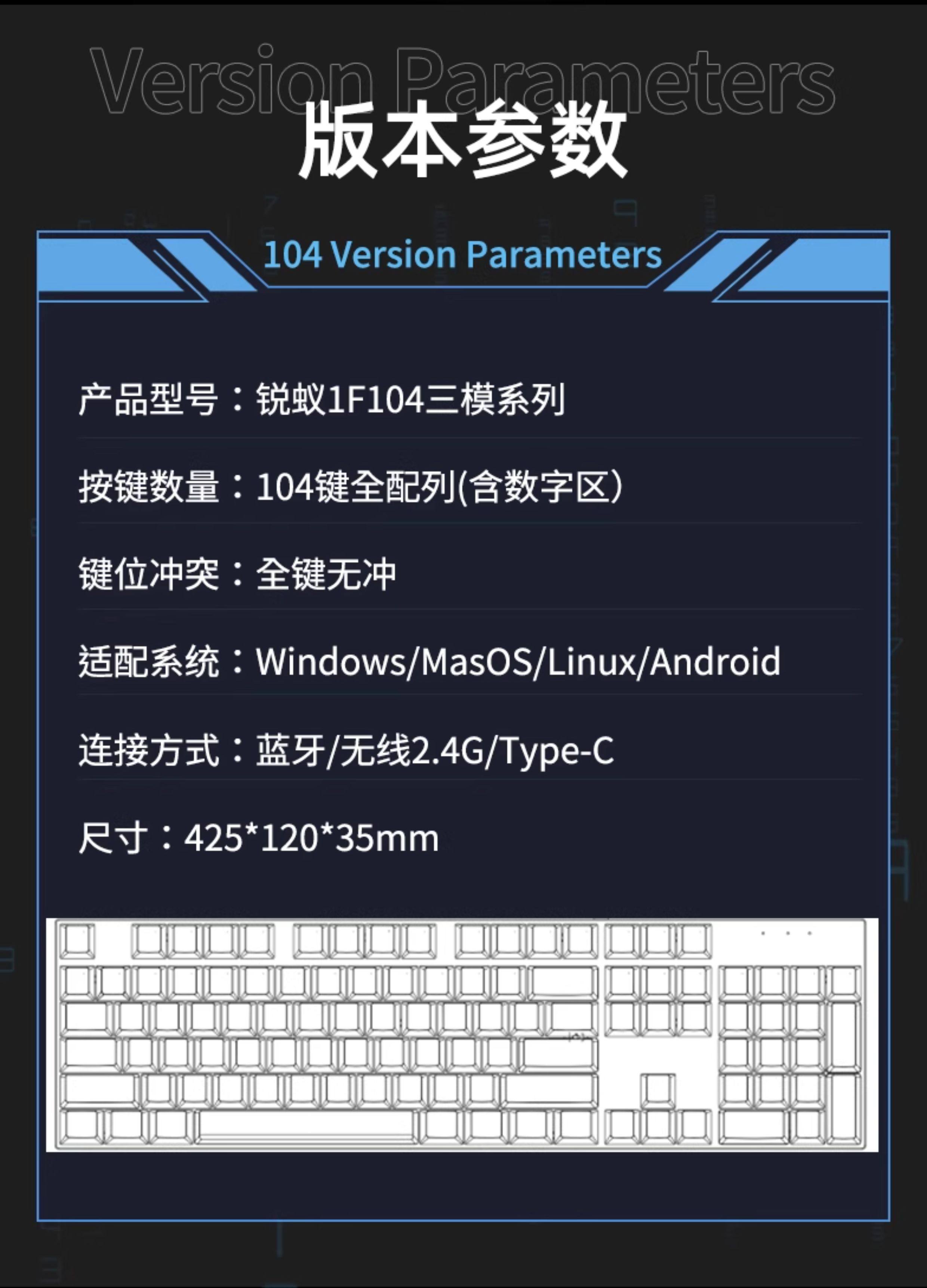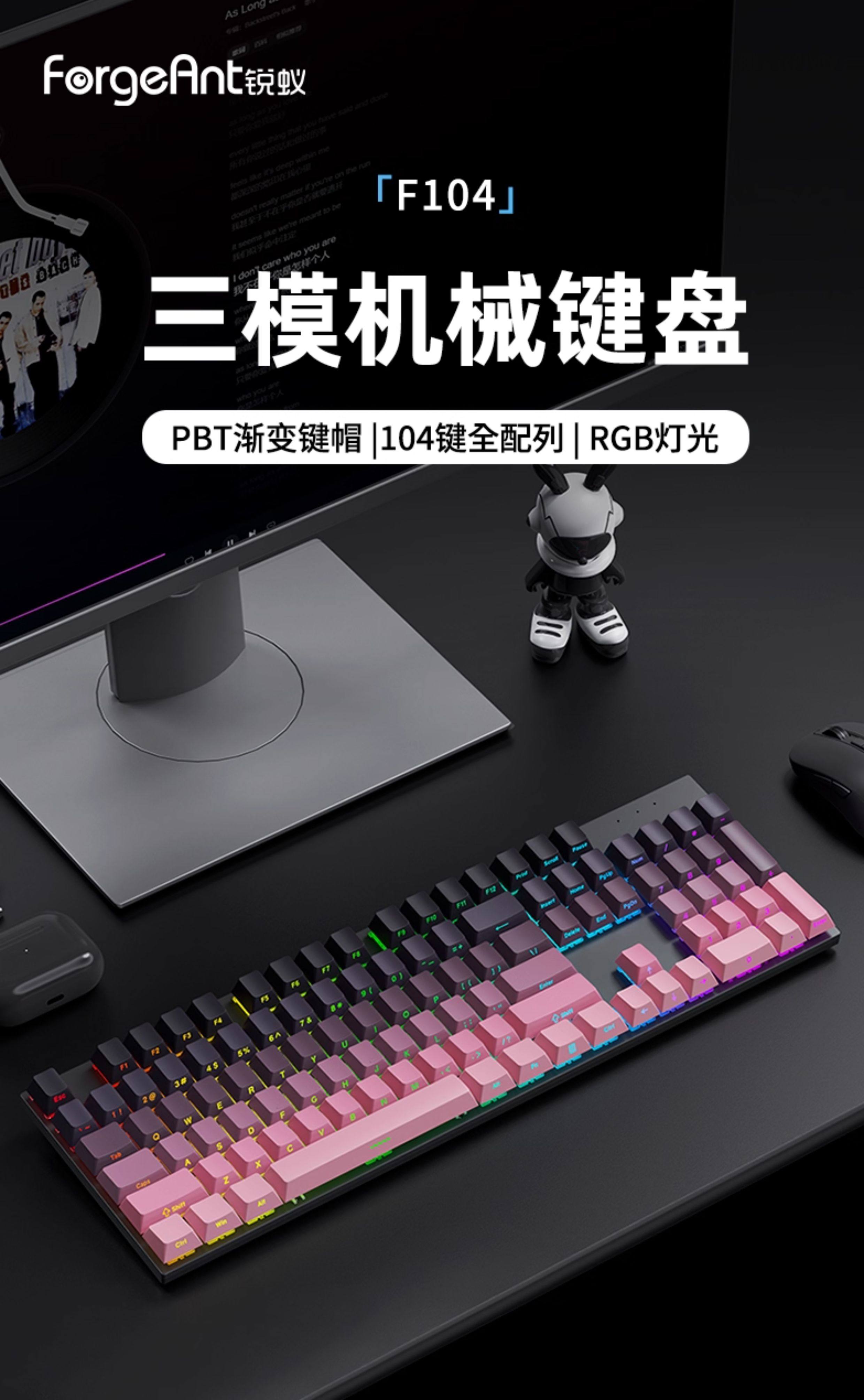 Ruiyi F104Pro Wireless Mechanical Keyboard Three-Mode 2.4g Bluetooth E-Sports Gaming Office Rgb Hot-Swappable Keyboard