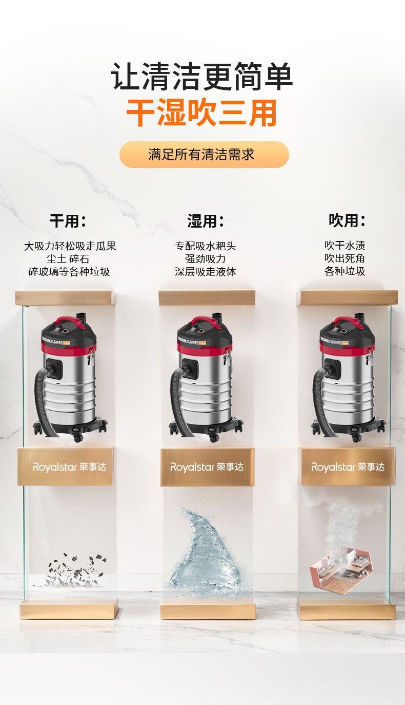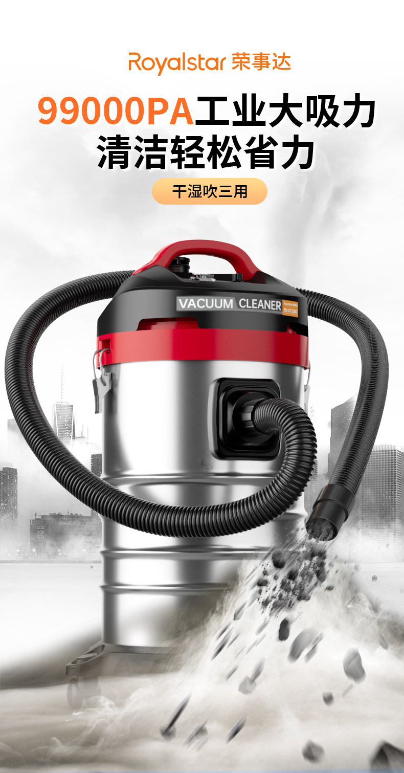 Royalstar Vacuum Cleaner for Car Wash Shops, Industrial Use, High Suction Power, Household Use, High Power, Strong Performance, Suitable for Renovation and Grout Cleaning, Corded Vacuum Cleaner