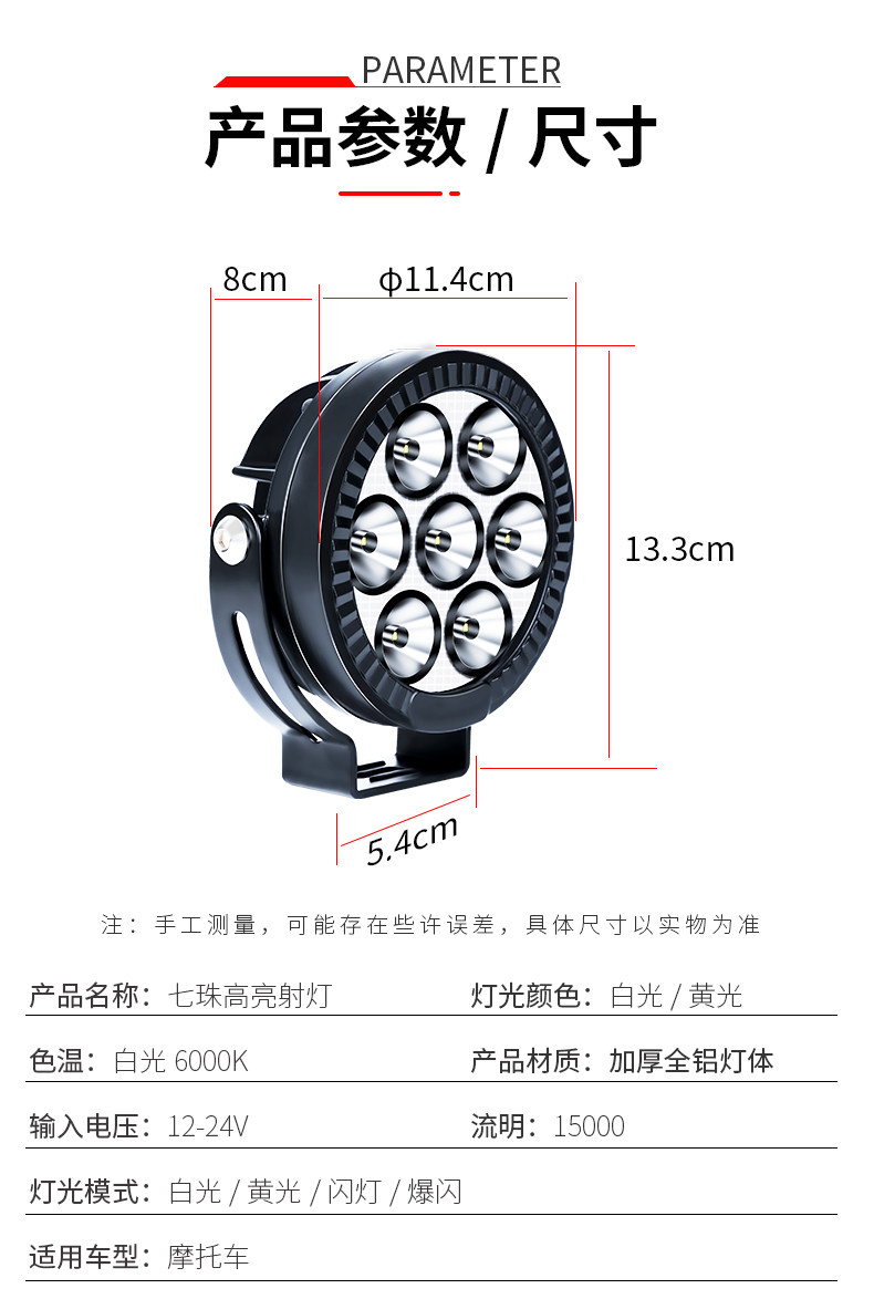 | Color Classification | Standard Version [1 Piece] Mirror Switch + Yellow Light Filter + Bracket,Standard Version [1 Piece] Handlebar Switch + Yellow Light Filter + Bracket,Deluxe Version [2 Pieces] Mirror Switch + Yellow Light Filter + Bracket,Deluxe Version [2 Pieces] Handlebar Switch + Yellow Light Filter + Bracket,Flagship Set [2 Pieces]: Strobe Light Kit + Mirror Mount + Yellow Light Filter + Bracket,Flagship Set [2 Pieces]: High-Intensity Flashing Light Set + Handlebar Switch + Amber Light Filter + Mounting Bracket,Upgraded Flagship Set [2 Pieces] Flash Line Set/Horn Flash/High Power 140W,Seven-Bead Top with Remote Control Model [2 High-Brightness and Strong Lights] Yellow and White Double Flash/Explosion Flash/Left and Right Flash (Rated 140W),Seven-Bead Top with Remote Control Model [2 High-Brightness and Strong Lights] Always On/Flash/Horn Flash/Headlight Linkage (Rated 140W) |