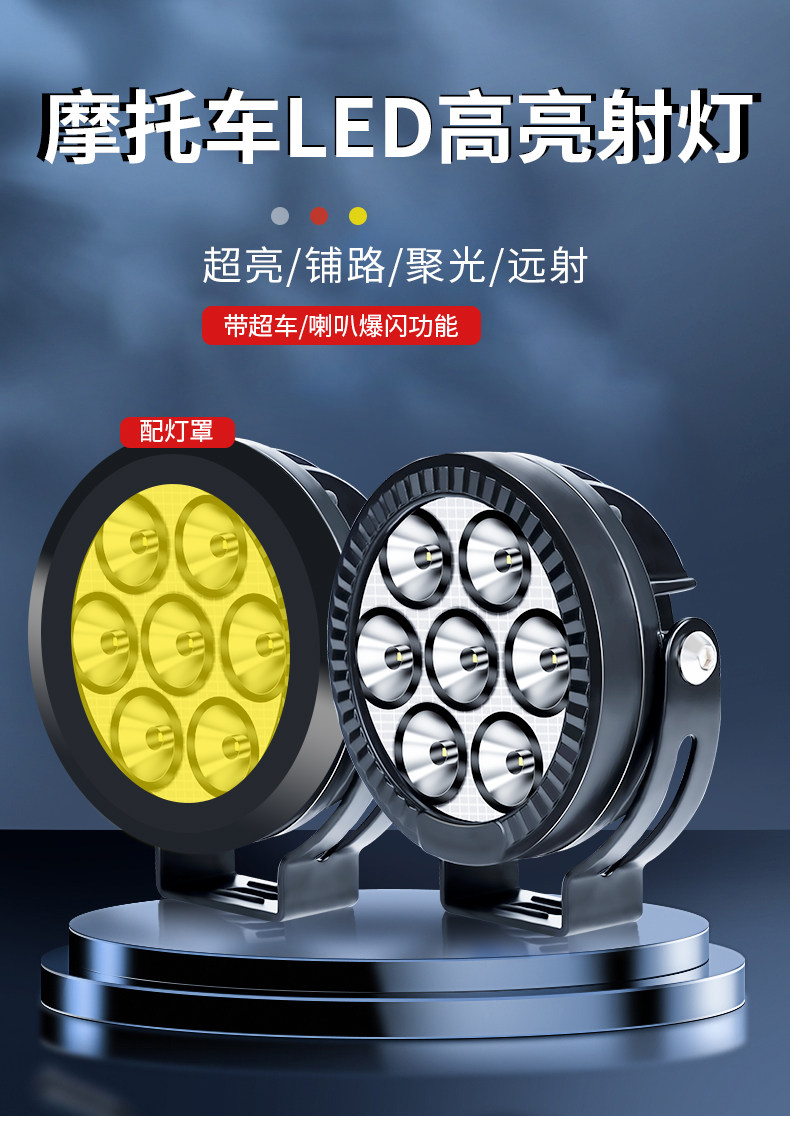 Tdgo7 Motorcycle Spotlight Led Road Lighting Strong Light External Headlight Waterproof Modified Yellow and White Light Strobe Auxiliary Light