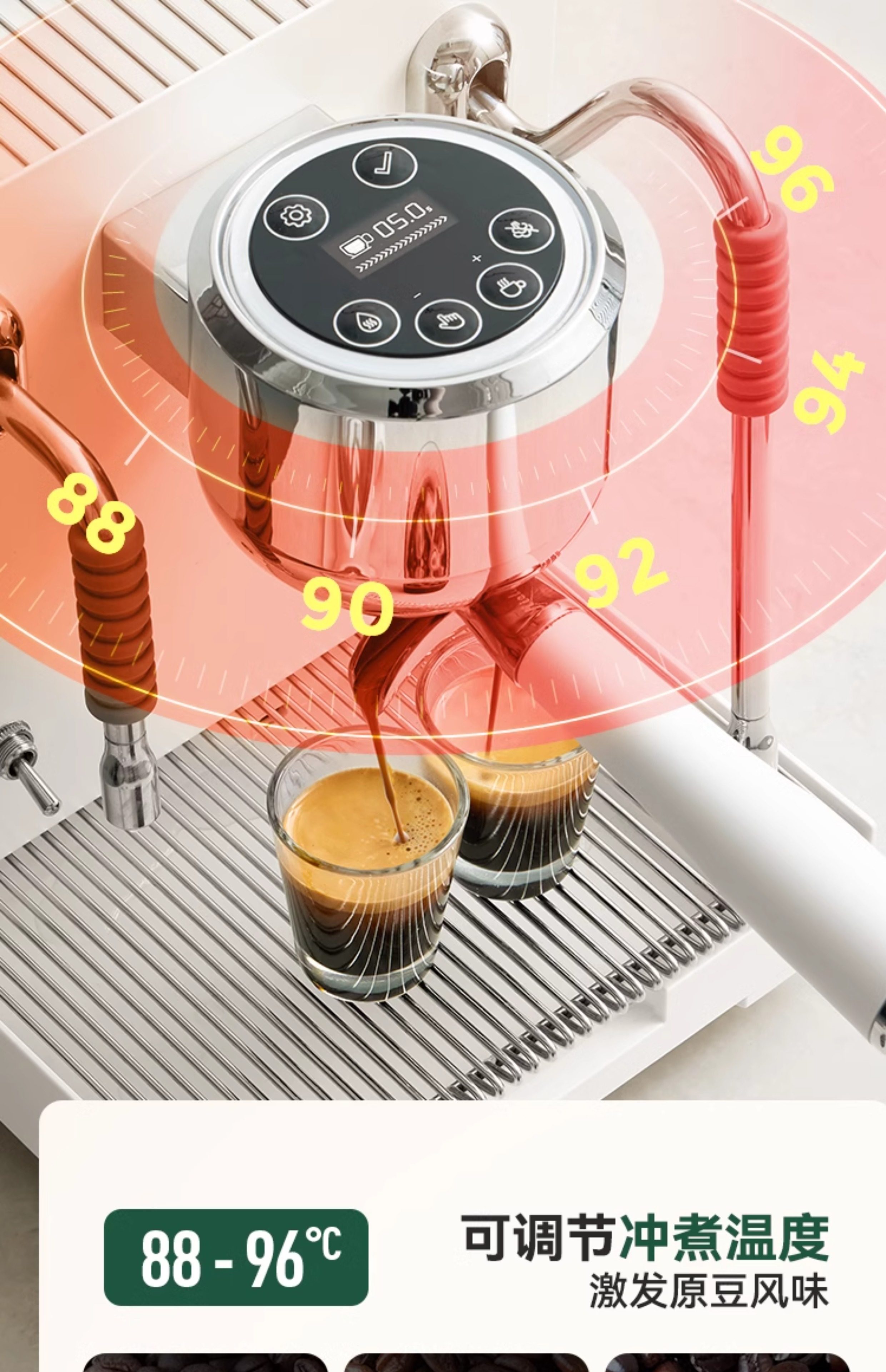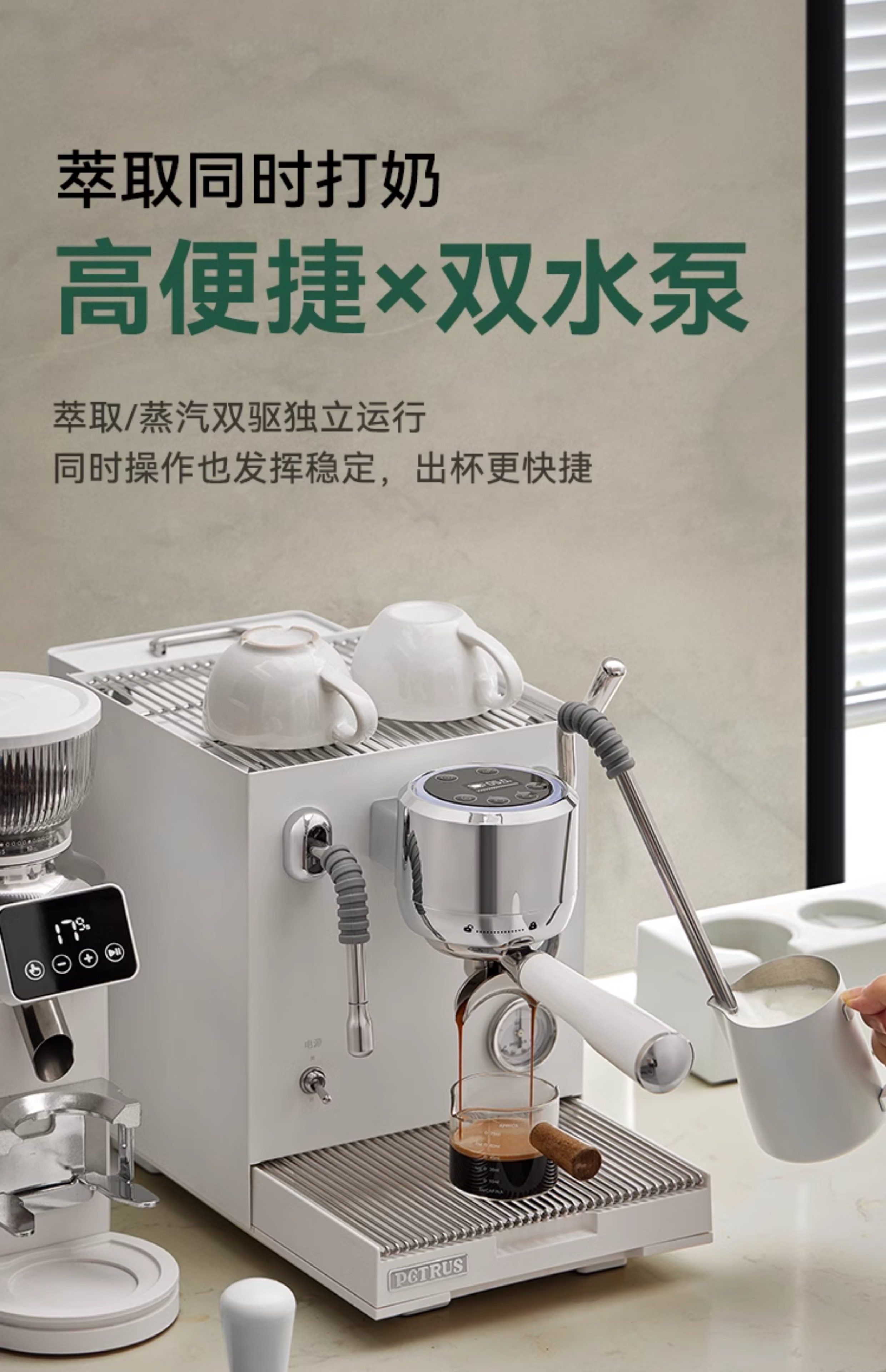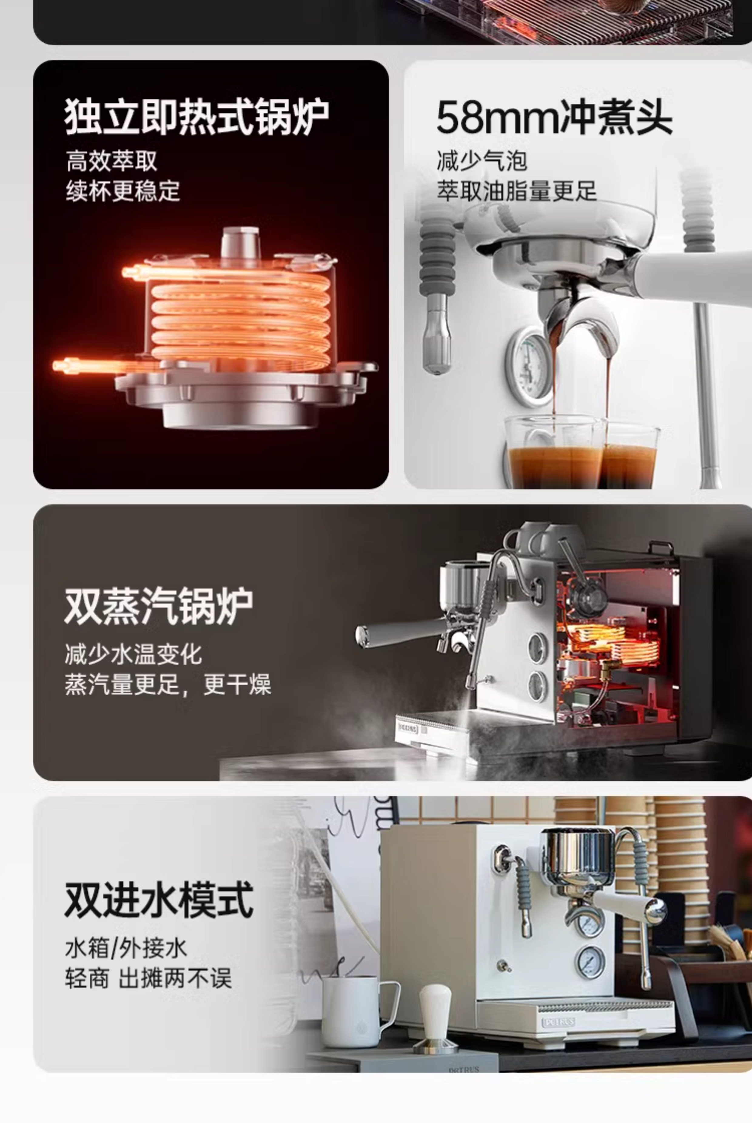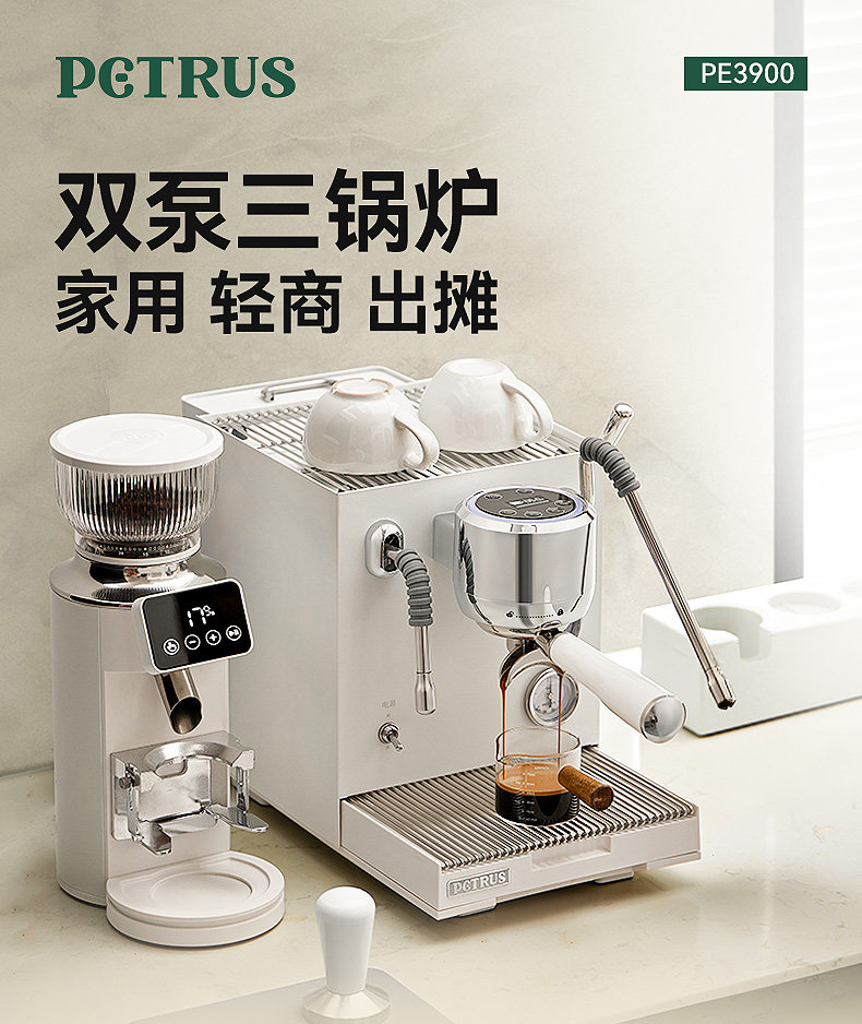 Bai Cui Pe3900 Small Commercial Coffee Machine, Fully Semi-Automatic, Home Use, Freshly Ground Espresso, Dual Pump, Triple Boiler, Platinum
