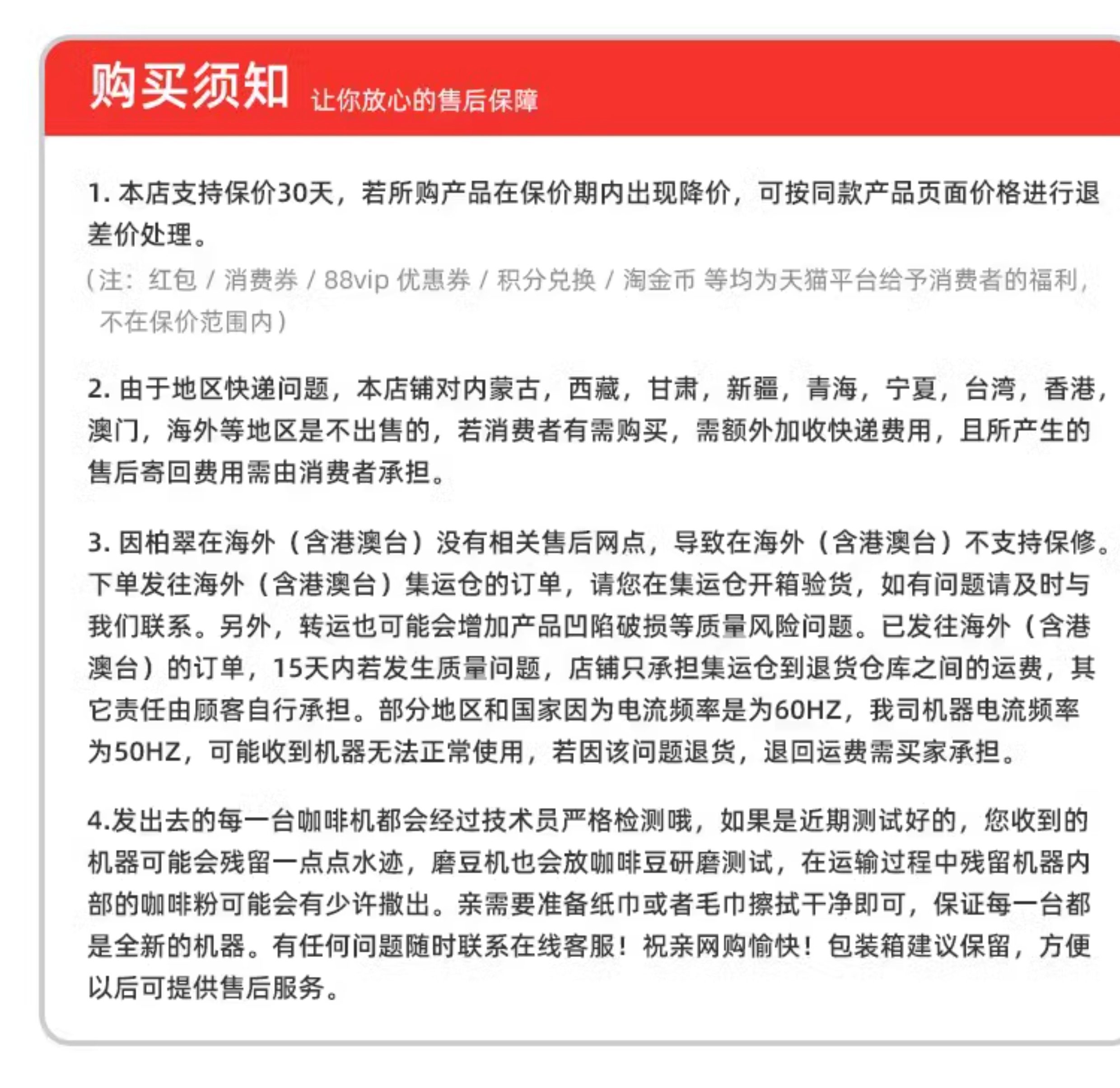 | Included with the Package | 3-Year Coffee Bean Privilege |