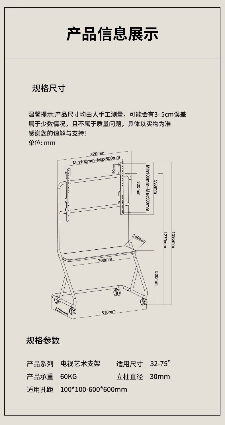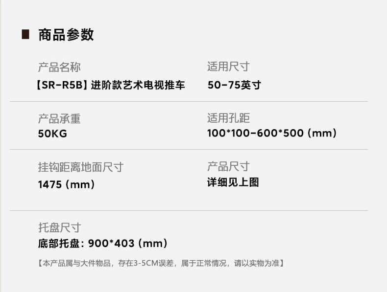 | Color Classification | Black Small (Fits 32-65inch) Double-Layer Storage| Perforated Board Storage + Accessories Set| ,White Small (Fits 32-65inch) Double-Layer Shelf| Perforated Board Storage + Accessories Set| ,Black Large Size (Applicable to 32-75inch) Double Layer Storage| Perforated Board Storage + Accessories Set| ,White Large Size (Applicable to 32-75inch) Double Layer Storage| Perforated Board Storage + Accessories Set| ,Black Premium (Compatible with 60-100inch) Double-Layer Storage| Perforated Board Storage + Accessories Set| ,White Top Configuration (Applicable to 60-100inch) Double-Layer Storage| Perforated Board Storage + Accessories Set| ,Stainless Steel Movable Electric Rail (Applicable to 32-75inch) Double-Layer Storage| Perforated Board + Accessories Set| ,Cream White Mobile Rail (Suitable for 32-75inch) Solid Wood Shelves| Perforated Board + Accessories Set| ,Electroplated Silver Model (Applicable to 50-75inch) Double-Layer Storage| Perforated Board + Accessories Set| ,Black (Applicable to 32-75inch) Single Layer Storage | Perforated Board + Accessories Set | ,[ Take This]Black 32-75inch| Double Layer Storage| Perforated Board + Accessories Set| ,[ Take This]White 32-75inch| Double Layer Storage| Perforated Board + Accessories Set| ,[60 Days Free Trial]Merchant Commitment |