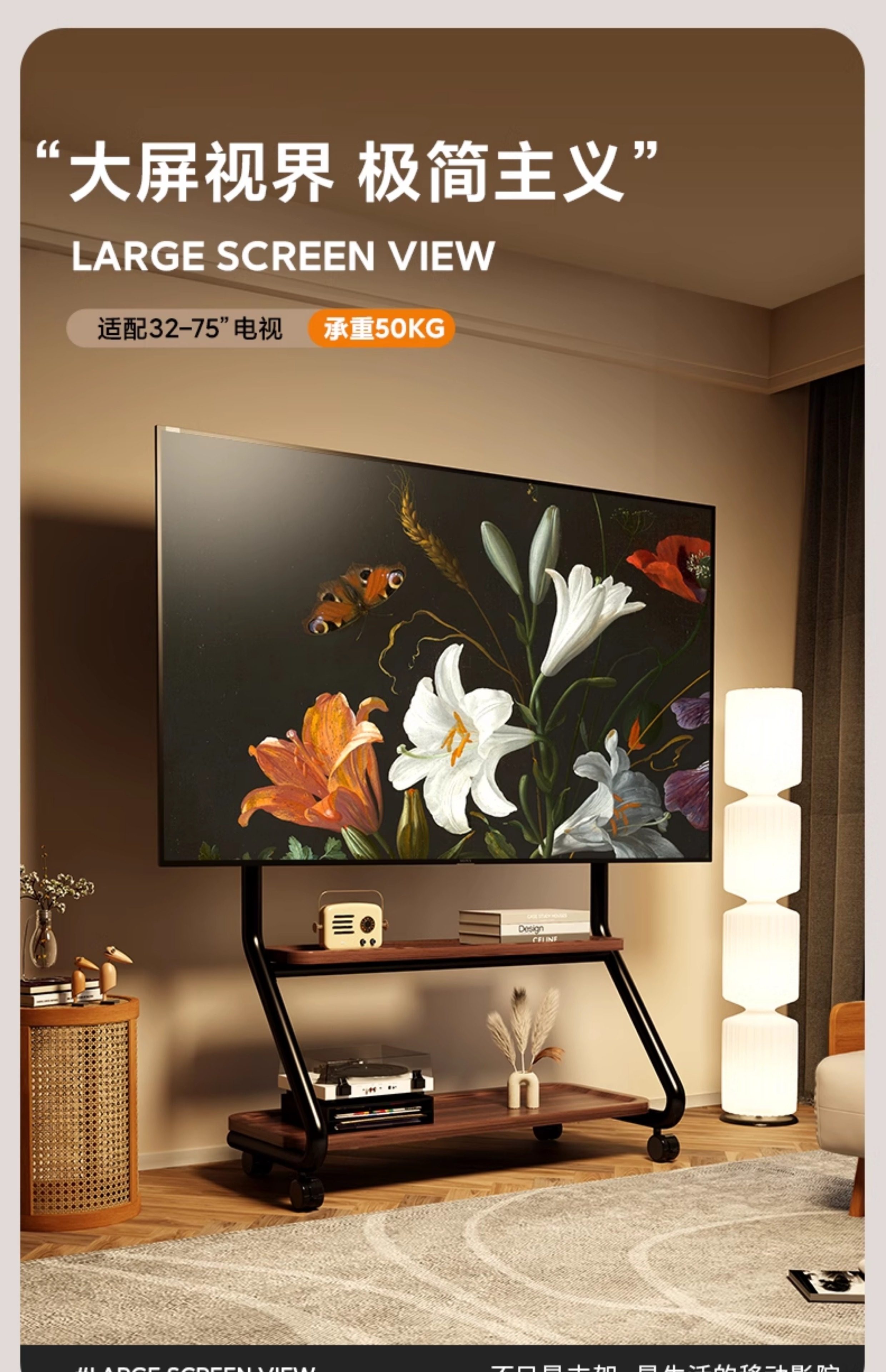 Beishi Movable Tv Stand Floor-Standing Wheeled Cart Twin Tower Nordic Art Stand Tv Cabinet