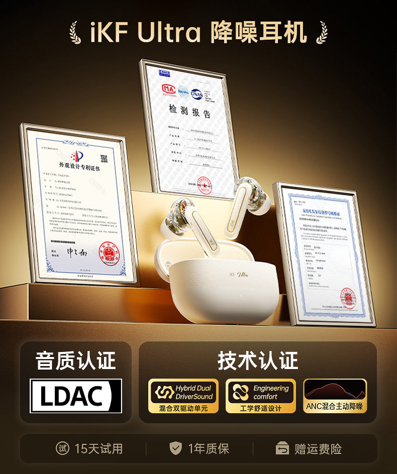Ikf Ultra Circumaural Hifi Active Noise-Cancelling Anc Bluetooth Earphones Wireless In-Ear 2026 New Model Long Standby