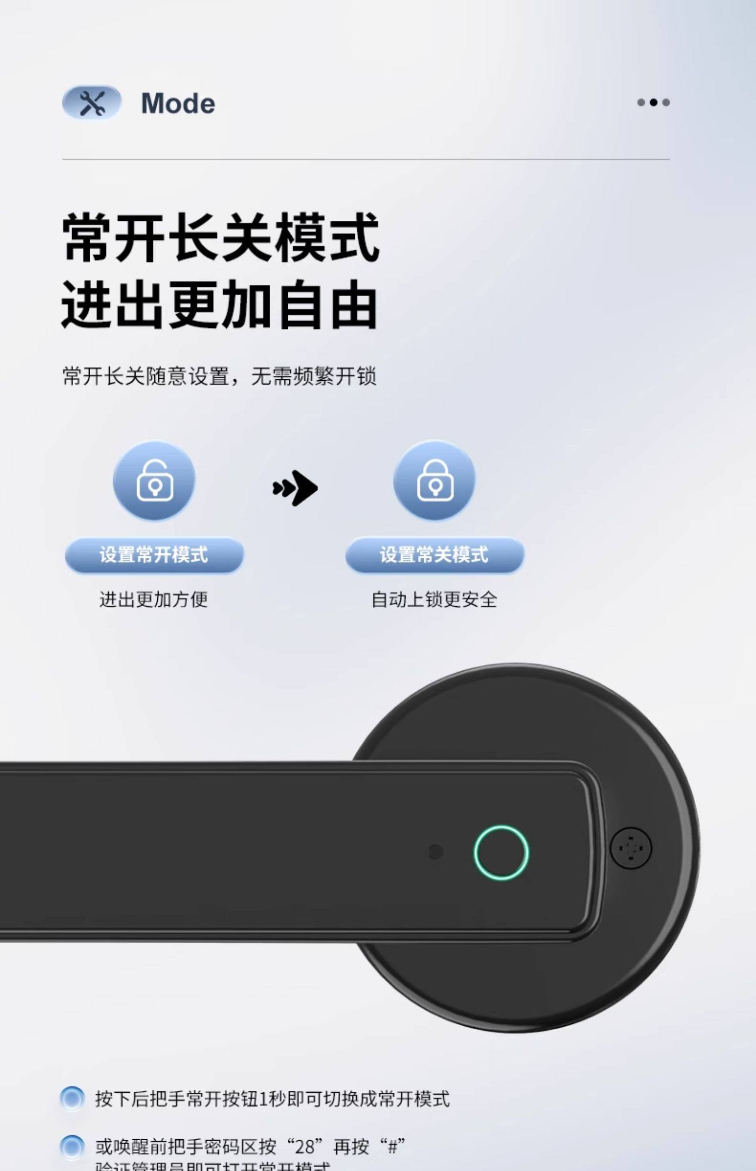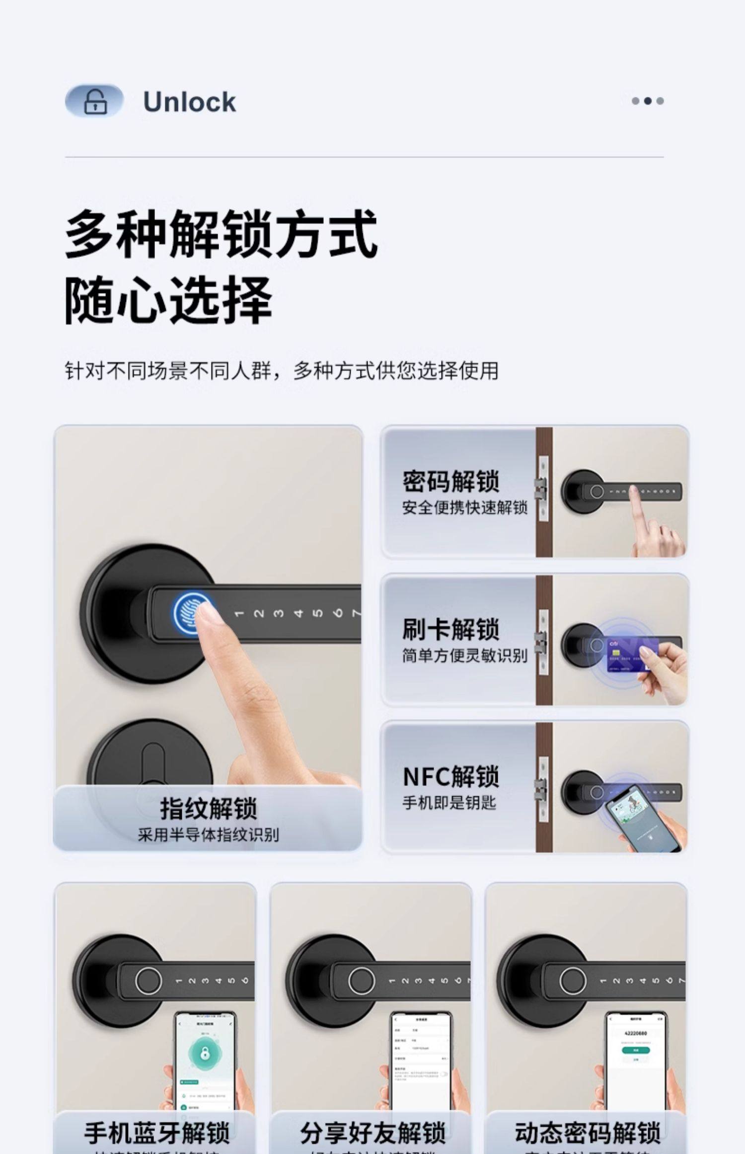| Finish Color | Silver Single-Tongue Lock - Standard Edition (Fingerprint + Key + Code + Card Swipe + Remote Code),Black Single-Tongue Lock - Standard Edition (Fingerprint + Key + Code + Card Swipe + Remote Code),Silver Single-Tongue Model - Bluetooth Card Swiping Version (App Management),Black Single-Tongue Model - Bluetooth Card Swiping Version (App Management),Silver Single-Tongue Model - Network Card Swipe Version (Remote Management),Black Single-Tongue Model - Network Card Swipe Version (Remote Management),Silver Split Model - Standard Edition (Fingerprint + Key + Code + Card Swipe + Remote Code),Black Split Design - Standard Edition (Fingerprint + Key + Code + Card Swipe + Remote Code),Silver Split Design - Bluetooth Card Reader Version (App Management),Black Split-Type - Bluetooth Card Reader Version (App Management),Silver Split-Type - Network Card Swipe Version (Remote Management),Black Split-Type - Network Card Swipe Version (Remote Management),Black All-In-One Model - Upgraded Standard Edition (Fingerprint + Password + Card Swipe + Key + Remote Password),Black Integrated Model-Smart Bluetooth Version (App Management),Black Integrated Model-Wi-Fi Network Version (Remote Management) |