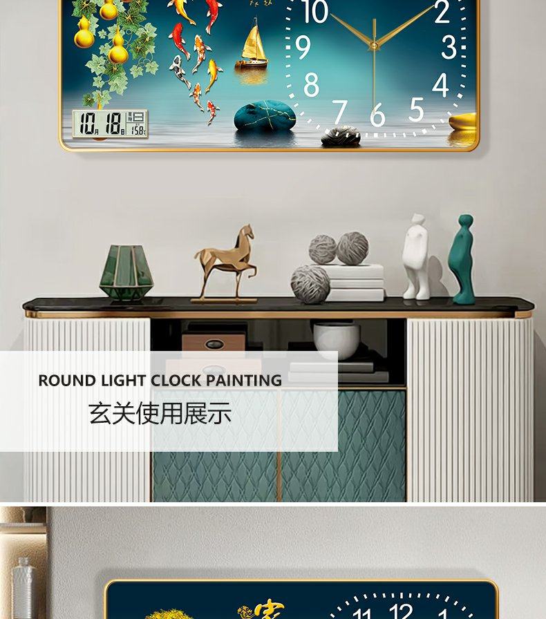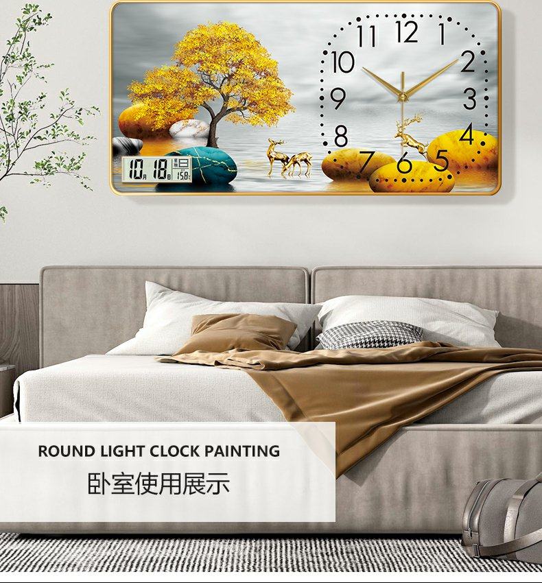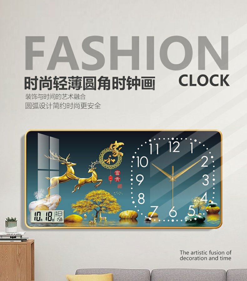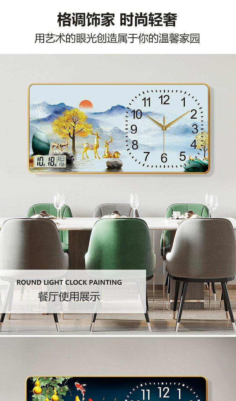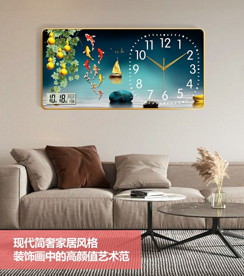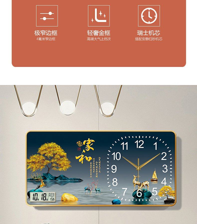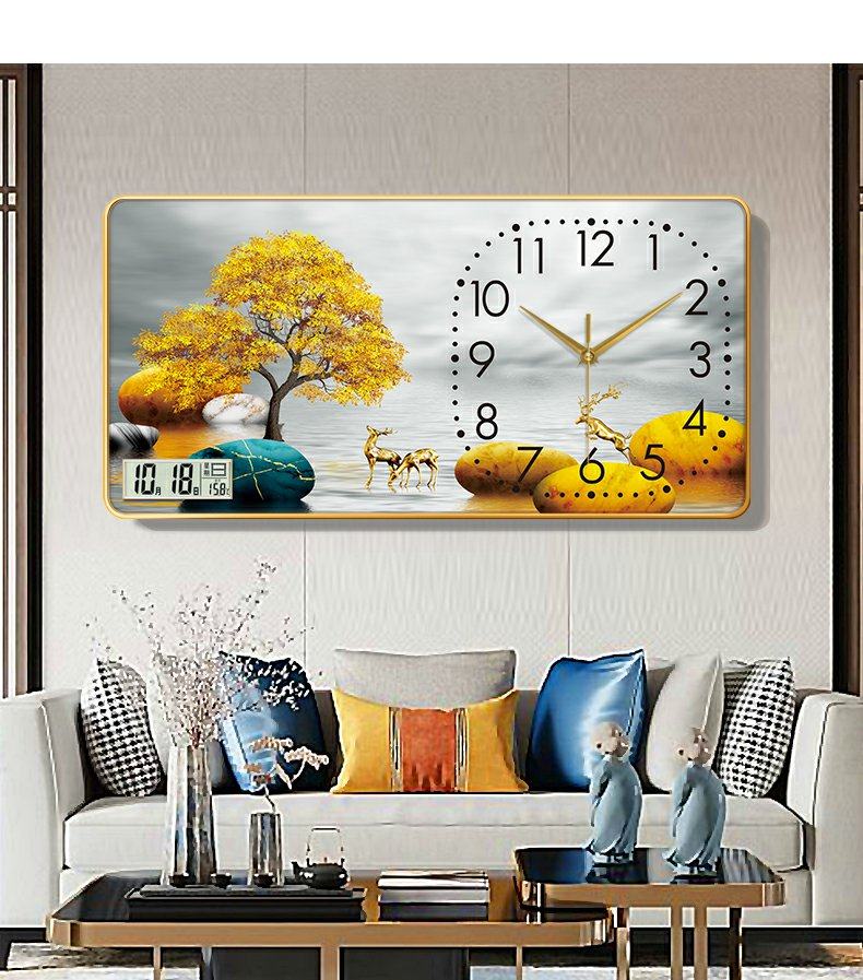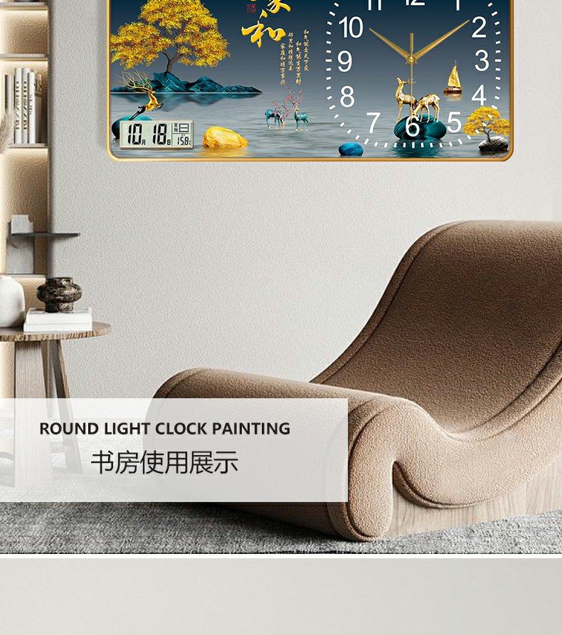 New Chinese-Style Decorative Painting Living Room Wall Clock, Fashionable and Simple Landscape Painting Clock, Simple Silent Wall Clock