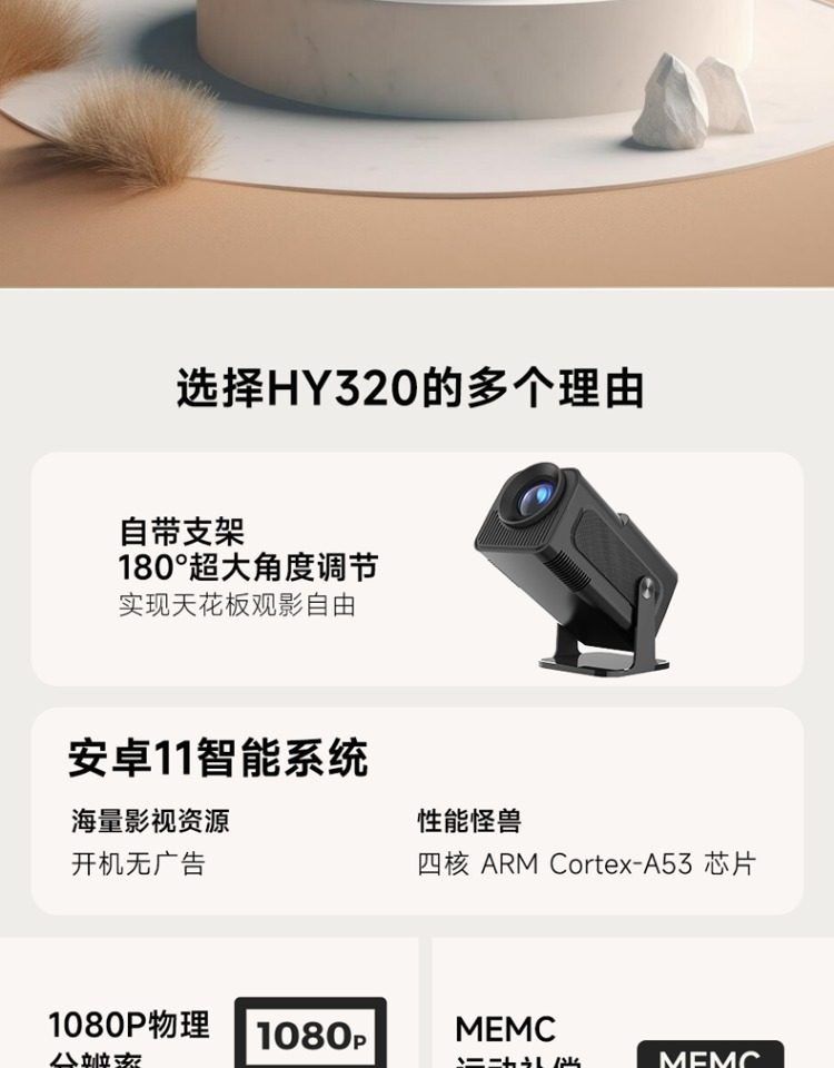 [Flagship New Product] Magcubic Gimbal Projector Hy320 Home Ultra-High-Definition Projector for Bedroom and Living Room White Wall Projector 2024 New Model Student Dormitory Integrated Screen Commercial Mobile Screen Projection