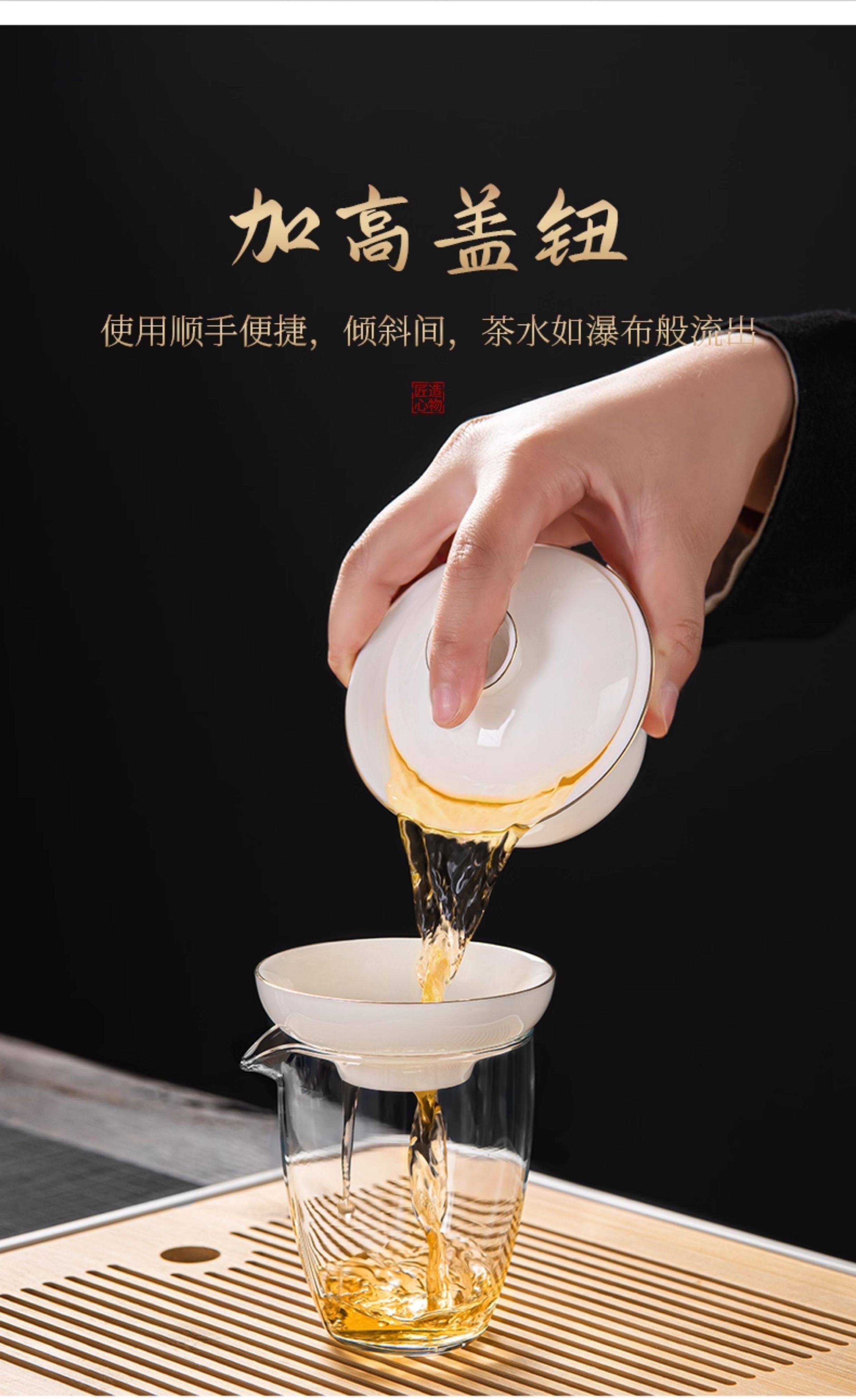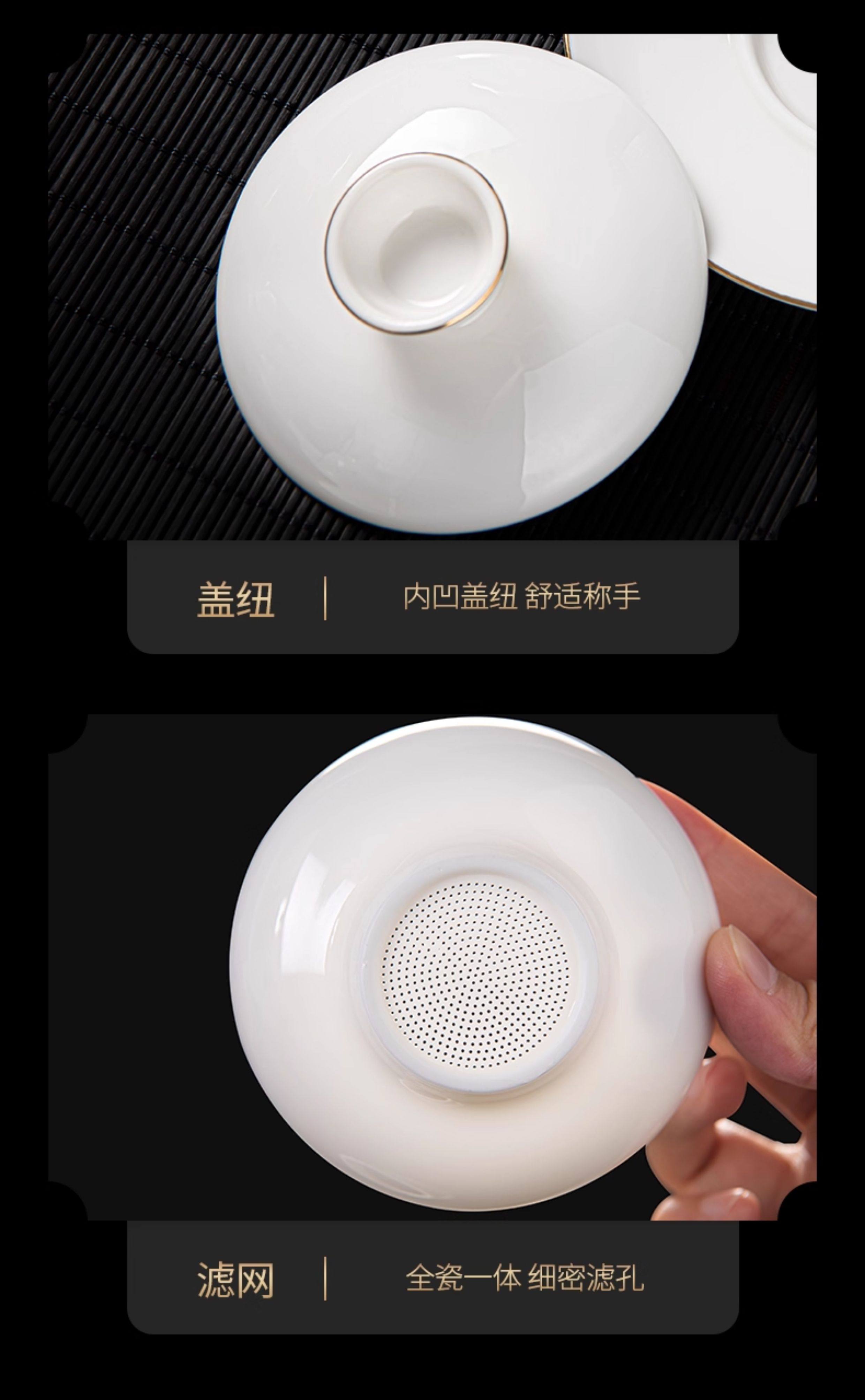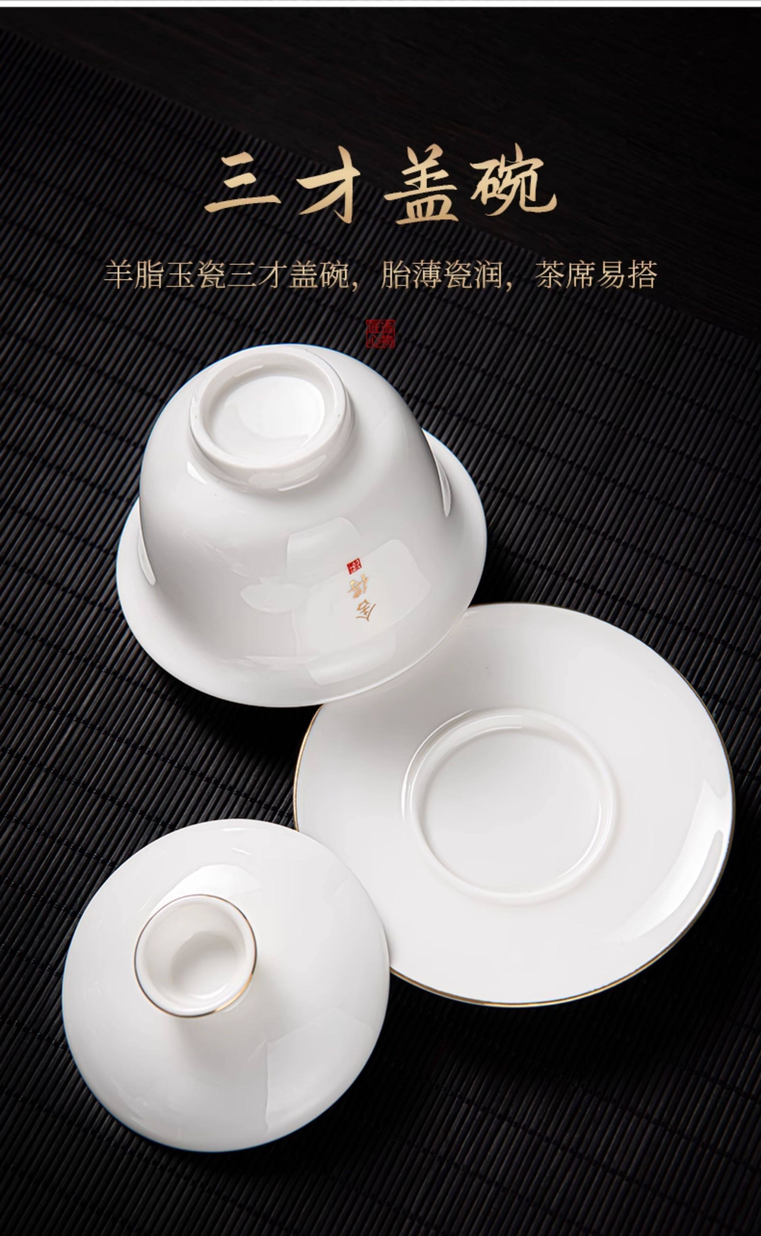 Jade Porcelain Gaiwan Tea Set for Home Use in the Living Room, High-End Ceramic Tea Cups and Tea Tray, 2026 New Model