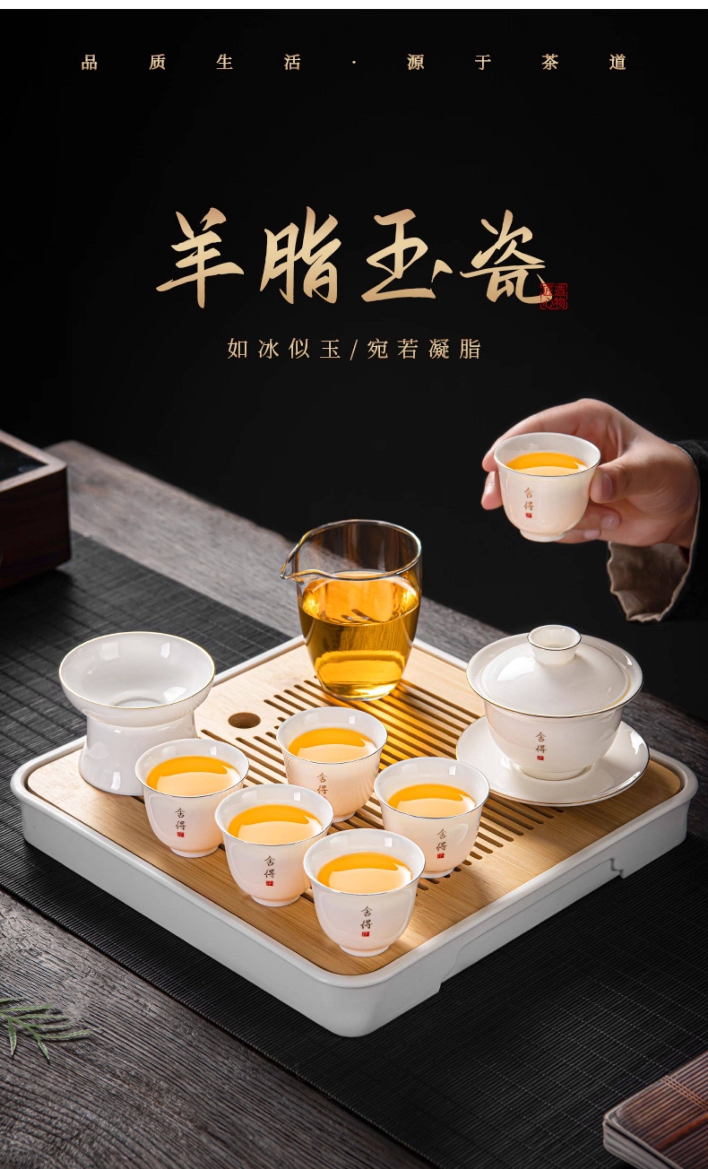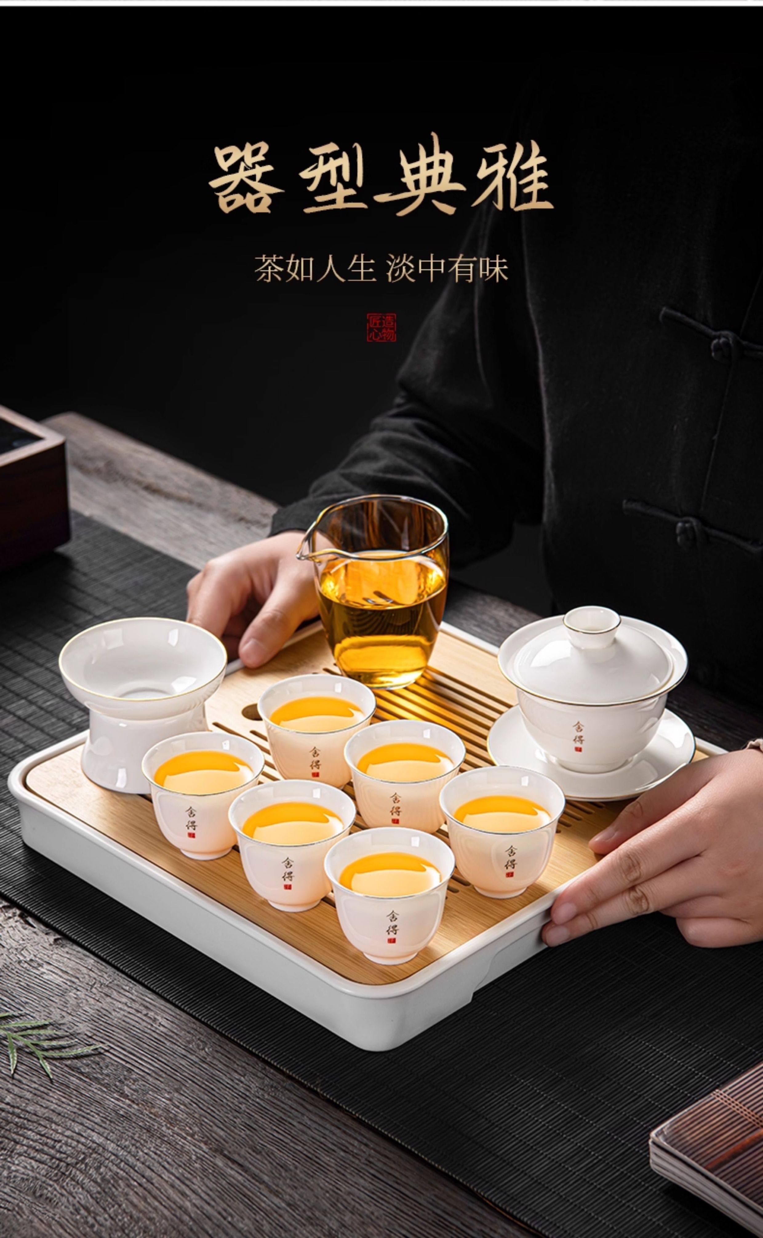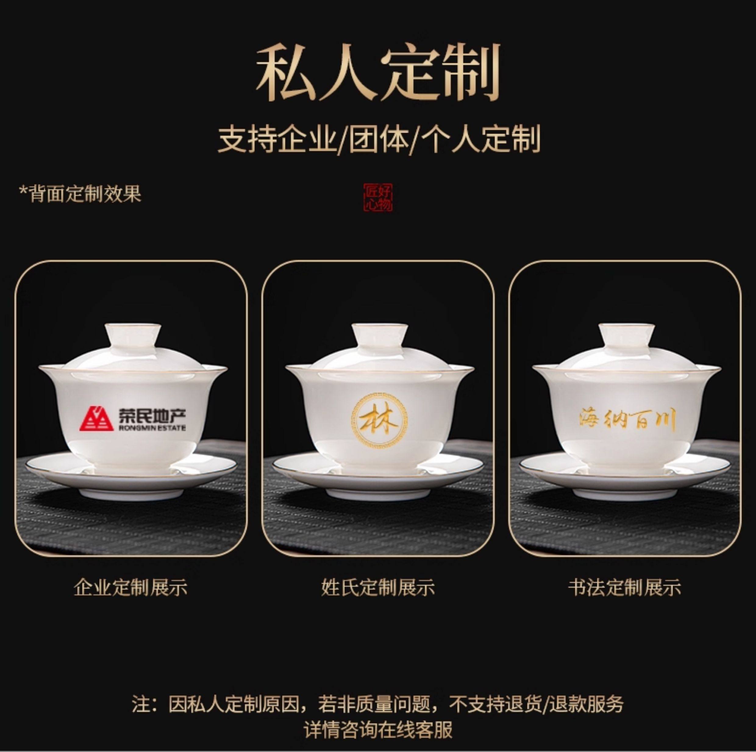 Jade Porcelain Gaiwan Tea Set for Home Use in the Living Room, High-End Ceramic Tea Cups and Tea Tray, 2026 New Model