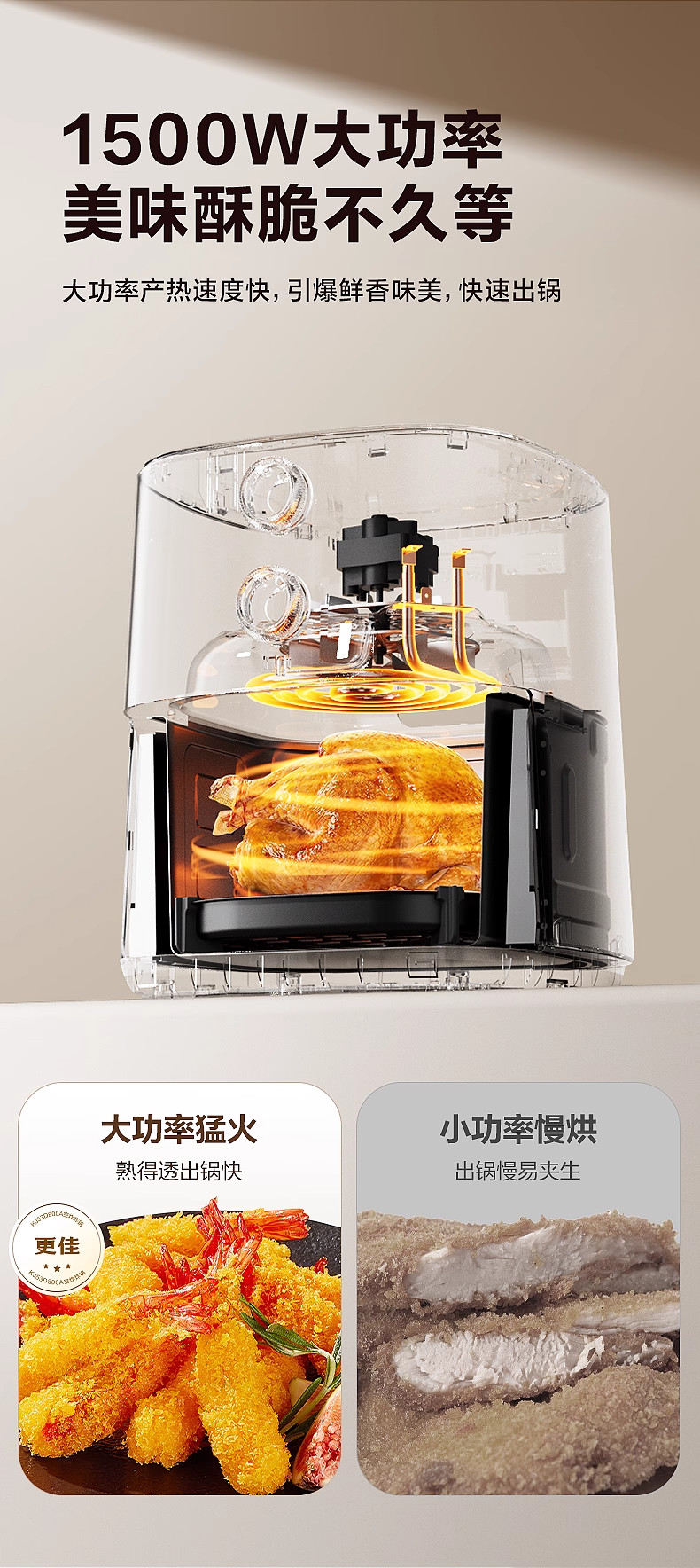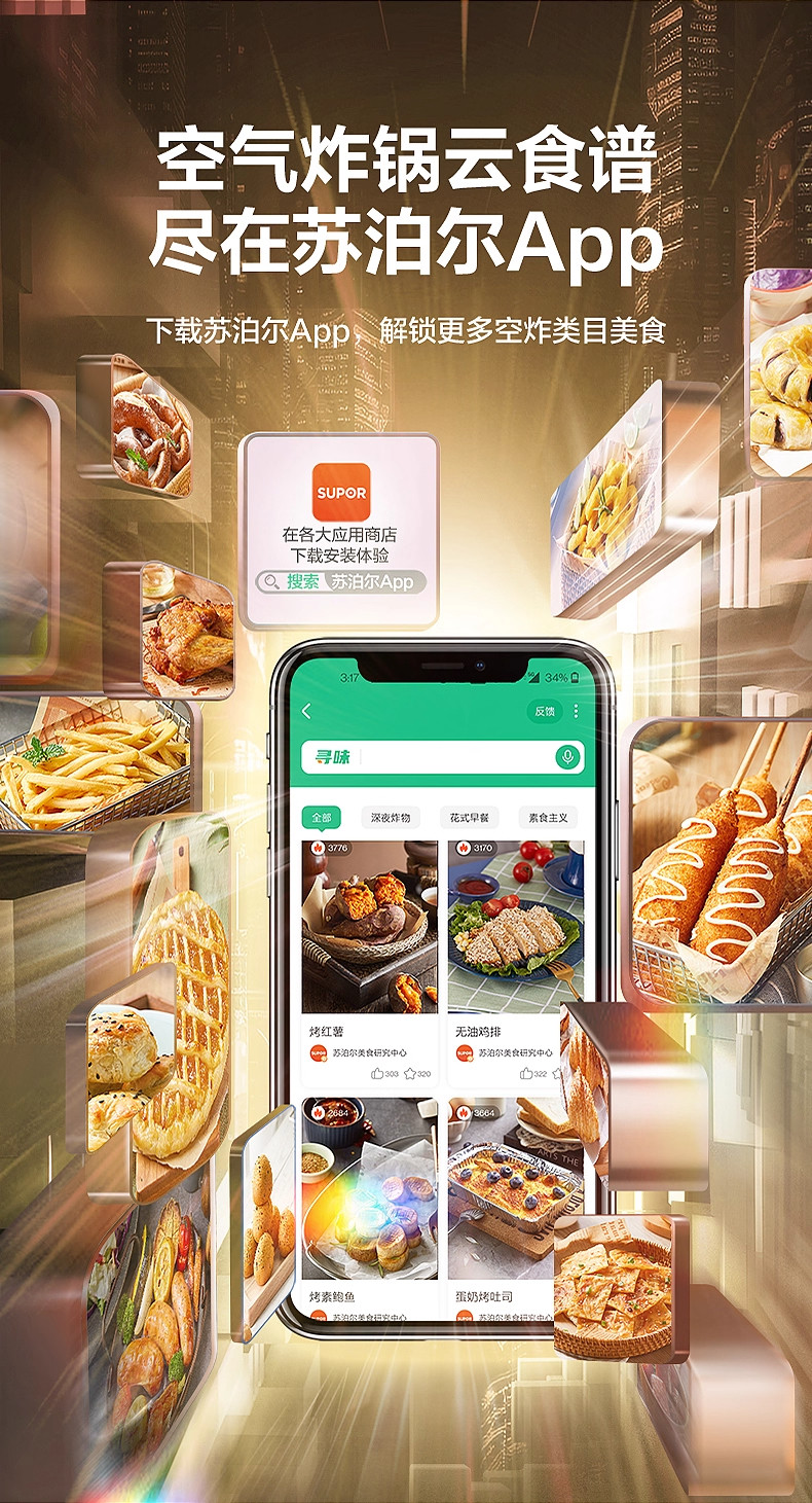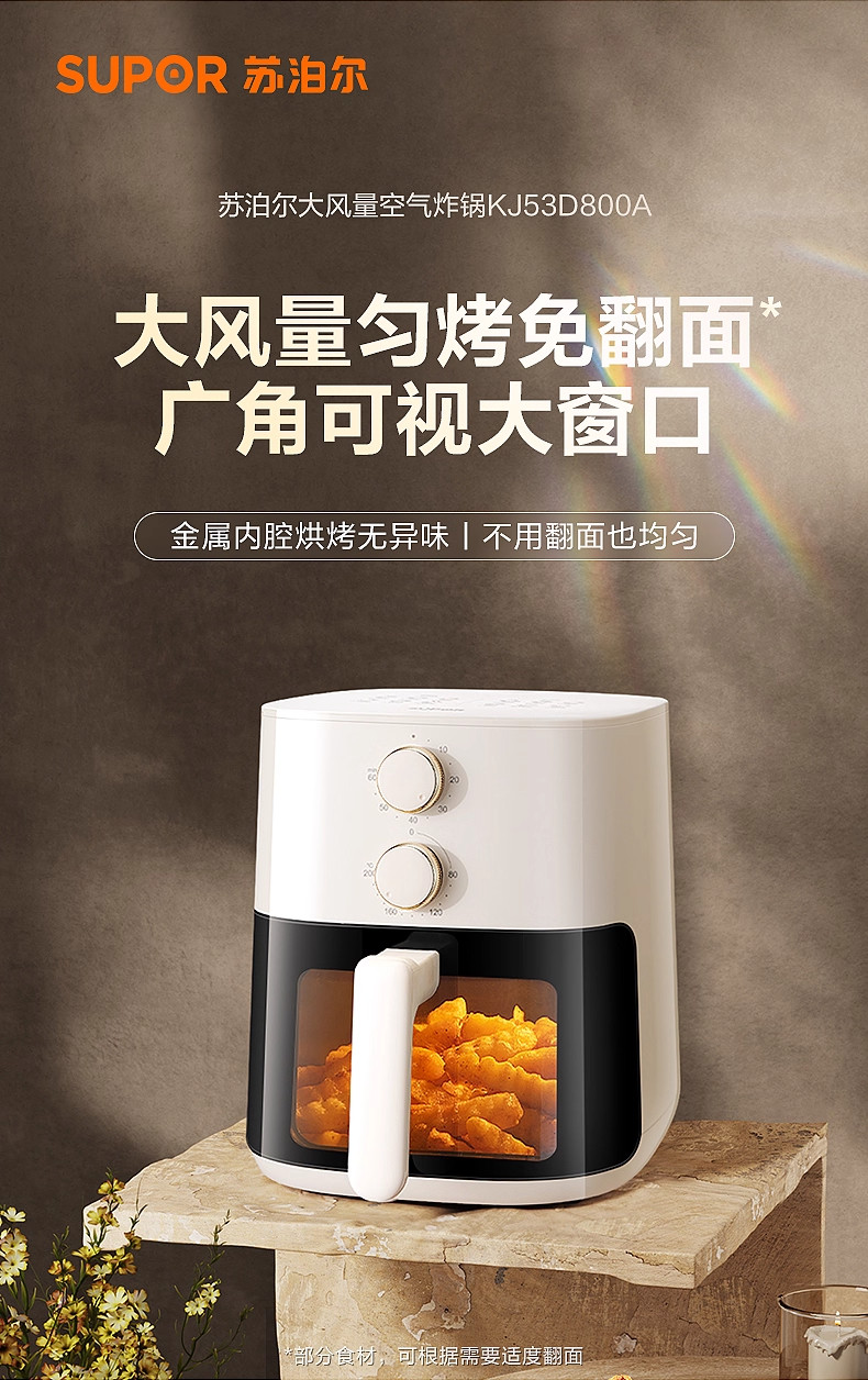 Supor Air Fryer for Home Use, New Model with Visual Display, Multifunctional Electric Fryer and Oven Combo, Large Capacity, Official Genuine Product