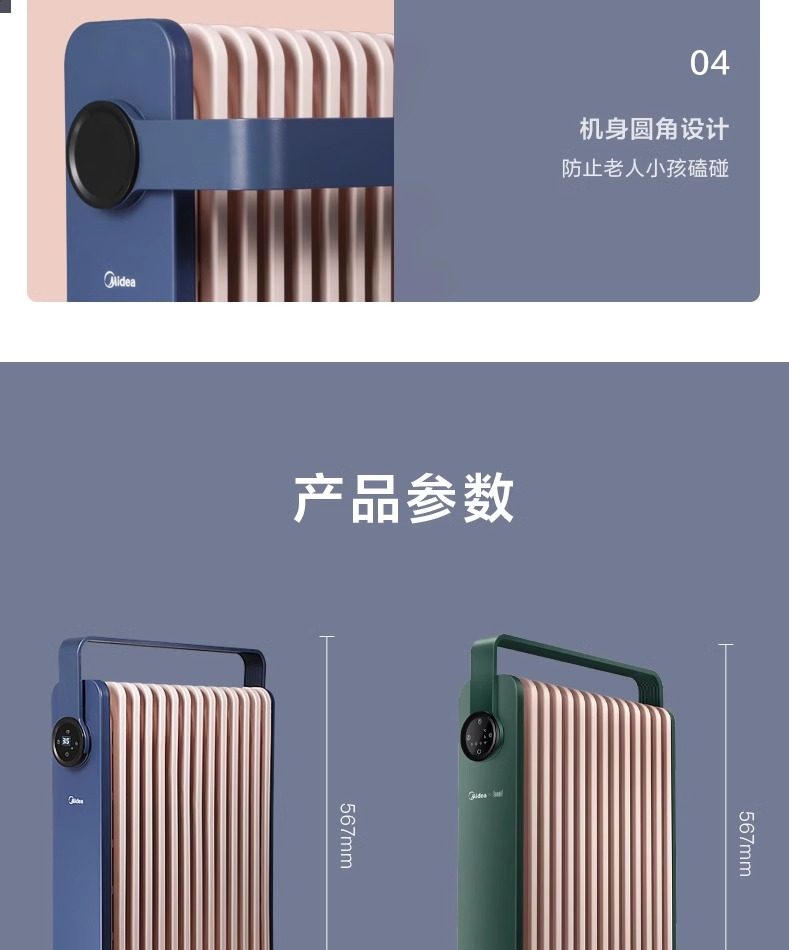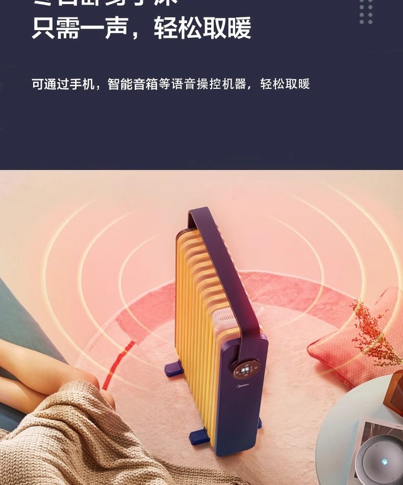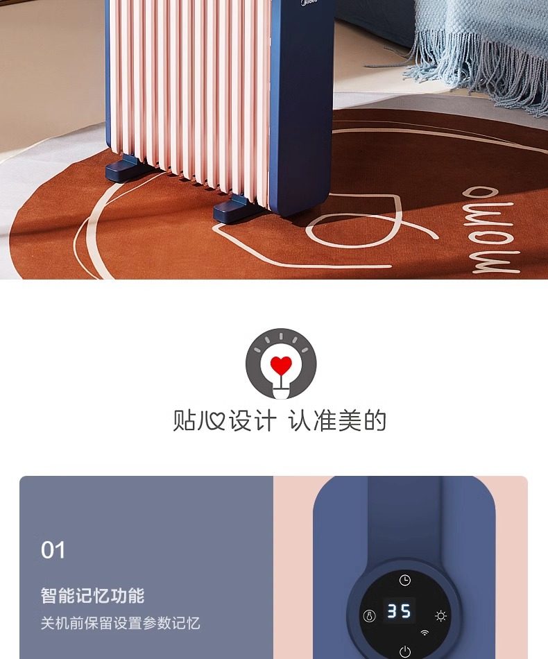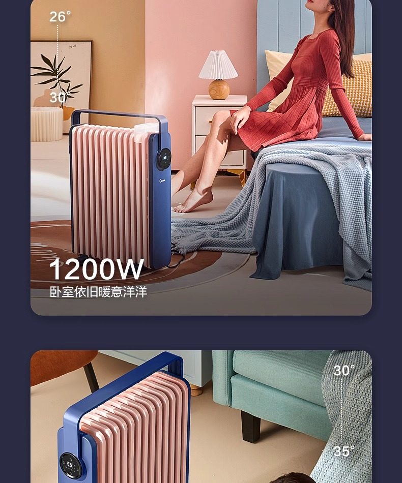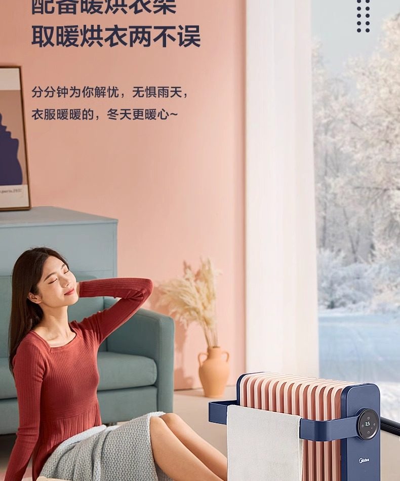 Midea Heater for Home Use, Oil-Filled, Energy-Saving, Electric Radiator, Electric Heater, Oil Heater, Oil-Filled Heater, Fast Heating