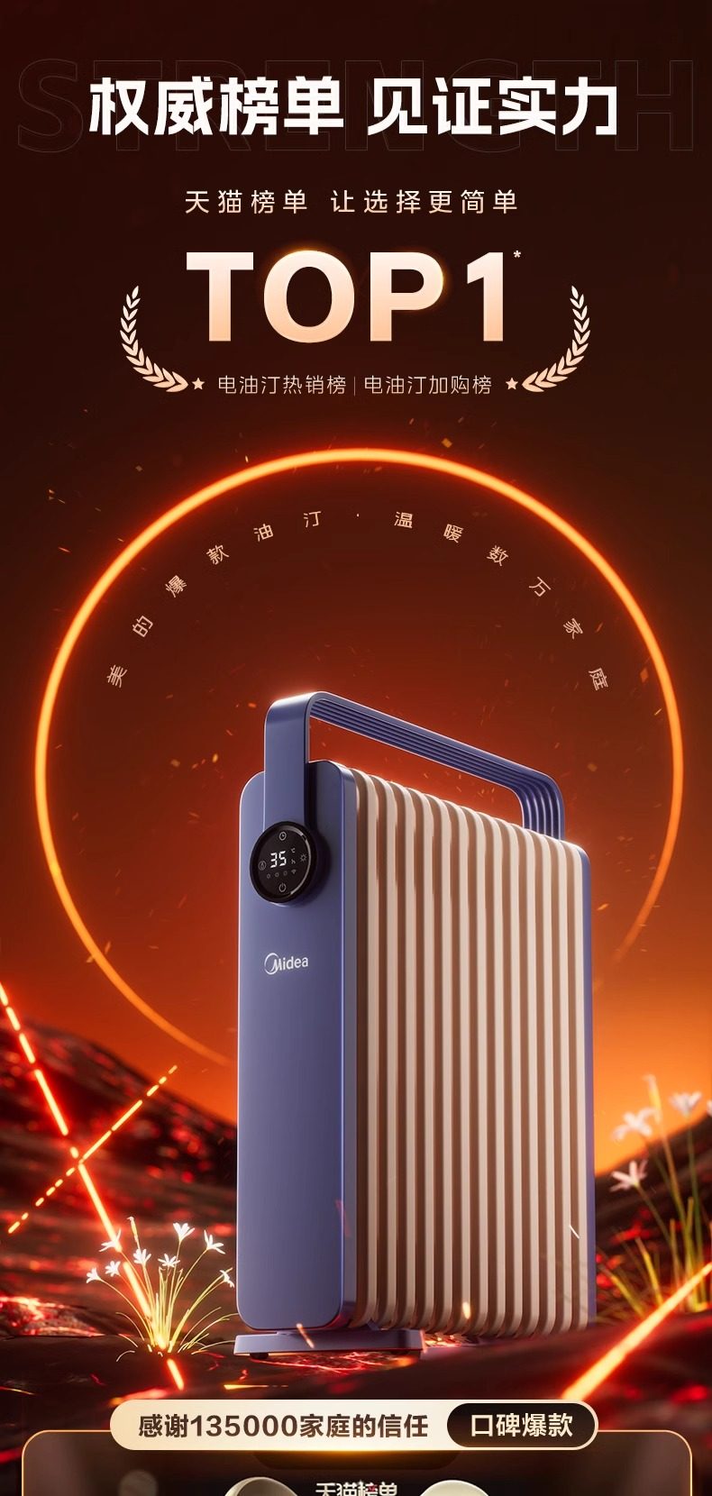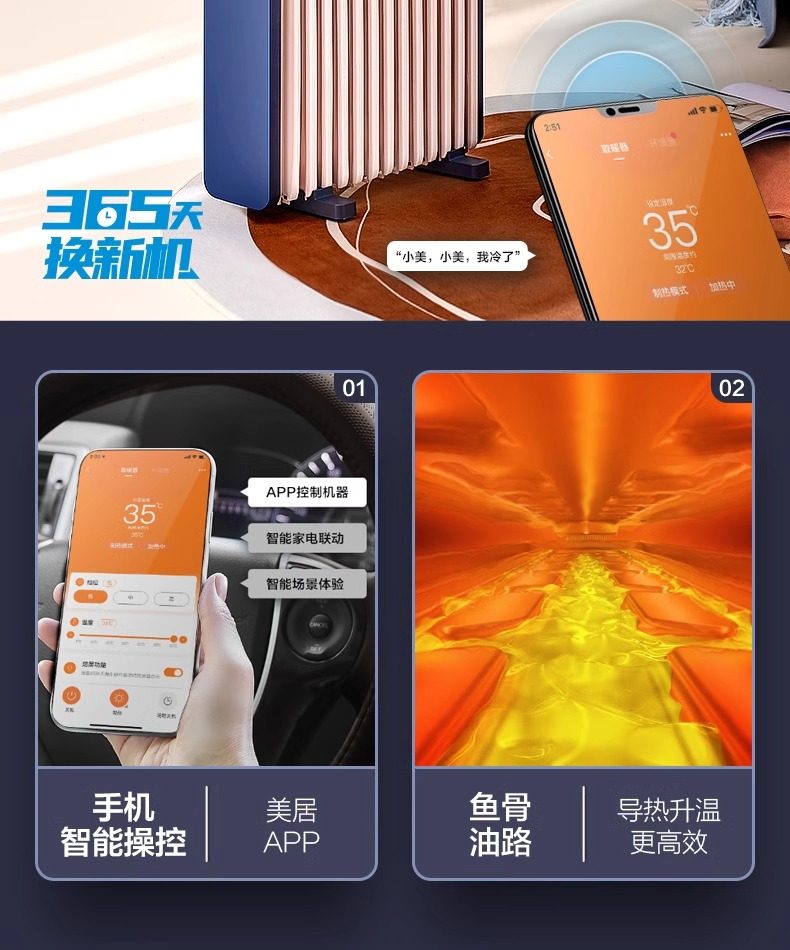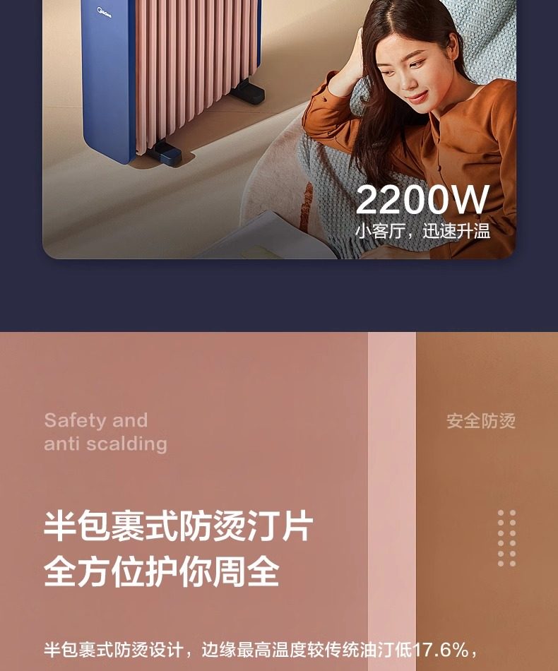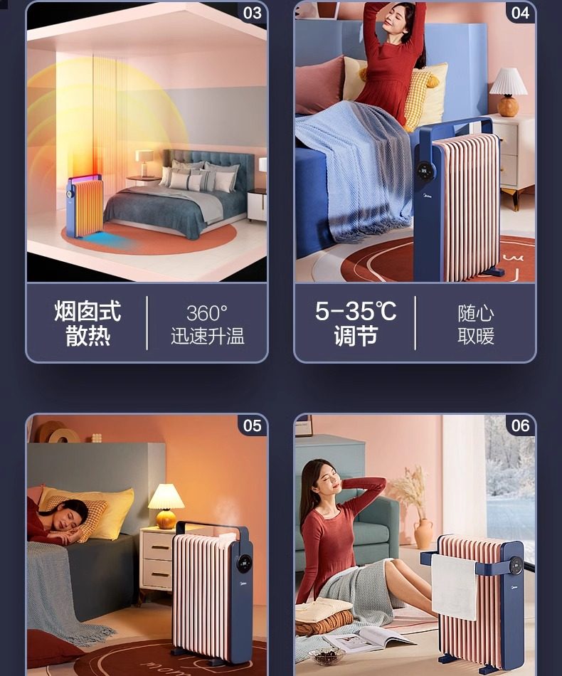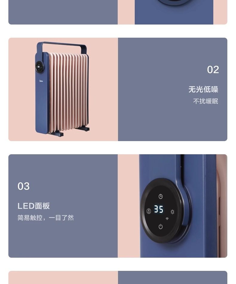 Midea Heater for Home Use, Oil-Filled, Energy-Saving, Electric Radiator, Electric Heater, Oil Heater, Oil-Filled Heater, Fast Heating