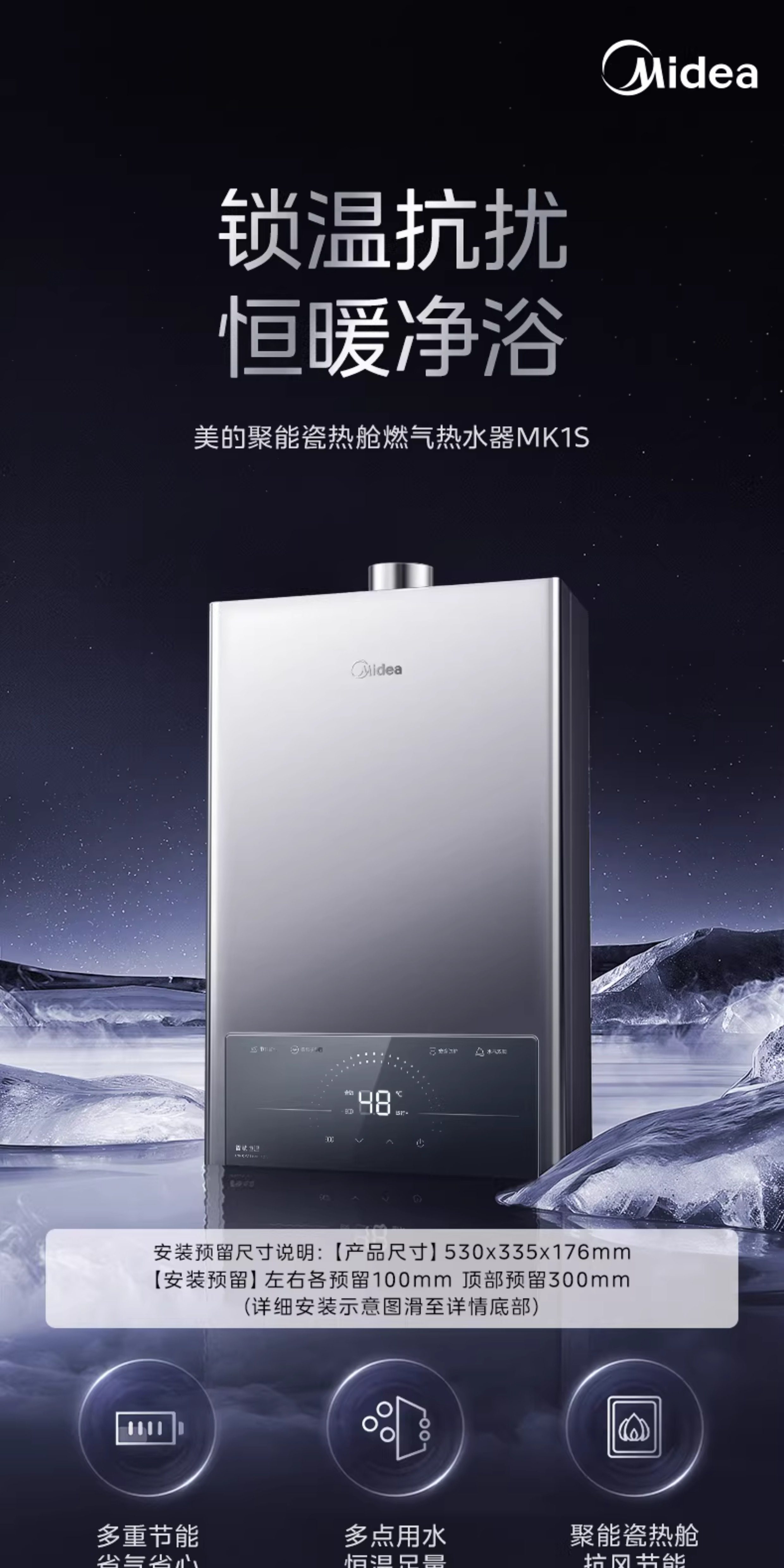 Midea Constant Temperature Gas Water Heater for Home Use 14L16L Natural Gas Variable Frequency Mk1S