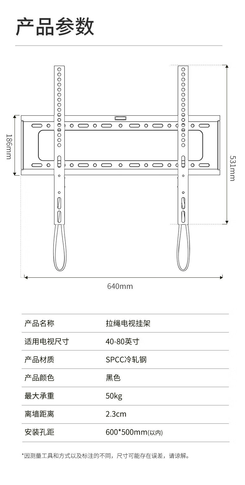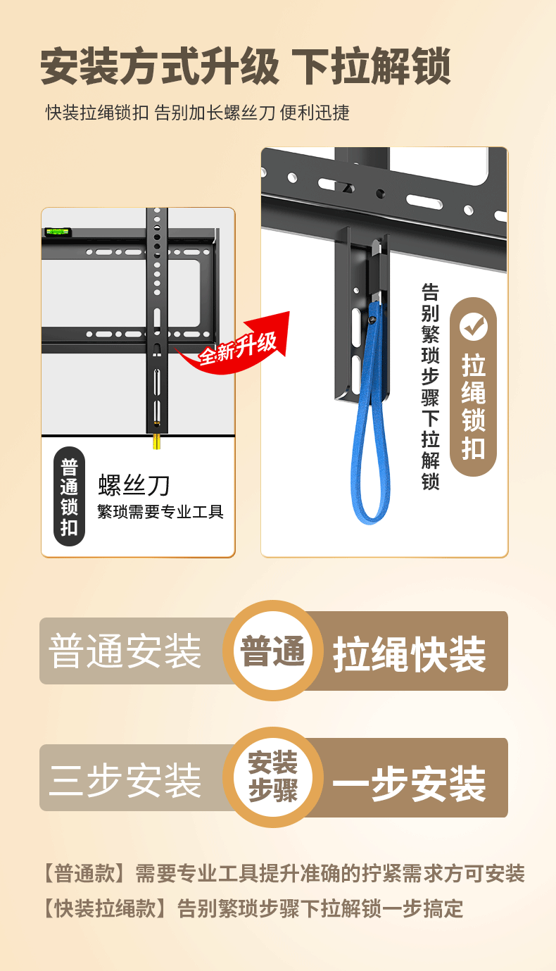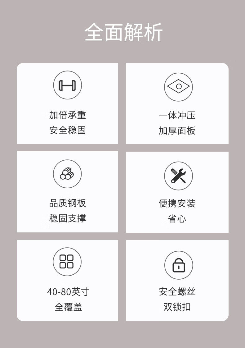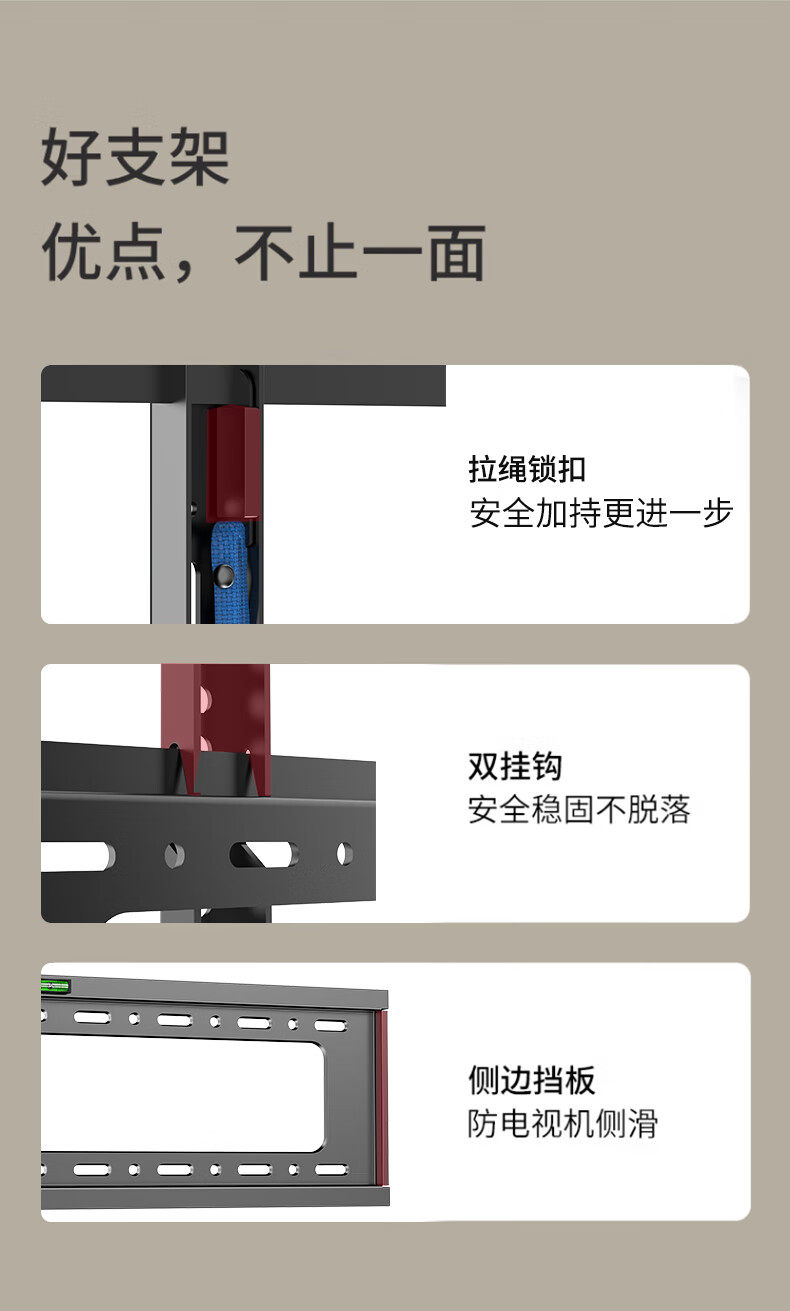 | Color Classification | [Practical Model] 26-65inch / Enhanced Load-Bearing, Ultra-Thin Wall-Mounted,[Super Strong Model] 26-65inch /Bold and Thickened, Load-Bearing Upgrade,[Practical Model] 32-75inch / Enhanced Load-Bearing, Ultra-Thin Wall-Mounted,[Super Strong Model] 40-90inch /Thickened and Enlarged, Load-Bearing Upgrade,[Special for Large Screens] 55-120inch /Extra Large Panel with Double Load-Bearing Capacity,[Upgraded Model] 26-65inch / Drawstring Lock, Stable Upgrade,[Upgraded Model] 40-80inch / Drawstring Lock, Stable Upgrade,ãGet Rich Quickã 26-65inch / Medium / Drawstring Lock - Good Fortune Abounds,ãGet Rich Quickã 40-80inch / Large Size / Drawstring Lock - Good Fortune Abounds,ãSolid Core, Extra Thickã 22-65inch /Adjustable Tilt & Rock Function/ 30kg Load Capacity,ãSolid Core Upgradeã 22-65inch / Adjustable Up/Down Tilt & Swivel / 50kg Load Capacity,ãSolid Core Upgraded & Reinforcedã 22-65inch / Adjustable Up/Down Tilt & Rocking Function / 65kg Load Capacity,[Upgraded and Thickened] 32-70inch /Upper Adjustment Type/Load Bearing 50kg,[Upgraded and Thickened] 32-70inch /Up and down Adjustable Pitch Model/Load Bearing 70kg |