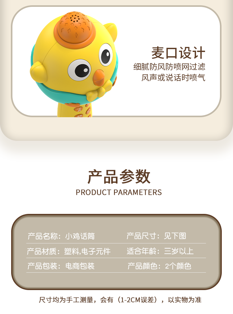 | Color Classification | Pink Chick Microphone[Basic Model],Yellow Chick Microphone[Basic Model],Pink Chick Microphone[Upgraded High-Quality Karaoke Model],Yellow Chick Microphone[Upgraded High-Quality Karaoke Model] |