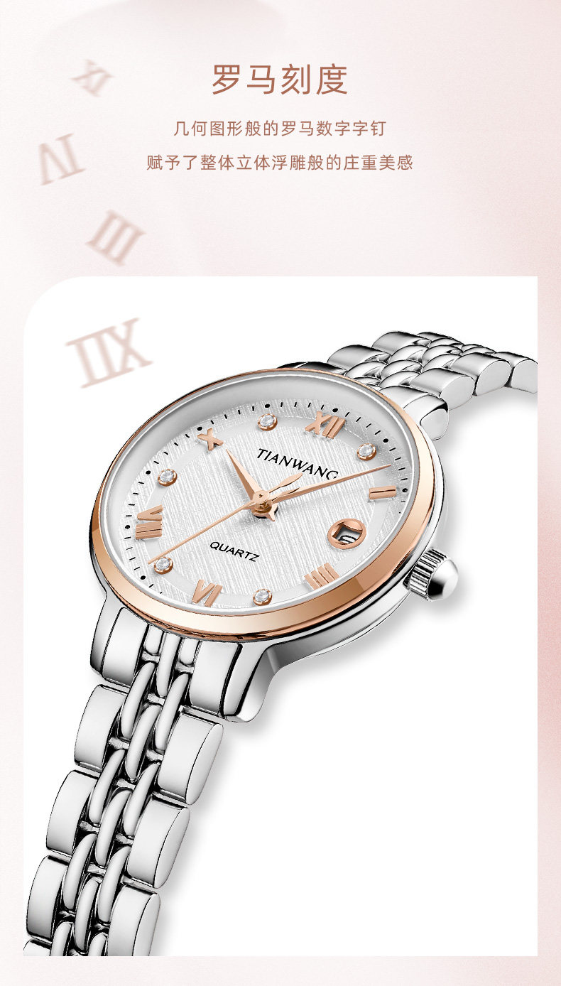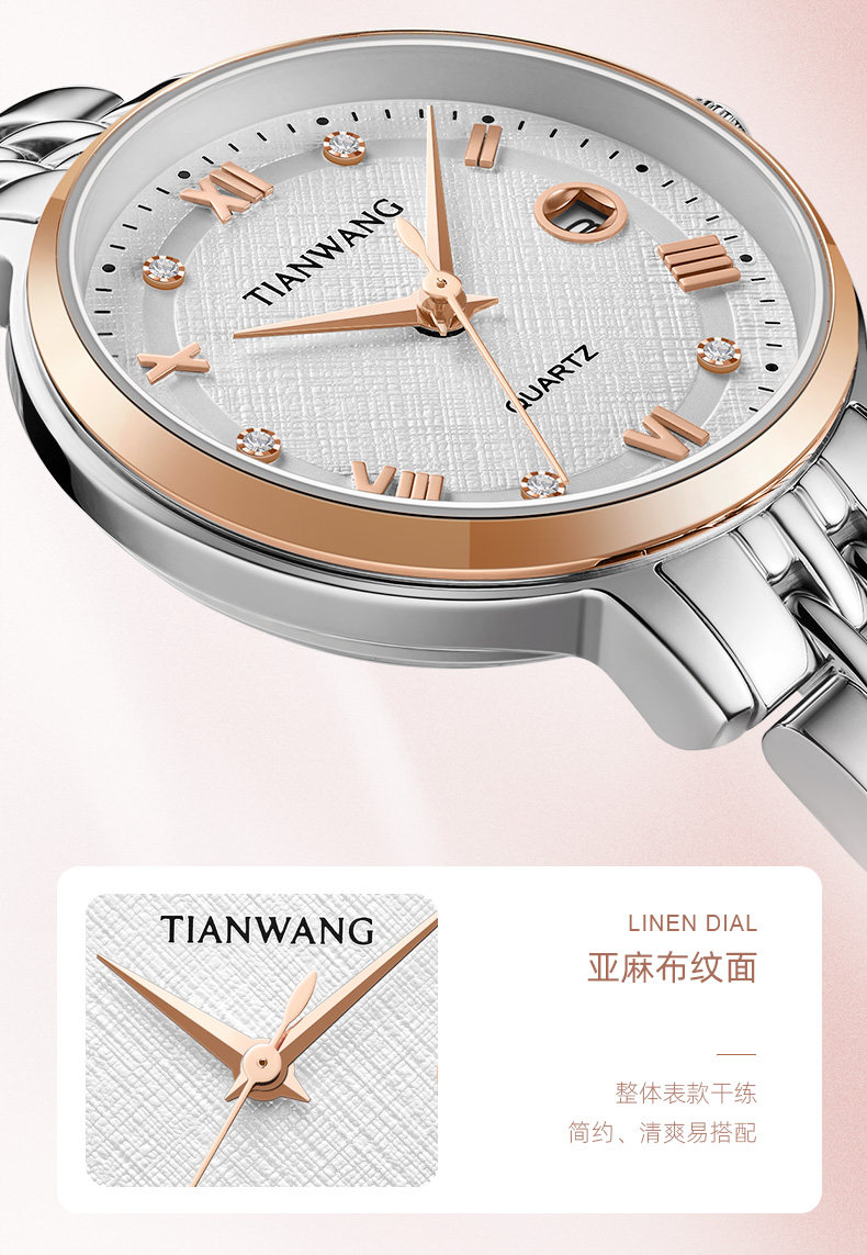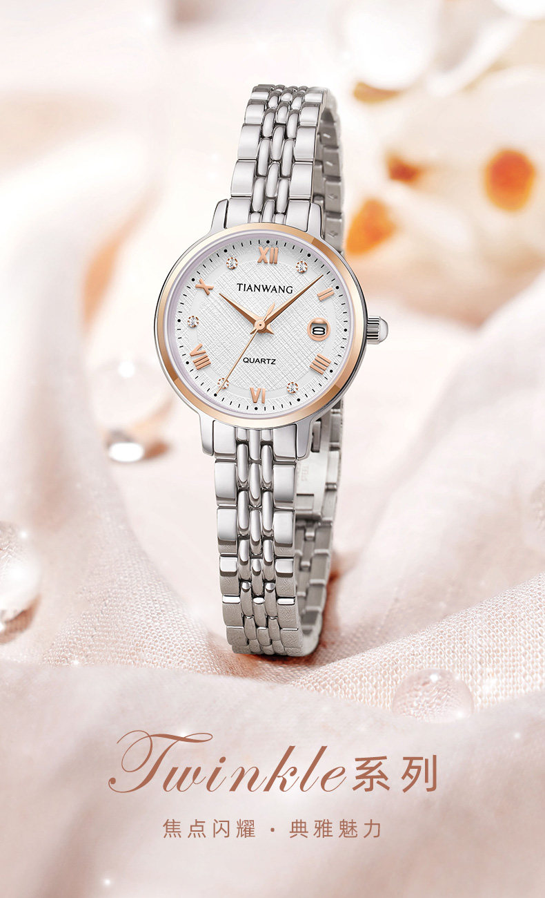 Tianwang Watch with Quartz Movement, Small Dial, Simple and Stylish, Steel Band, Women's Watch 31374, Birthday Gift for Girls, Gift for Best Friend