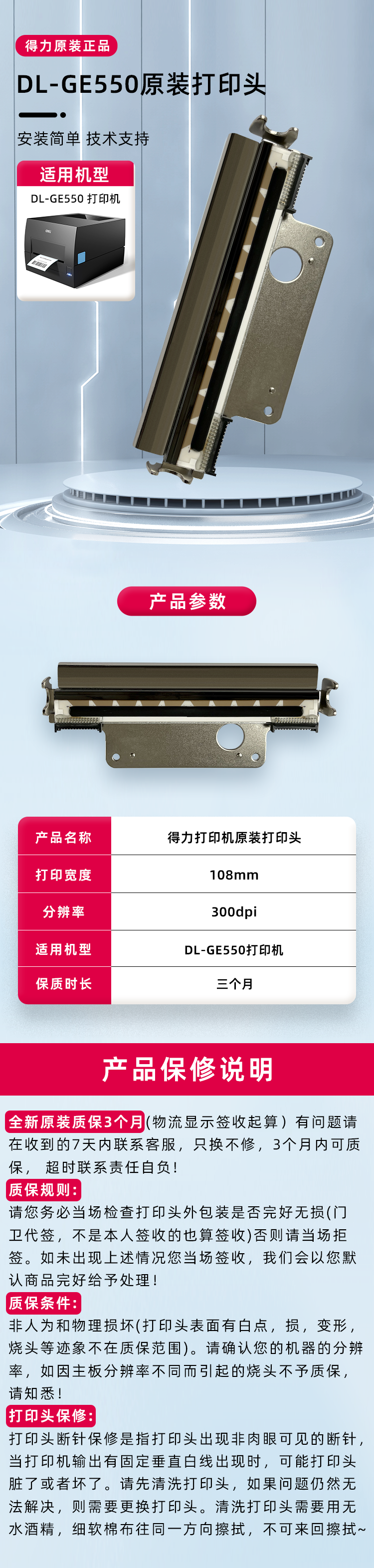 Deli Accessories Brand New Original Ge550 Print Head 300Dpi High-Definition Label Printer Print Head Thermal Head