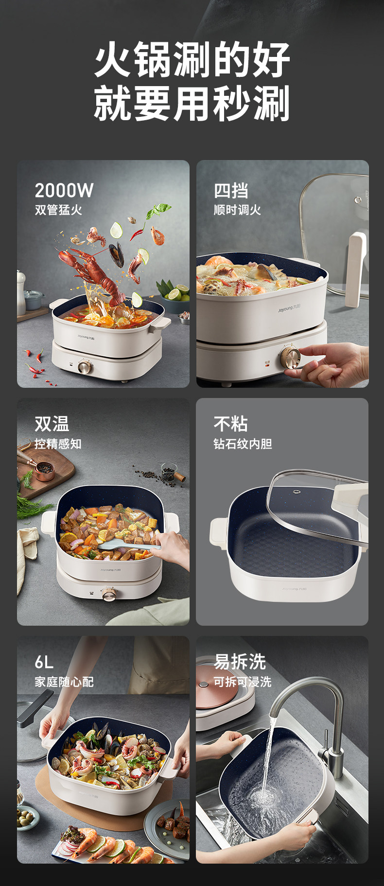 Joyoung Electric Hot Pot for Home Use, Multi-Functional, Large Capacity, Dual-Compartment, Electric Cooking, Frying, and Stir-Frying All-In-One Electric Hot Pot