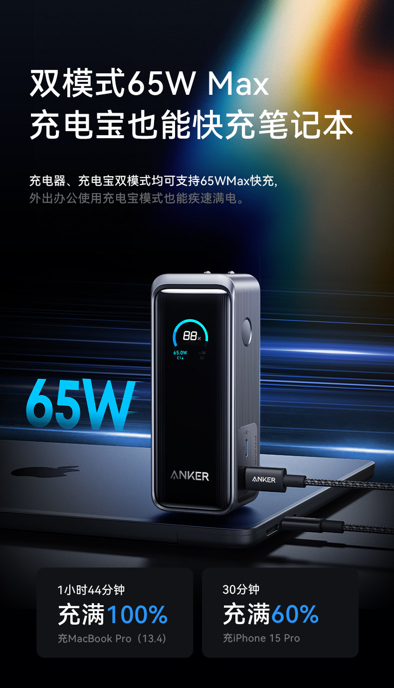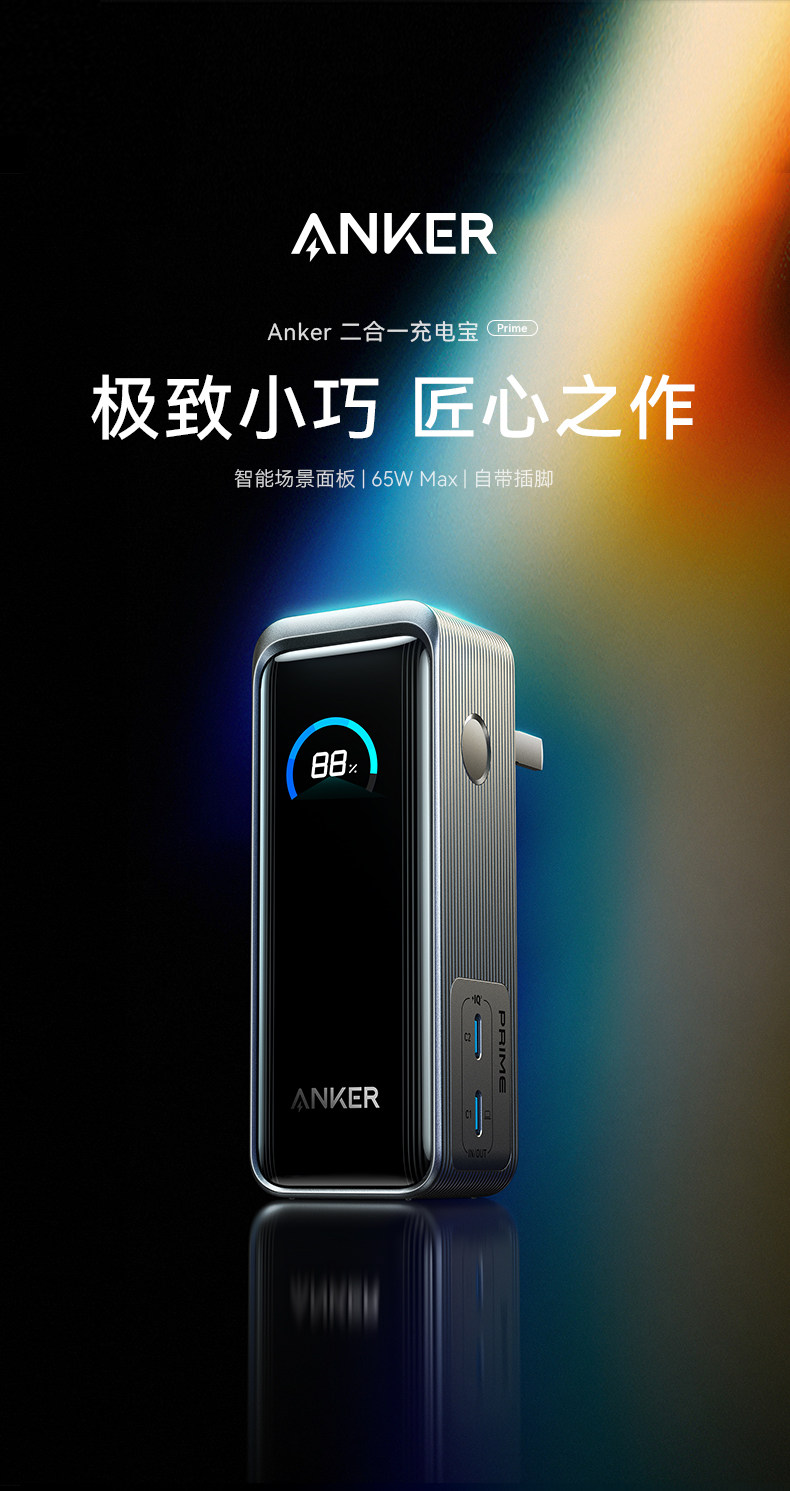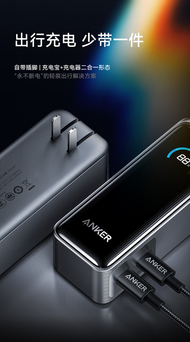 [3C Certified, Suitable for Use on Airplanes] Ankerprime Anker 2-in-1 Power Bank 65W with Plug, Compact and Portable, Compatible with Iphone, Apple 17, Laptop, Tablet