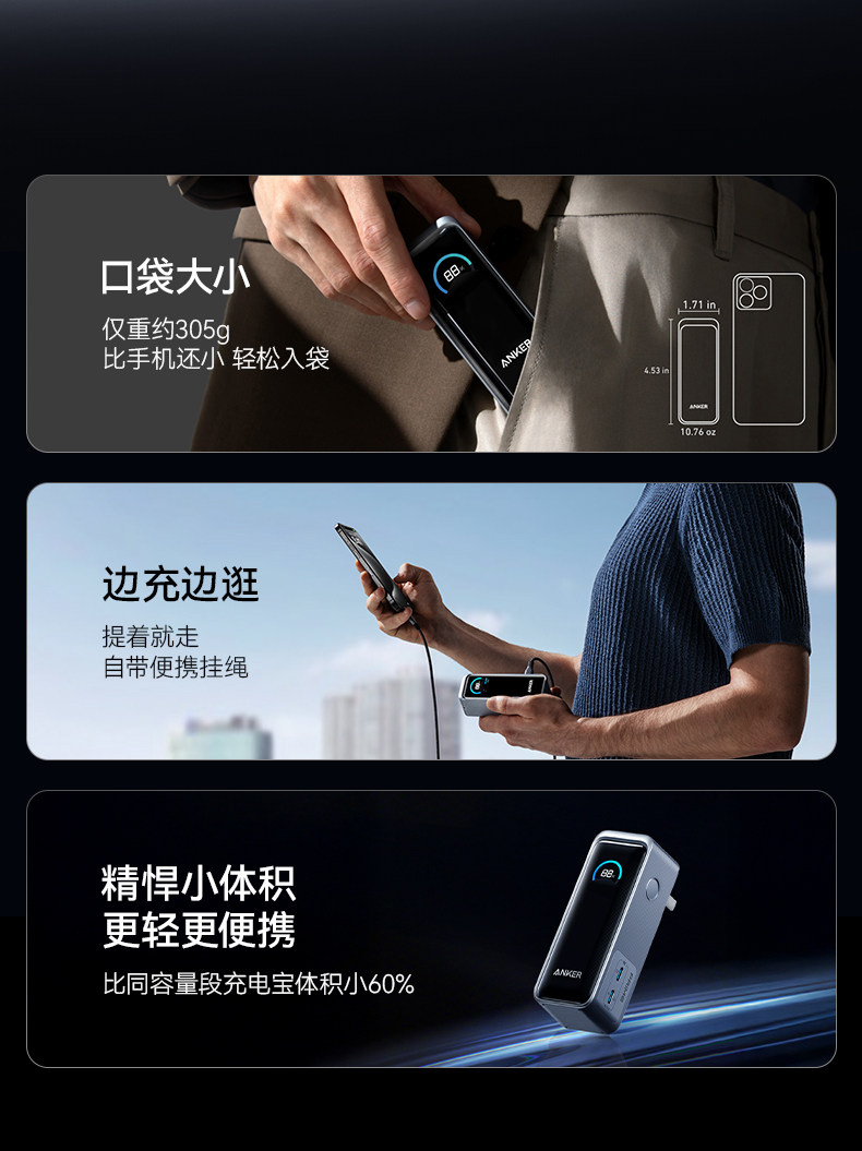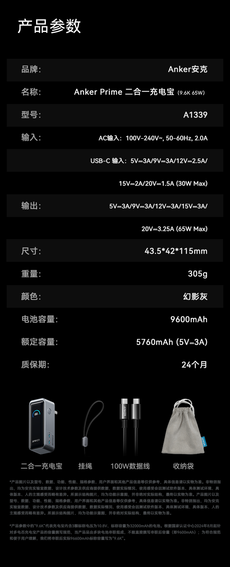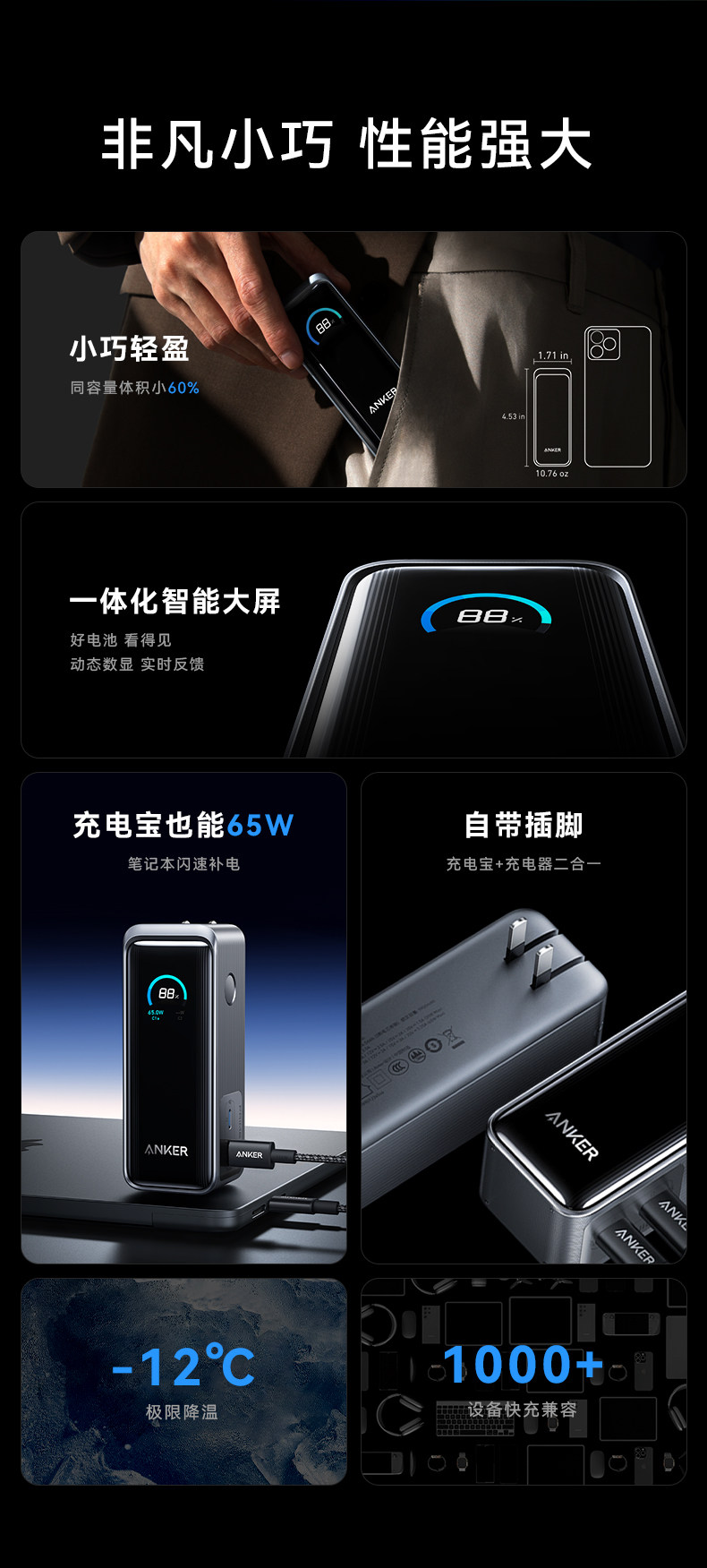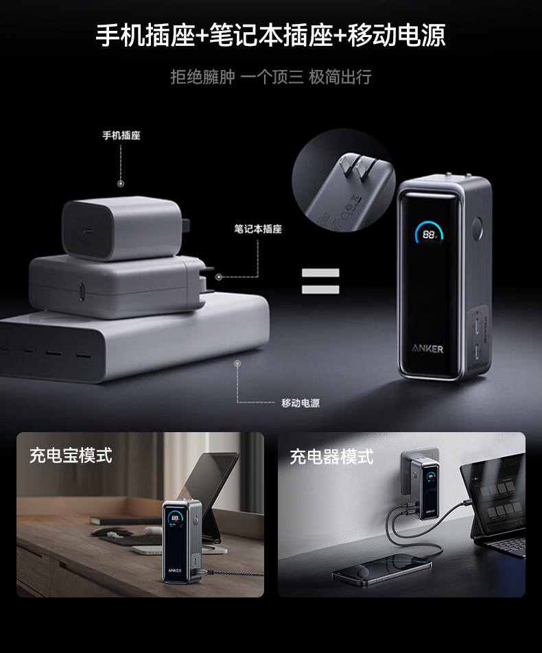 [3C Certified, Suitable for Use on Airplanes] Ankerprime Anker 2-in-1 Power Bank 65W with Plug, Compact and Portable, Compatible with Iphone, Apple 17, Laptop, Tablet