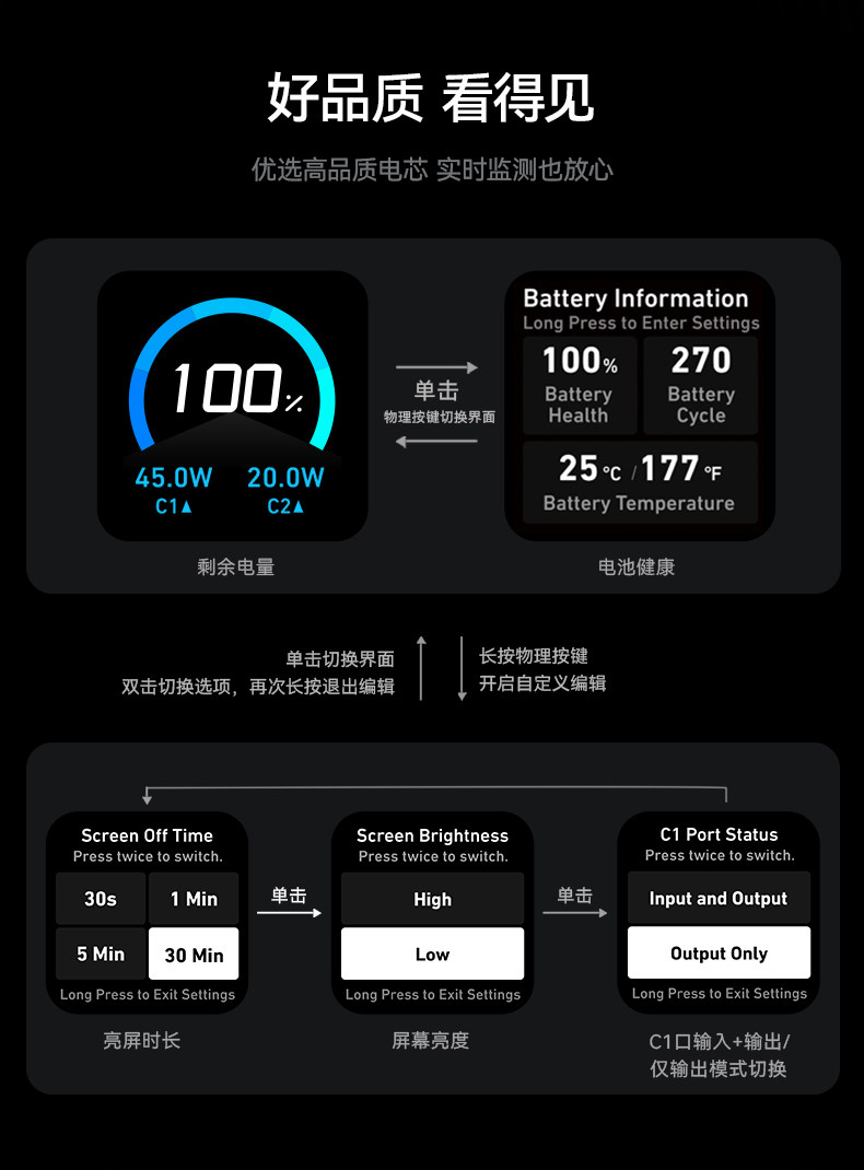 | Color Classification | [Interstellar Black] Lcd Digital Display⚡Dual Port 65W Flash Charging⭐️Comes with Folding Plug⭐️Compatible with Apple 6-17/Huawei/Android Flash Charging,【Add to Cart & Favorite】Get a Free 1m 100W Braided Cable + Storage Bag + Lanyard,[New National Standard 3C Certification] Can Be Boarded on the Plane & Certificate Number 2024180907058205 |
