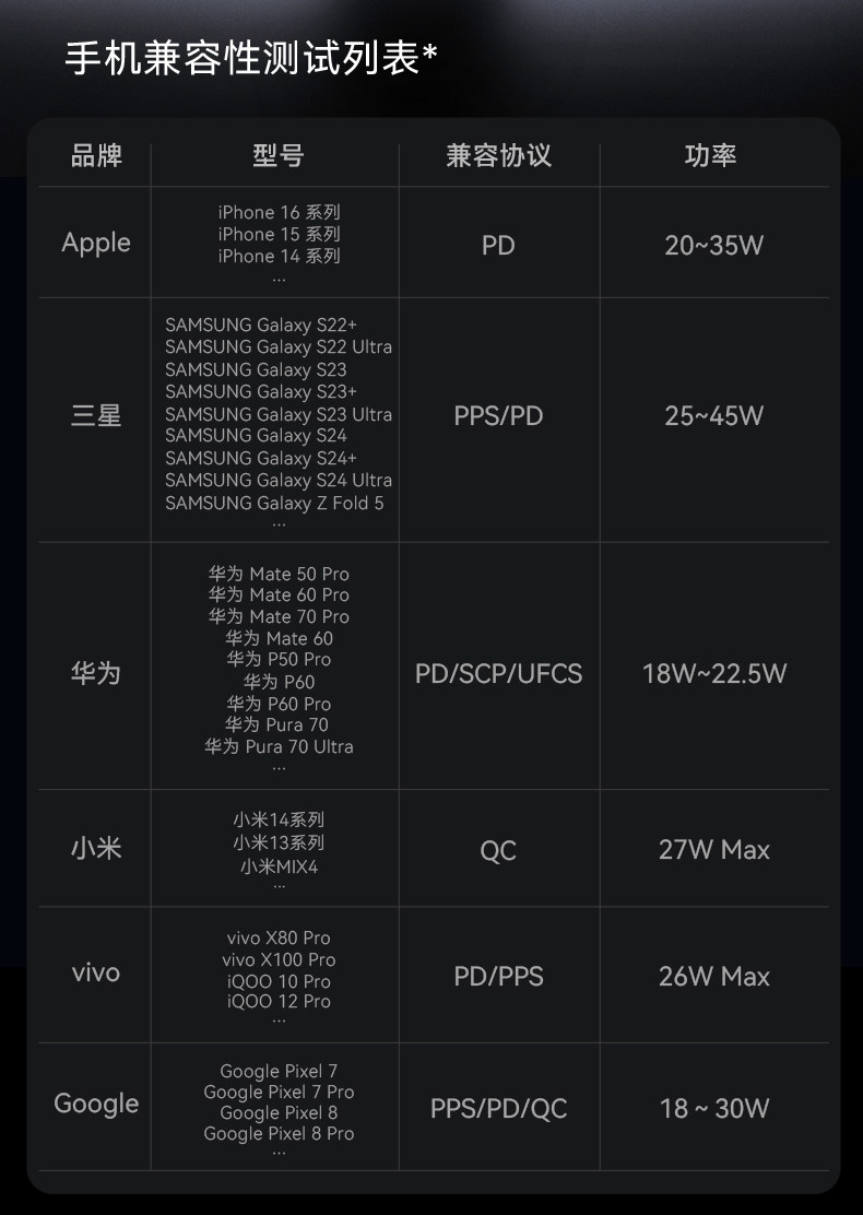 | Charging Protocol | Afc.,Pd 3.0,Scp's,Fcp's,Qc 3.0,B.C. 1.2,Ufcs Integrated Fast Charging: 65W Pps: 65W (Supports Samsung 45W+25W) |