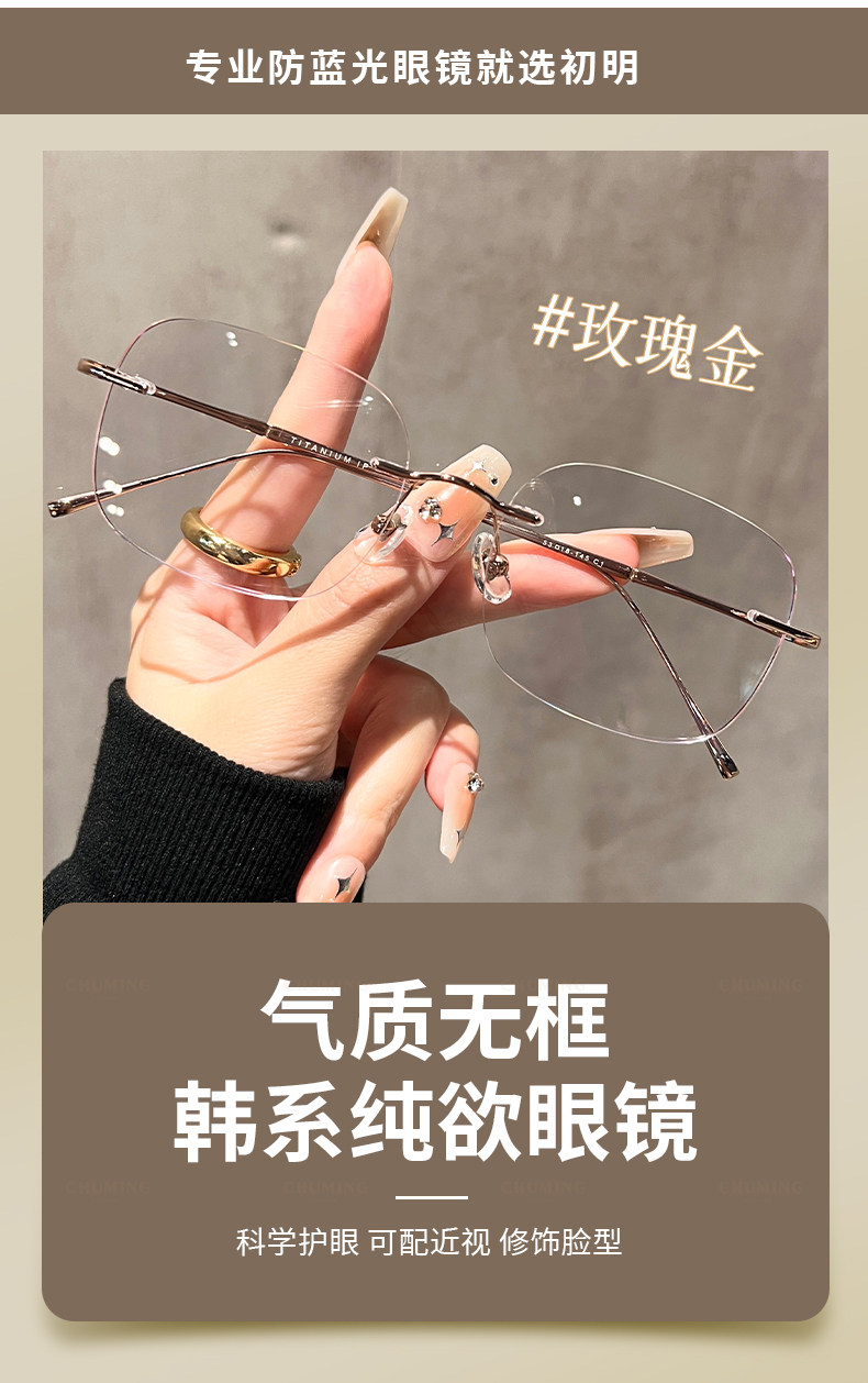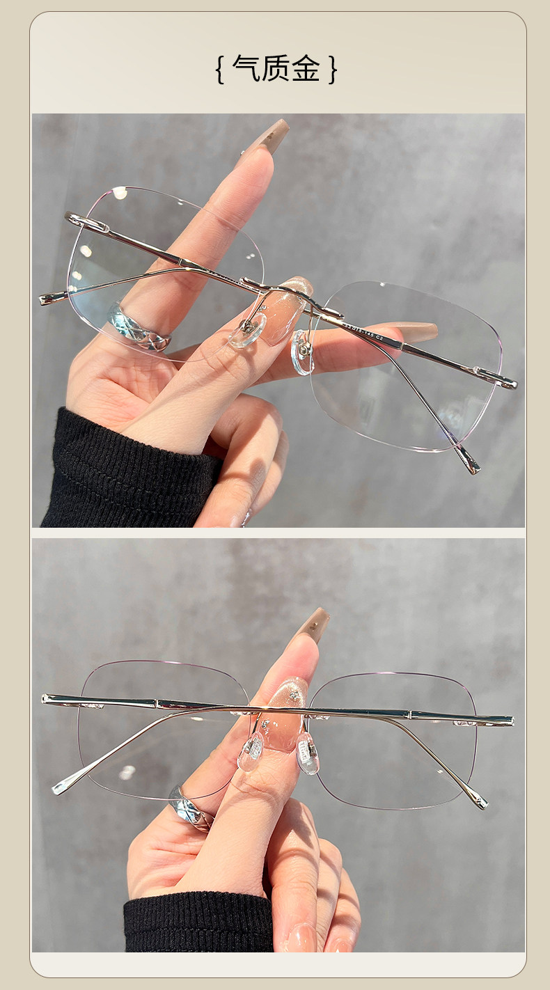 Ultra-Light Titanium Frameless Glasses for Women with Myopia, Can Be Customized with Prescription, Natural Look, Face-Slimming, Rimless Eyeglass Frame