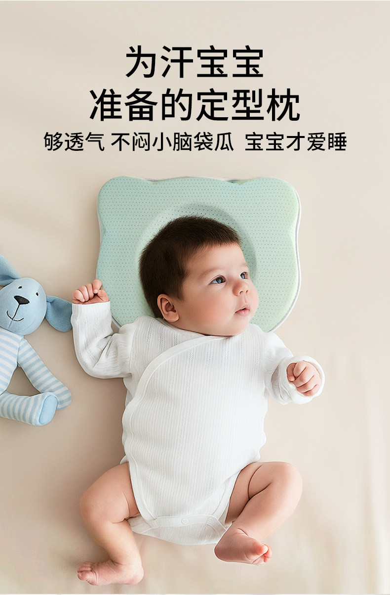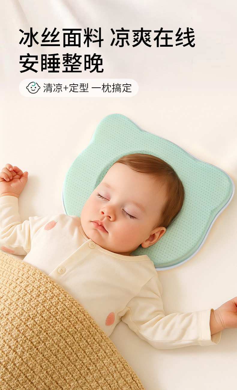 Newborn Baby Shaping Pillow 0 to 6 Months Anti-Eccentric Head Ice Silk Baby Pillow Infant Fixed Sleeping Head Shape Artifact