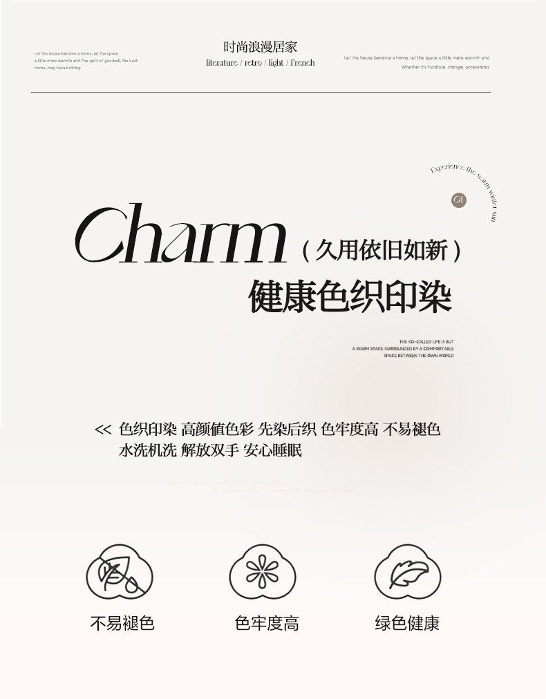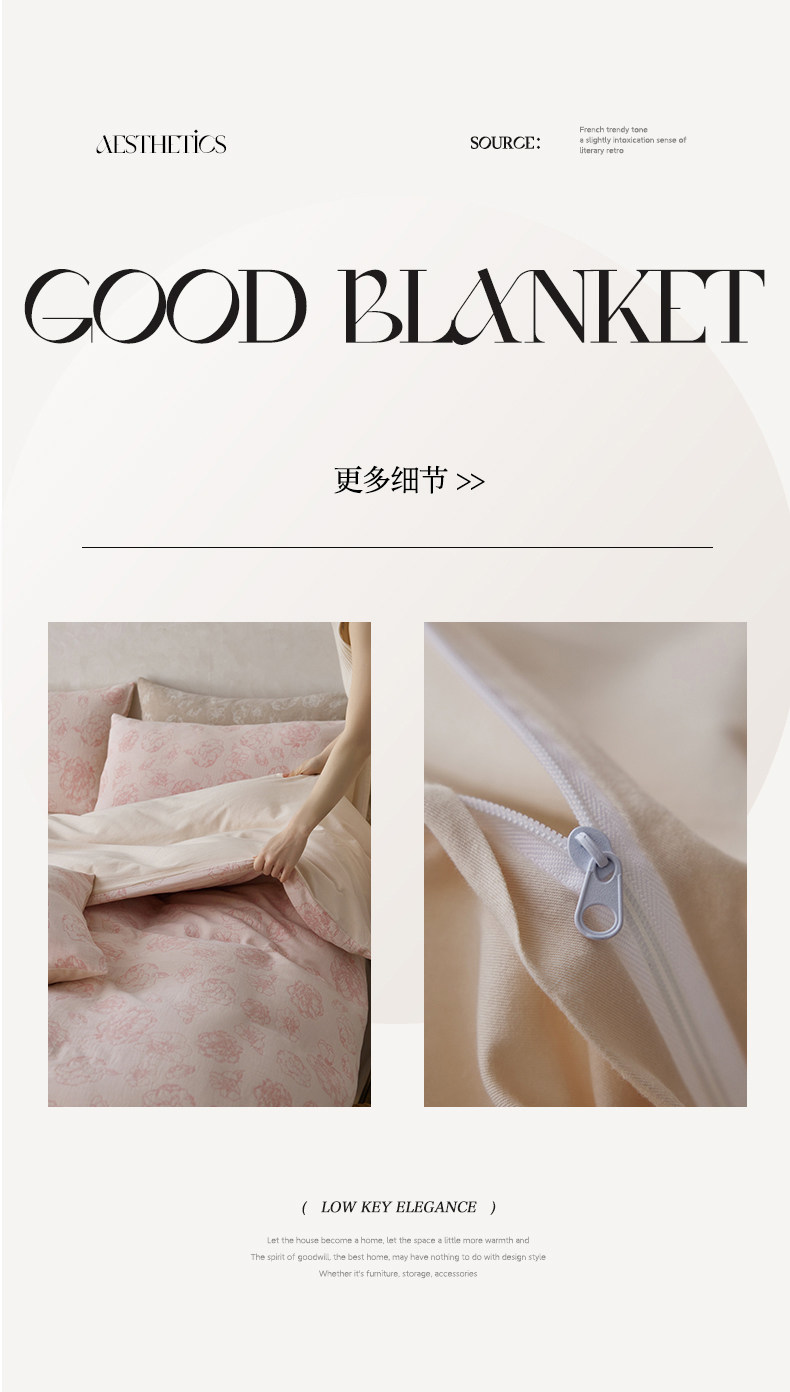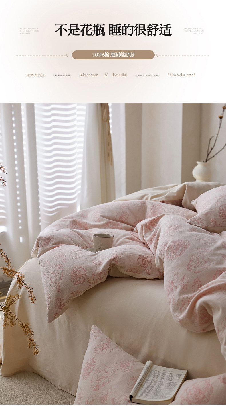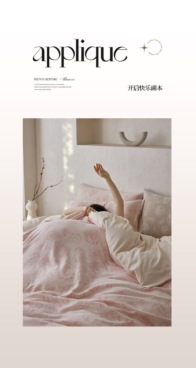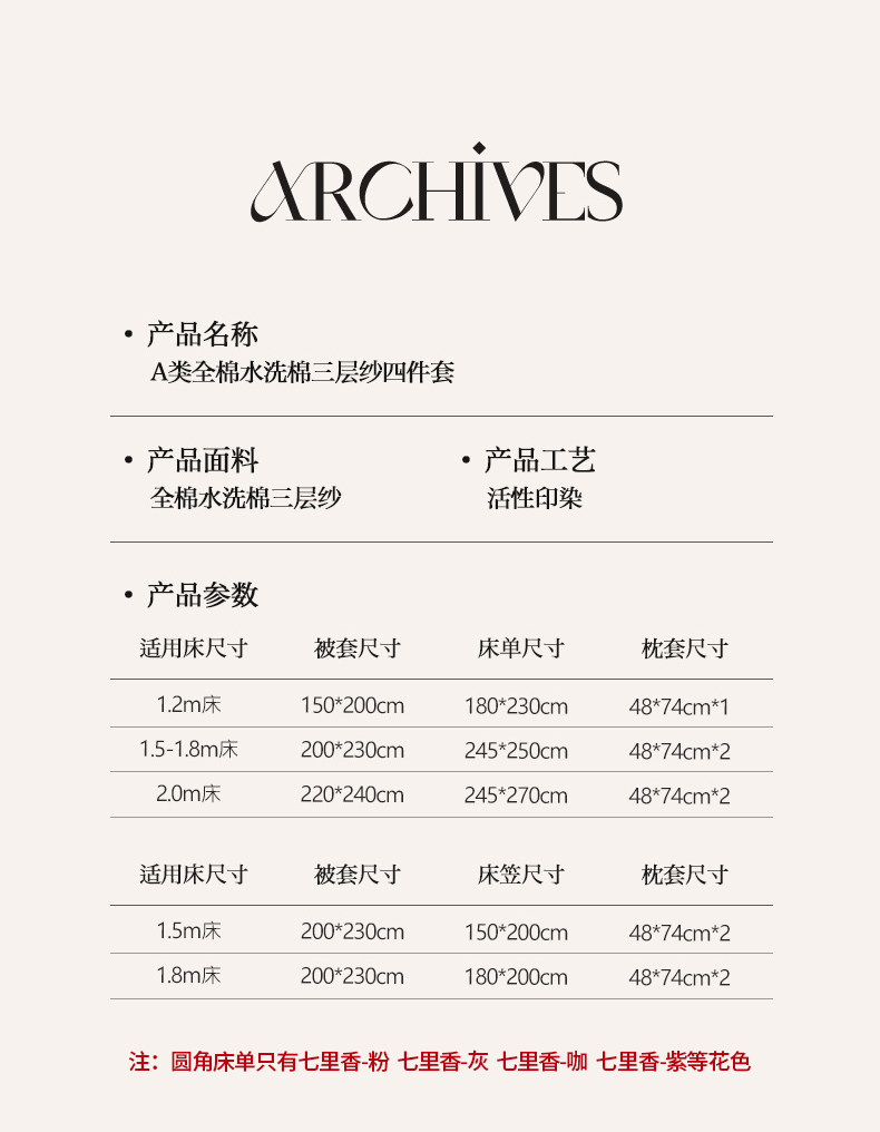 | Applicable Bed Size | 1.2m Bed Sheet Three-Piece Set [Sheet*1+Quilt Cover*1+Pillowcase*1],1.5m Bed Sheet Four-Piece Set [Sheet*1+Quilt Cover*1+Pillowcase*2],1.8m Bed Sheet Four-Piece Set [Sheet*1+Quilt Cover*1+Pillowcase*2],2.0m Bed Sheet Four-Piece Set [Sheet*1+Quilt Cover*1+Pillowcase*2],1.5m Fitted Sheet Set of Four [Fitted Sheet*1+Quilt Cover*1+Pillowcase*2],1.8m Fitted Sheet Set of Four [Fitted Sheet*1+Quilt Cover*1+Pillowcase*2] |
