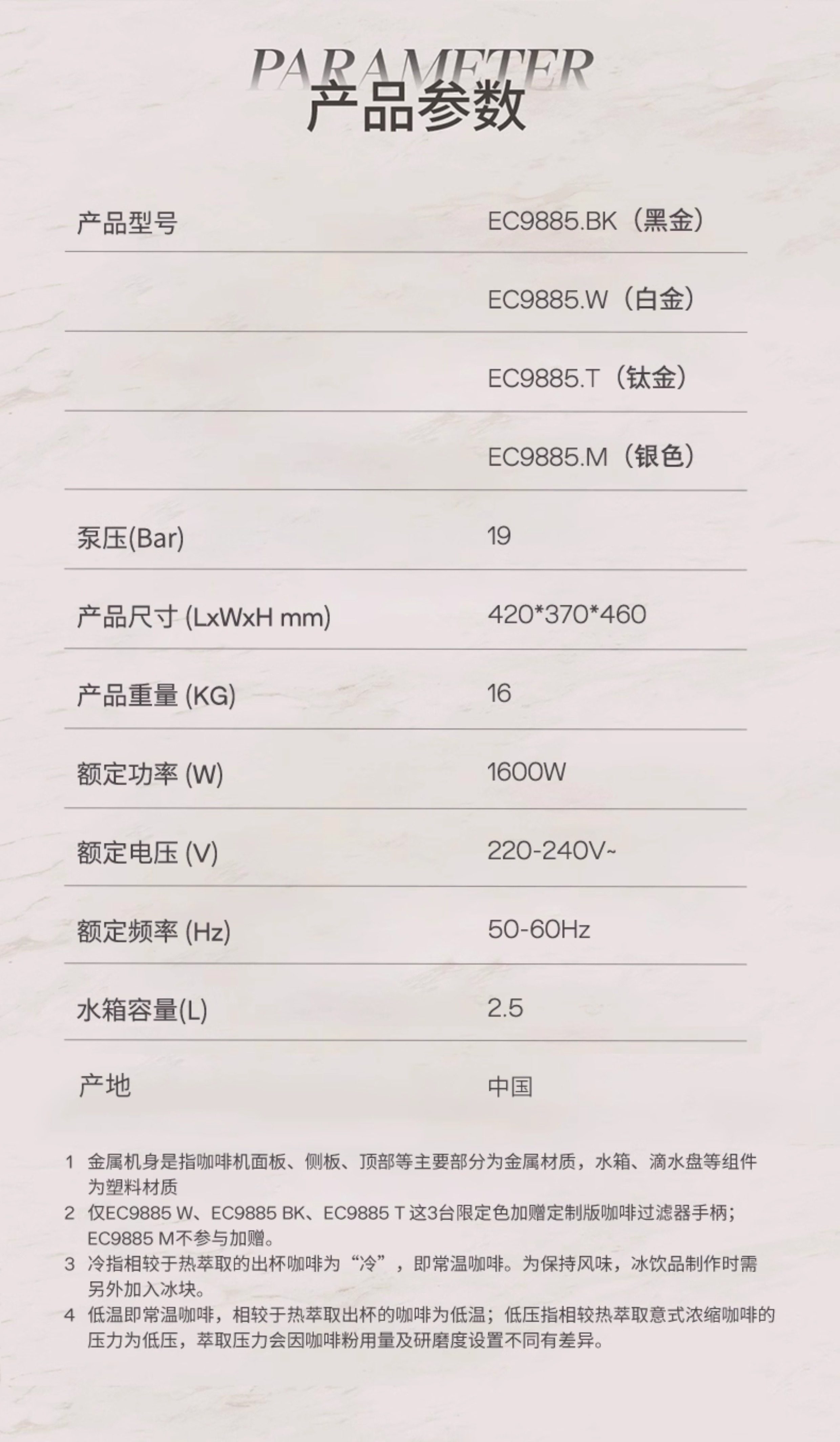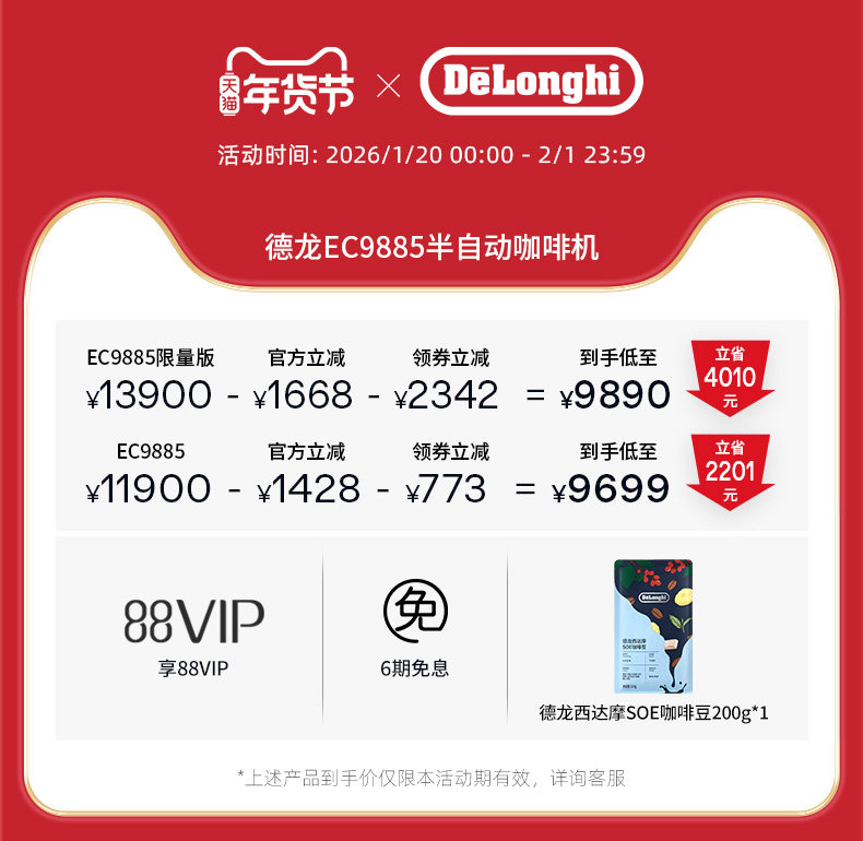 Delonghi De'Longhi Ec9885 Cold Brew Version Silver Knight Integrated Grinding Semi-Automatic Coffee Machine for Home and Commercial Use