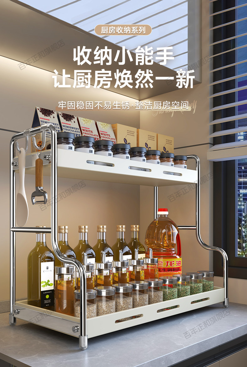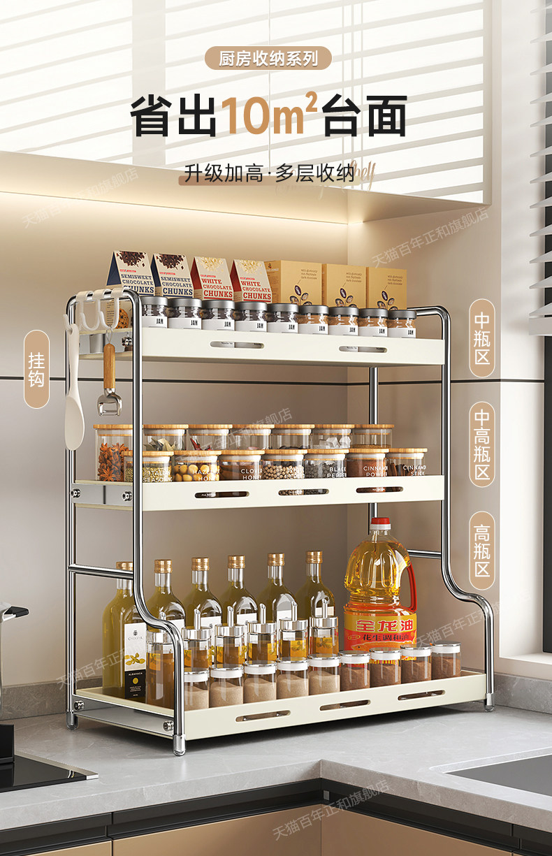 Kitchen Spice Rack Countertop Multifunctional Household Seasoning Rack Salt Seasoning Box Jar Multi-Layer Storage Shelf