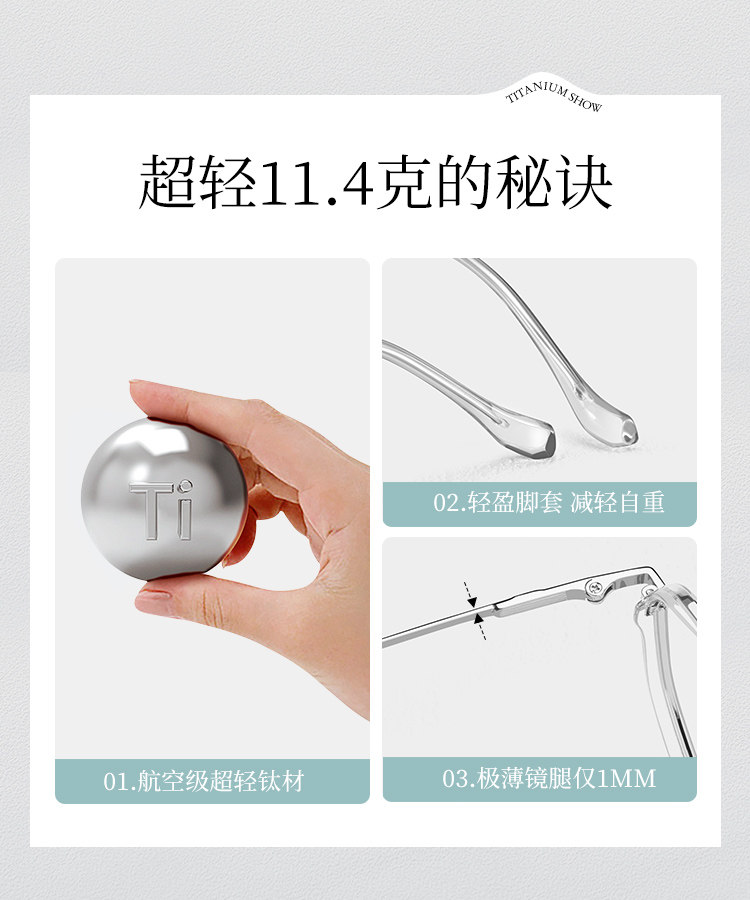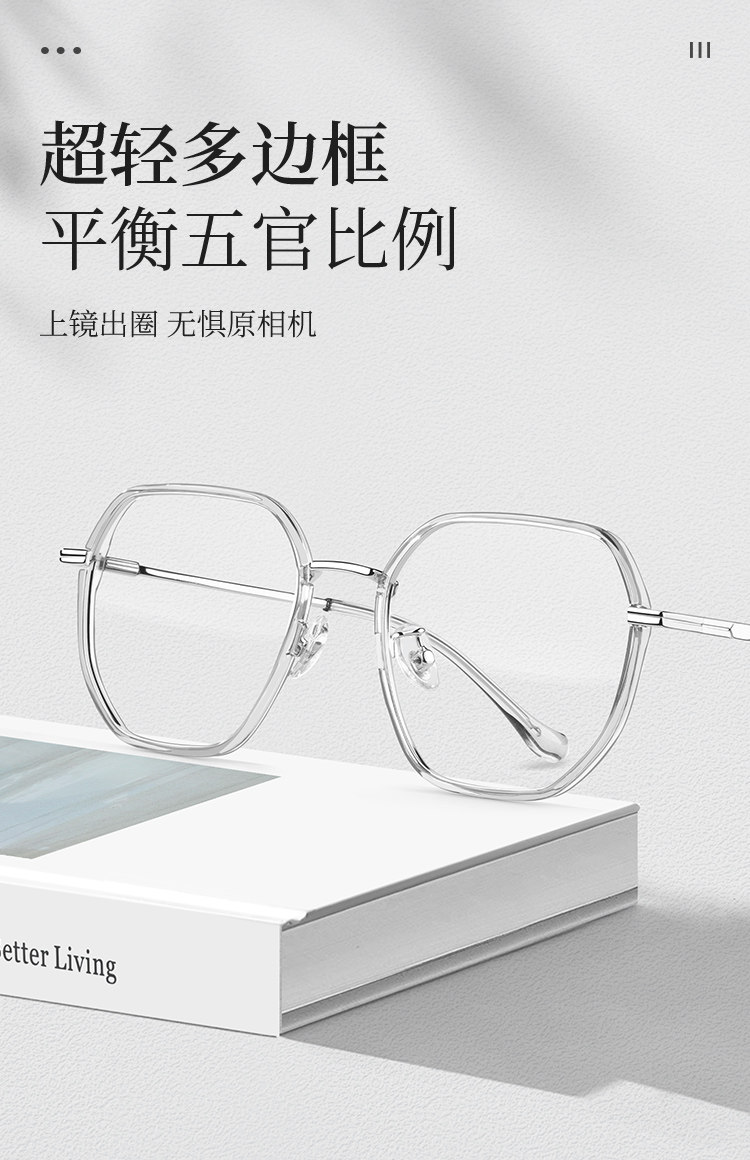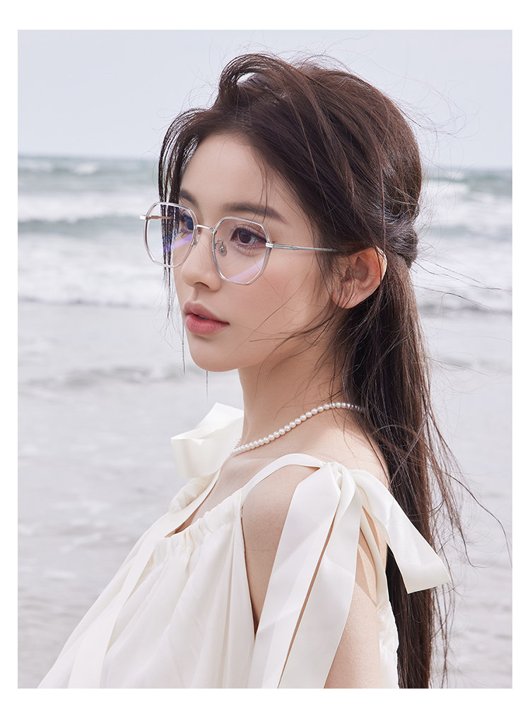 Kagamine Ultra-Light Pure Titanium Myopia Glasses for Women, Customizable Prescription, High-End Polygonal Professional Blue Light Blocking Eyeglass Frames