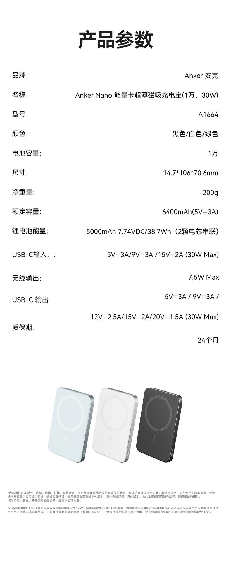 | Color Classification | [Same Series on the Official Website] Anker Power Bank Has Been Put on the Apple Store,[No Extra Price for Extra Quantity] Ultra-Thin Magnetic Power Bank (10000 Mah, Ultra-Thin),[Aurora White] 1.47cm Ultra-Thinâ30W Flash ChargingâSatin Skin-Friendly FeelâHigh-End Luxury Metal Mid-Frame,[Phantom Black] 1.47cm Ultra-Thinâ30W Flash ChargingâSatin Skin-Friendly FeelâHigh-End Luxury Metal Mid-Frame,[Mint Green] 1.47cm Ultra-Thin â 30W Flash Charging â Satin Skin-Friendly Feel â High-End Luxury Metal Mid-Frame |
