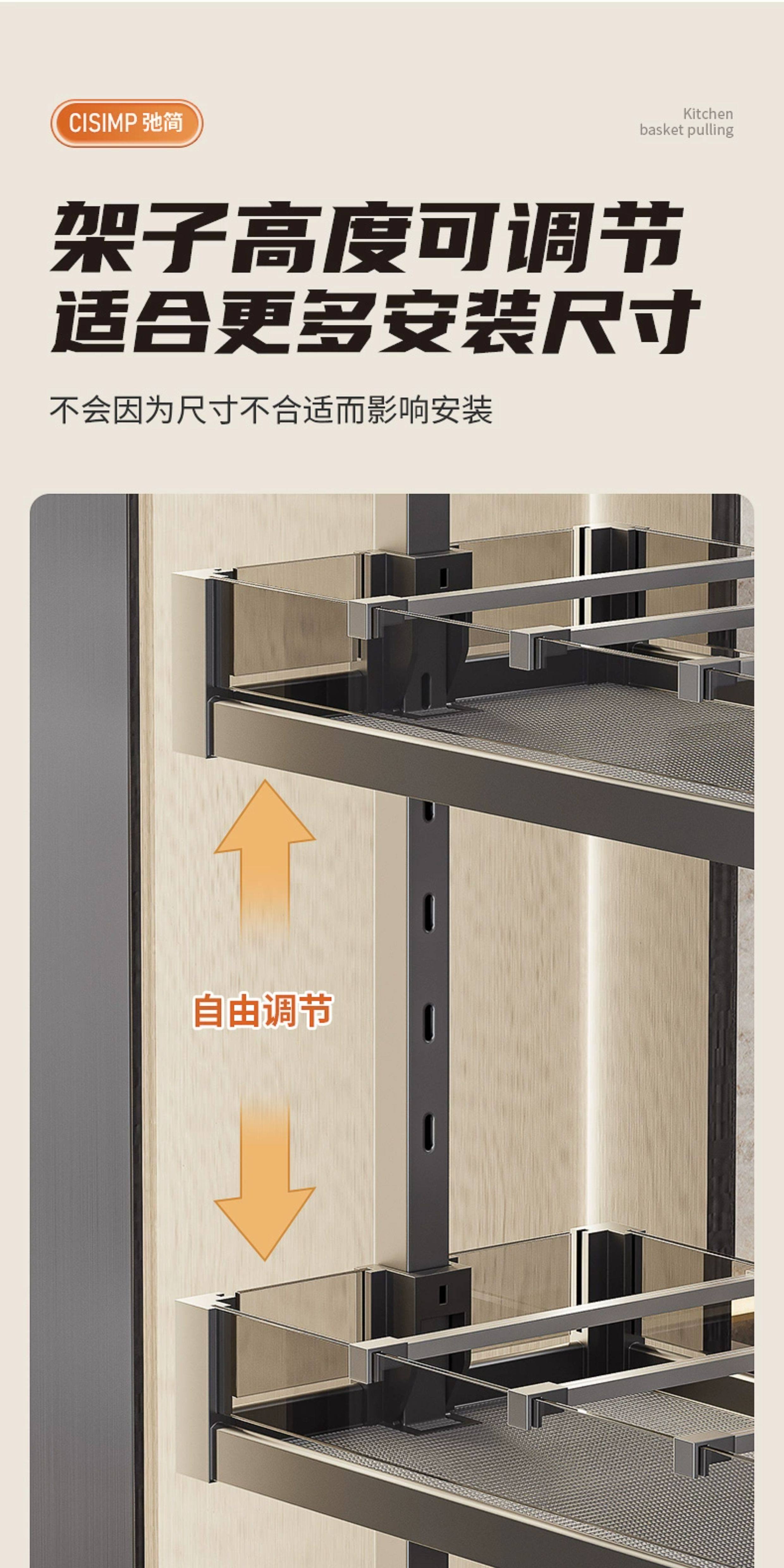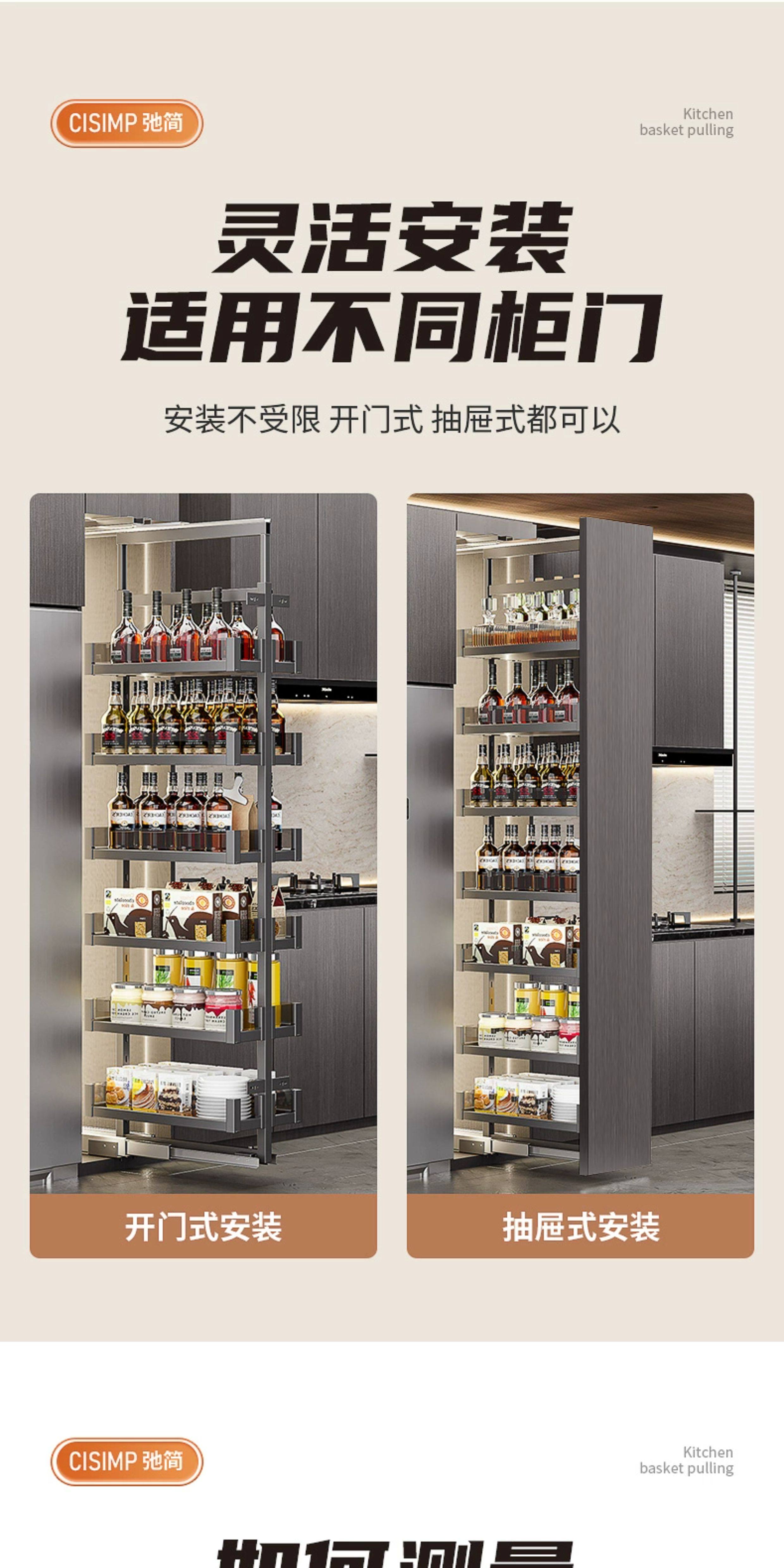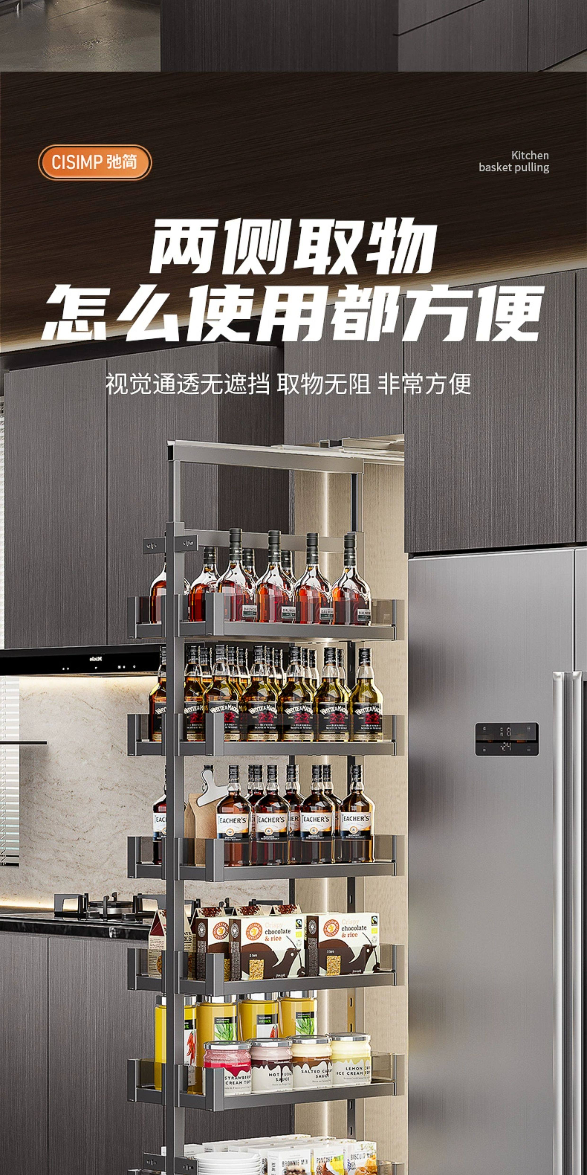 Cisimp Relaxed Kitchen Cabinet Snack Cabinet Pull Basket Big Monster High and Deep Side Cabinet Sandwich Storage Extremely Narrow Pull-Out Cabinet
