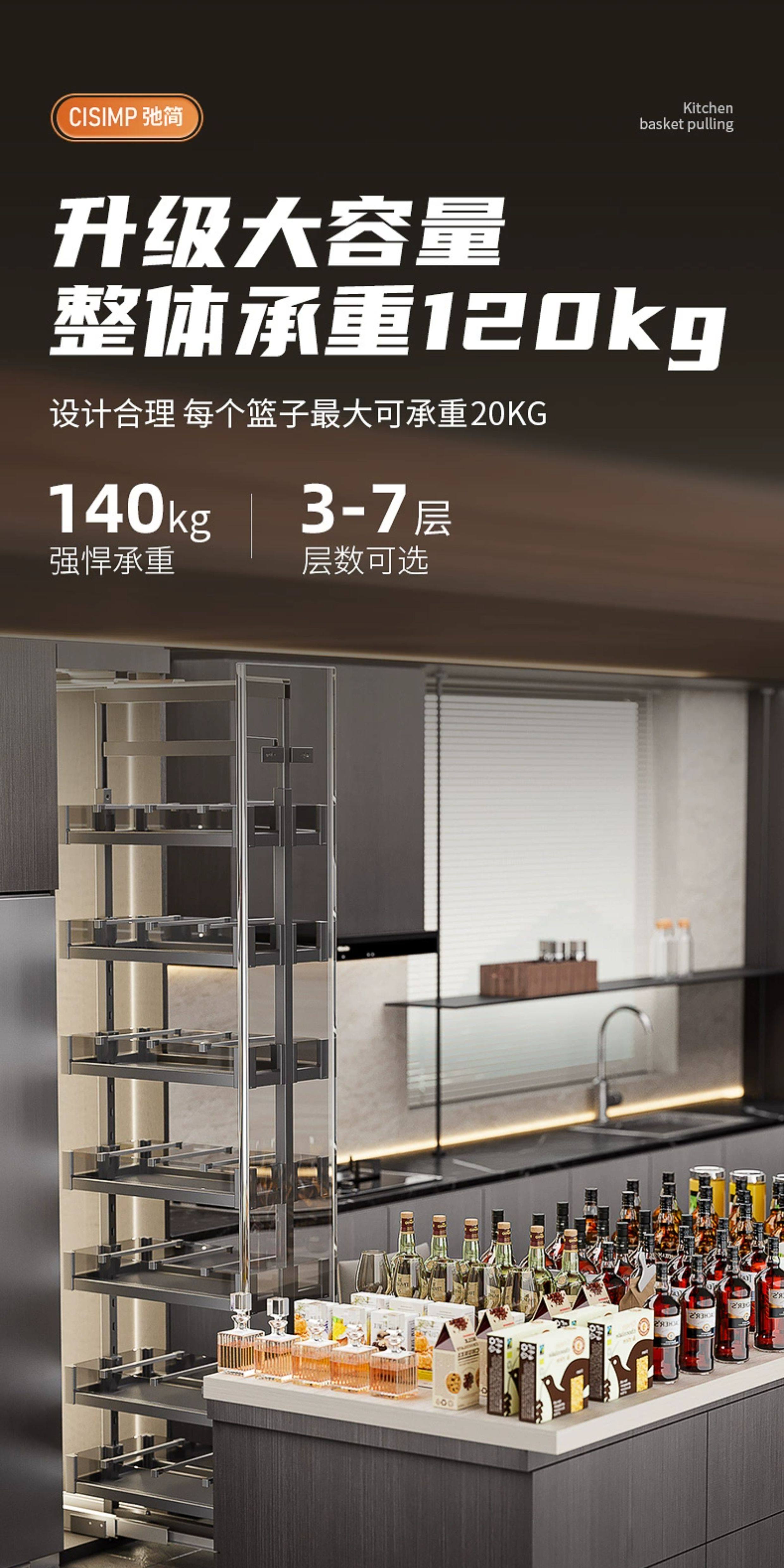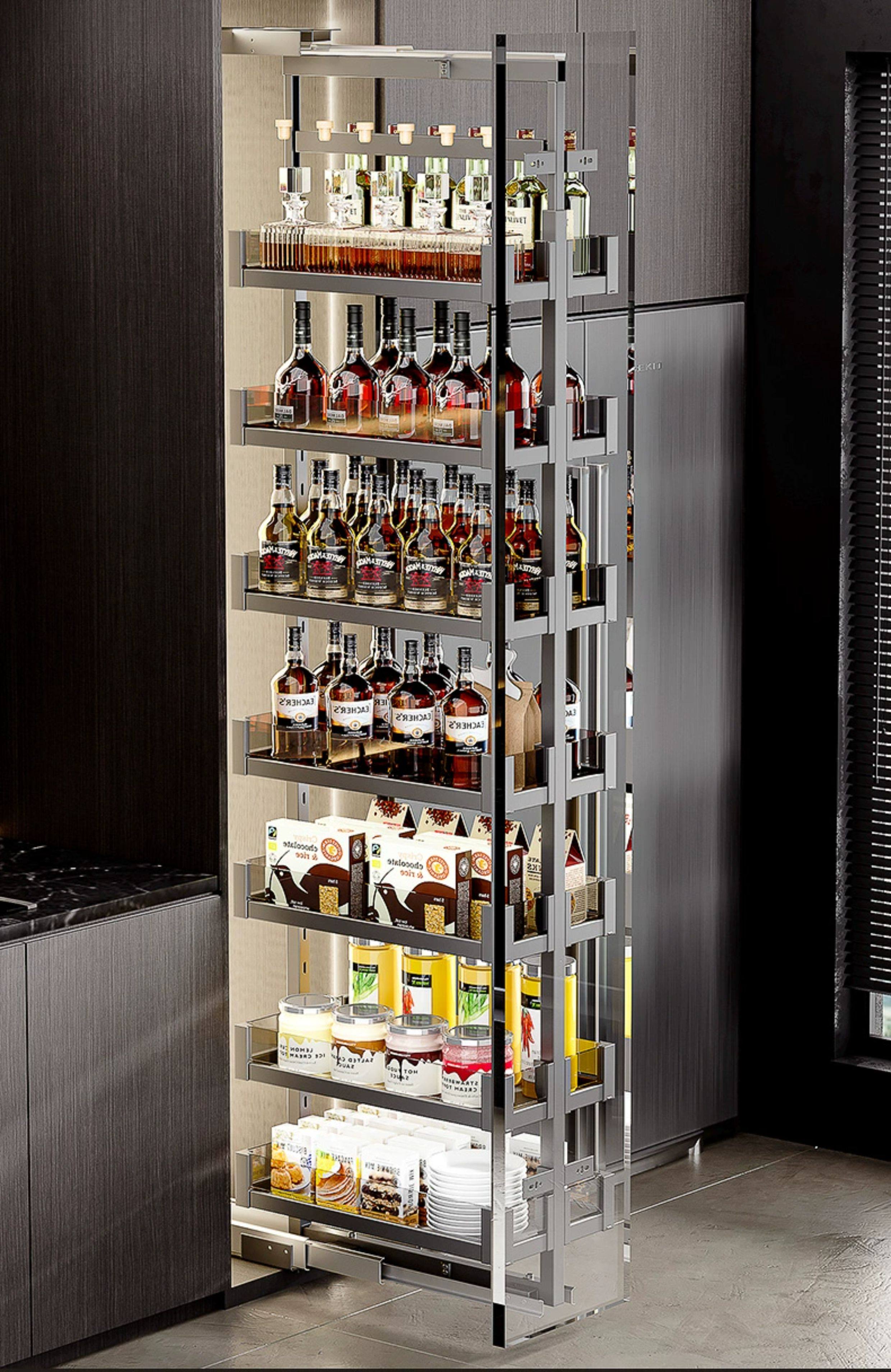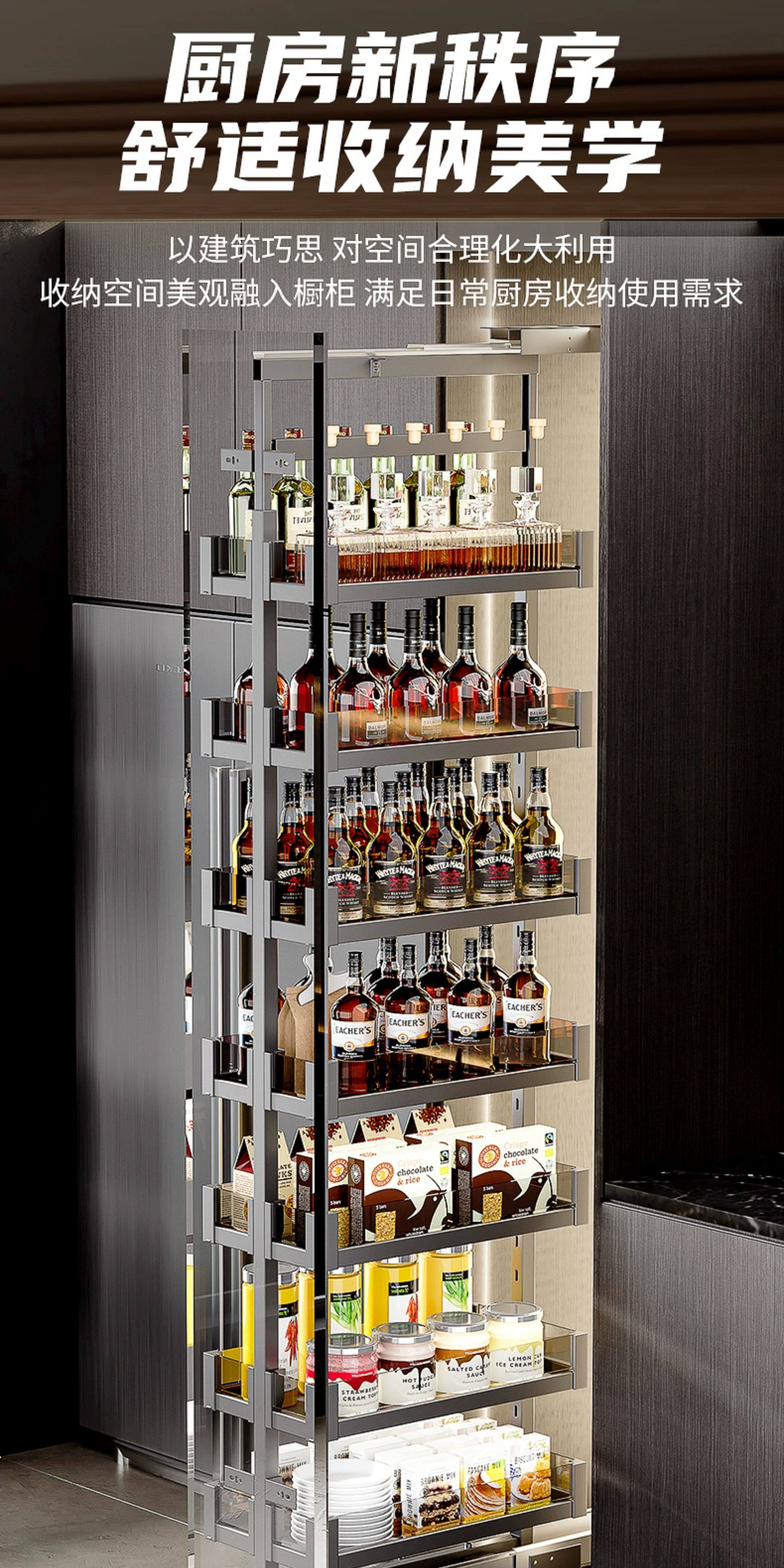 Cisimp Relaxed Kitchen Cabinet Snack Cabinet Pull Basket Big Monster High and Deep Side Cabinet Sandwich Storage Extremely Narrow Pull-Out Cabinet