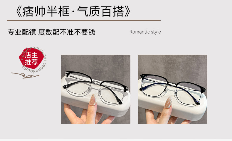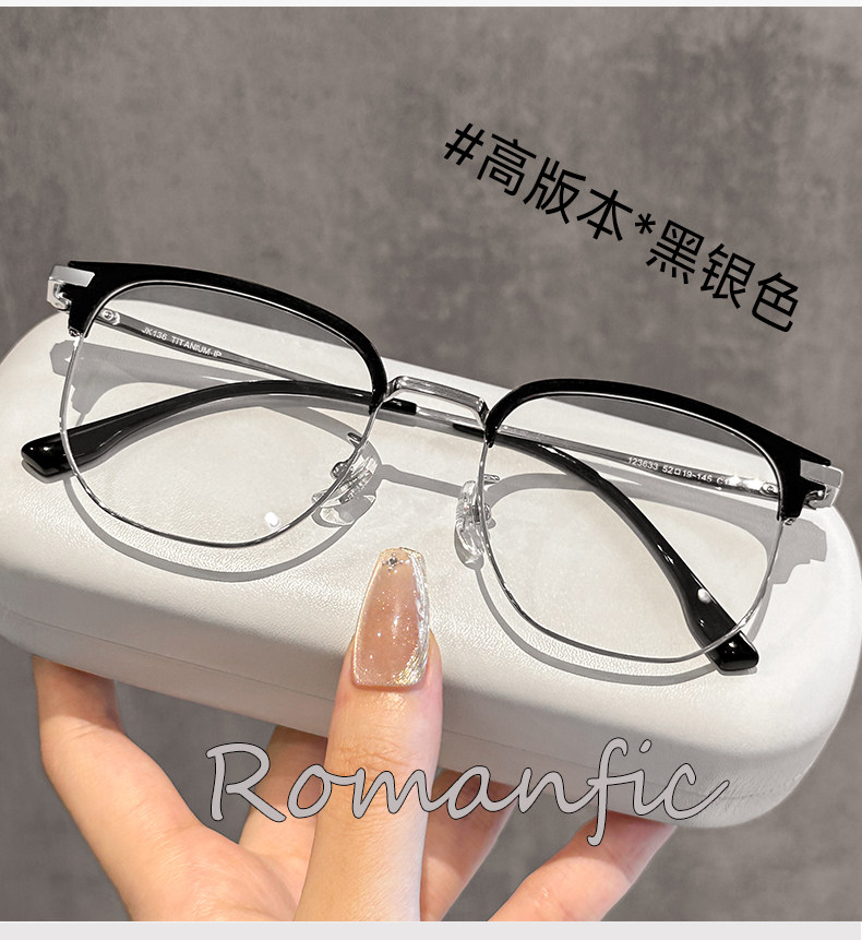 Half-Frame Glasses for Men with Nearsightedness, Cool and Stylish, Can Be Customized with Prescription, Astigmatism, Blue Light Protection, Ultra-Light Titanium Frame, Professional Online Prescription Glasses