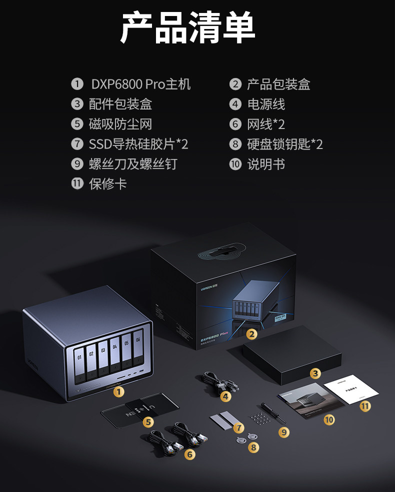 Greenlink Private Cloud Dxp6800Pro Six-Bay Nas Network Storage Server Ai Photo Album Enterprise-Level Security Office Team Cloud Disk File Sharing Automatic Backup Permission Hierarchy Management
