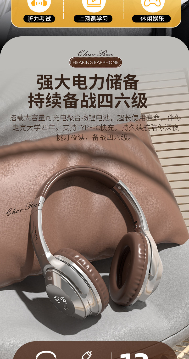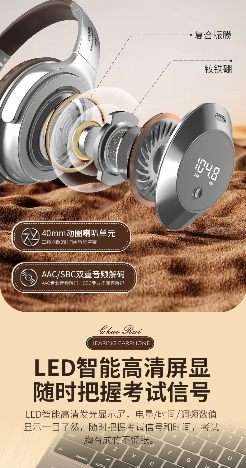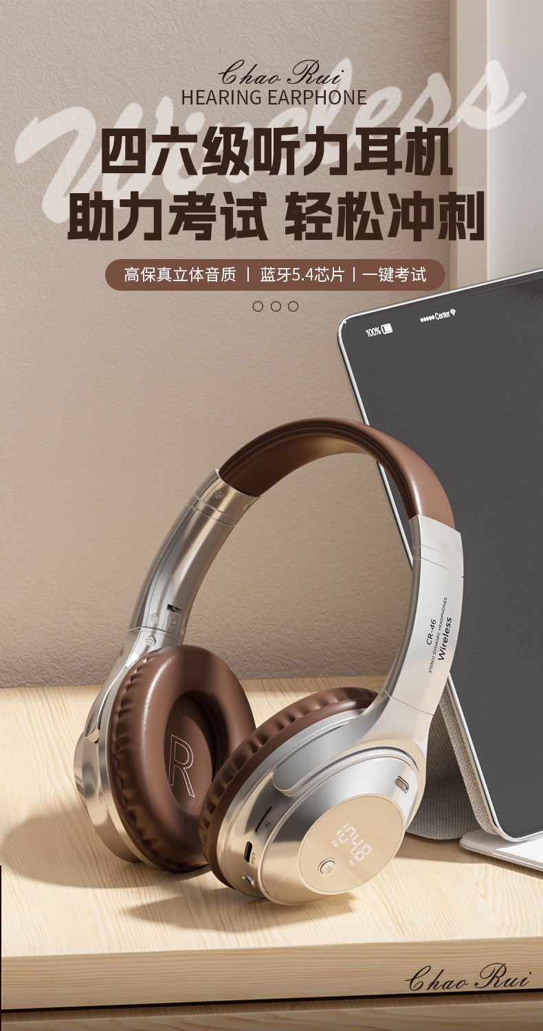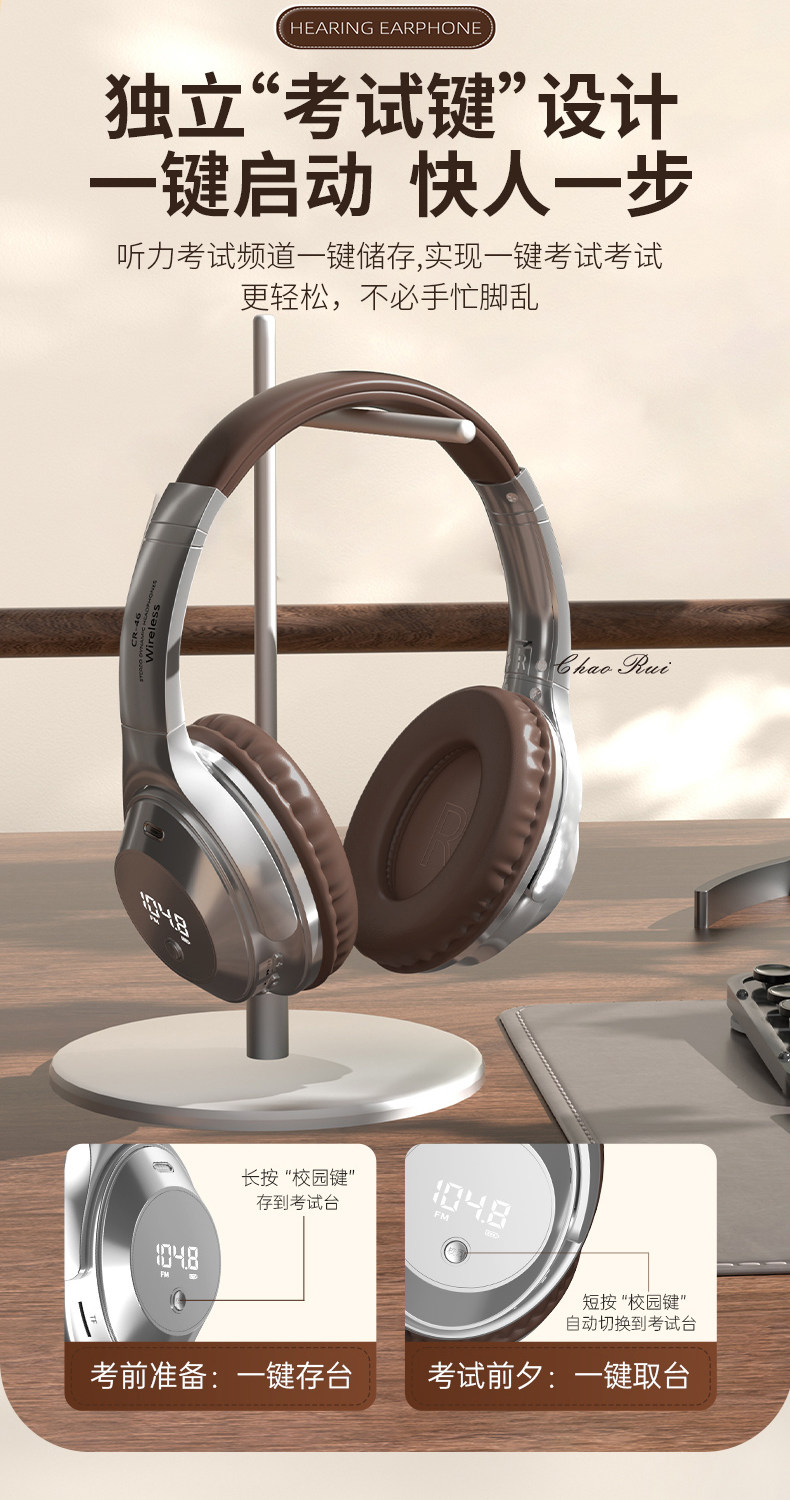 Head-Mounted Wireless Bluetooth Headphones for Cet-4 and Cet-6 Exams, Fm Radio for College Level 4 Exams, Retro Style