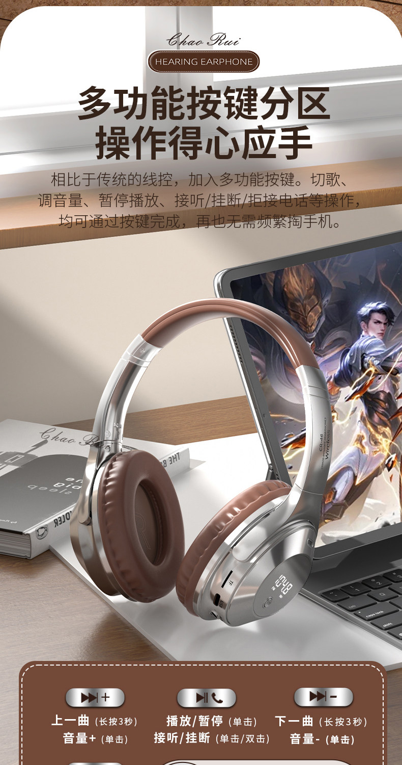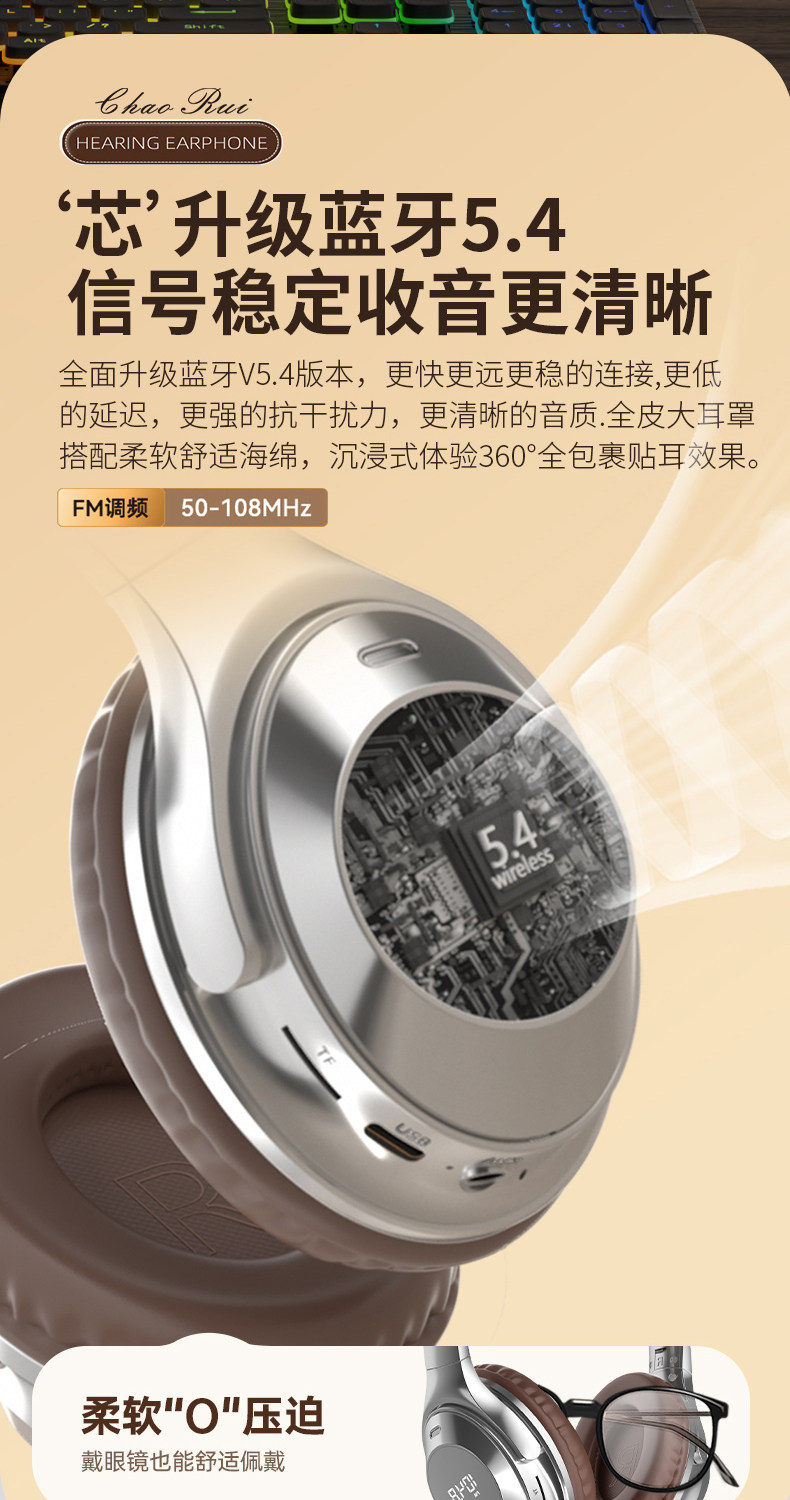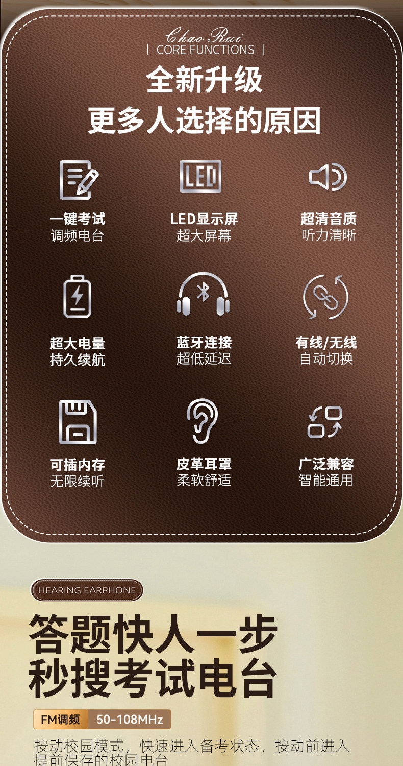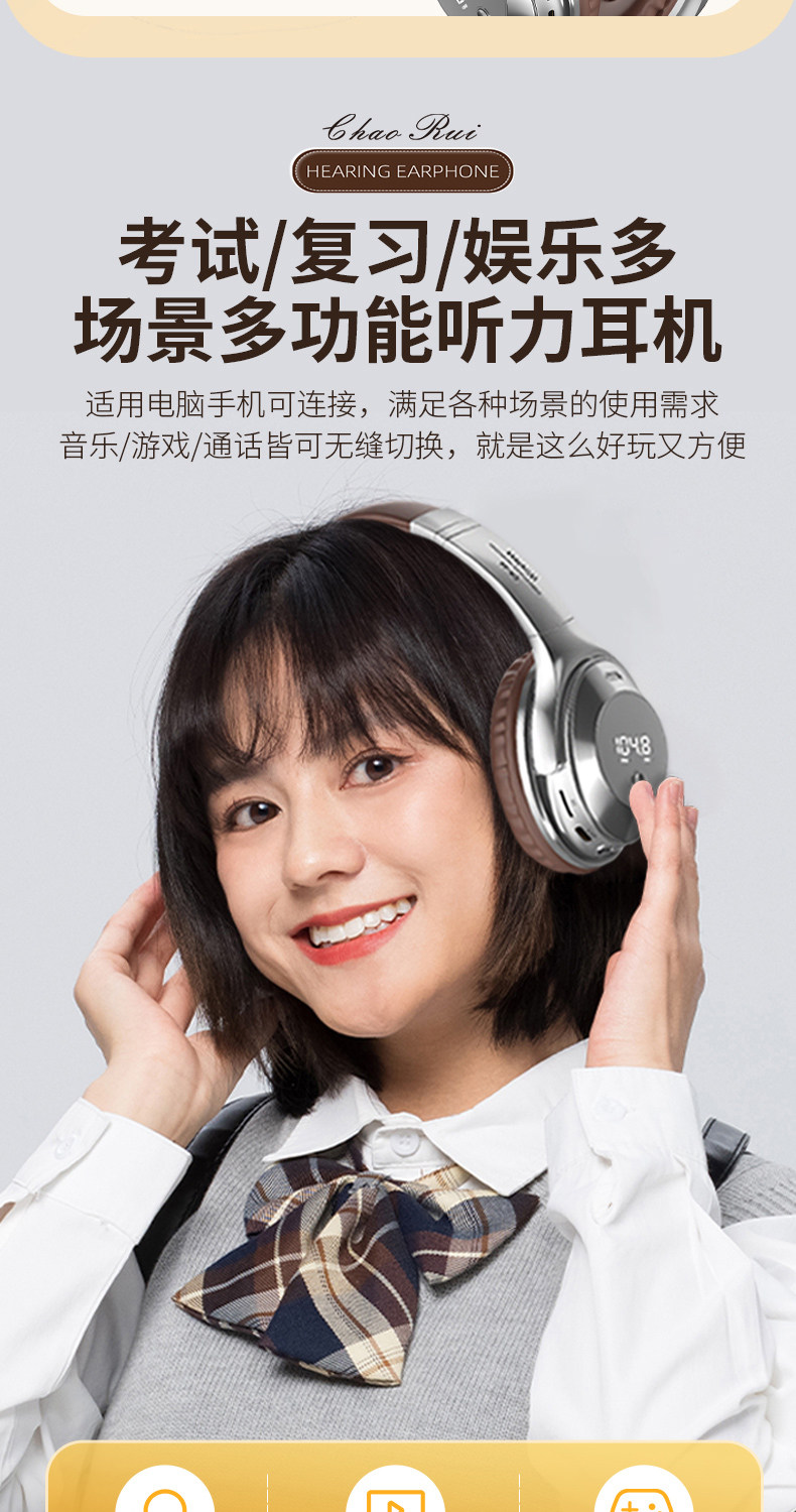Head-Mounted Wireless Bluetooth Headphones for Cet-4 and Cet-6 Exams, Fm Radio for College Level 4 Exams, Retro Style