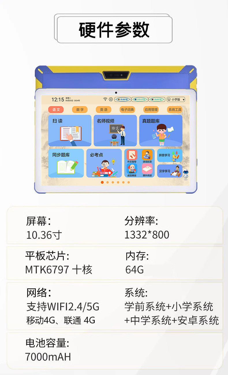 [Daily Discounts on Education Products] Quick Translate K1 Eye-Protecting Large-Screen All-Subject Learning Machine, English Reading Machine, Elementary, Middle, and High School New Curriculum Standard Synchronized Student Tablet Tutoring Machine 10.3inch