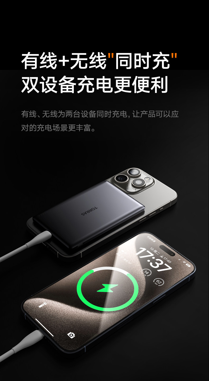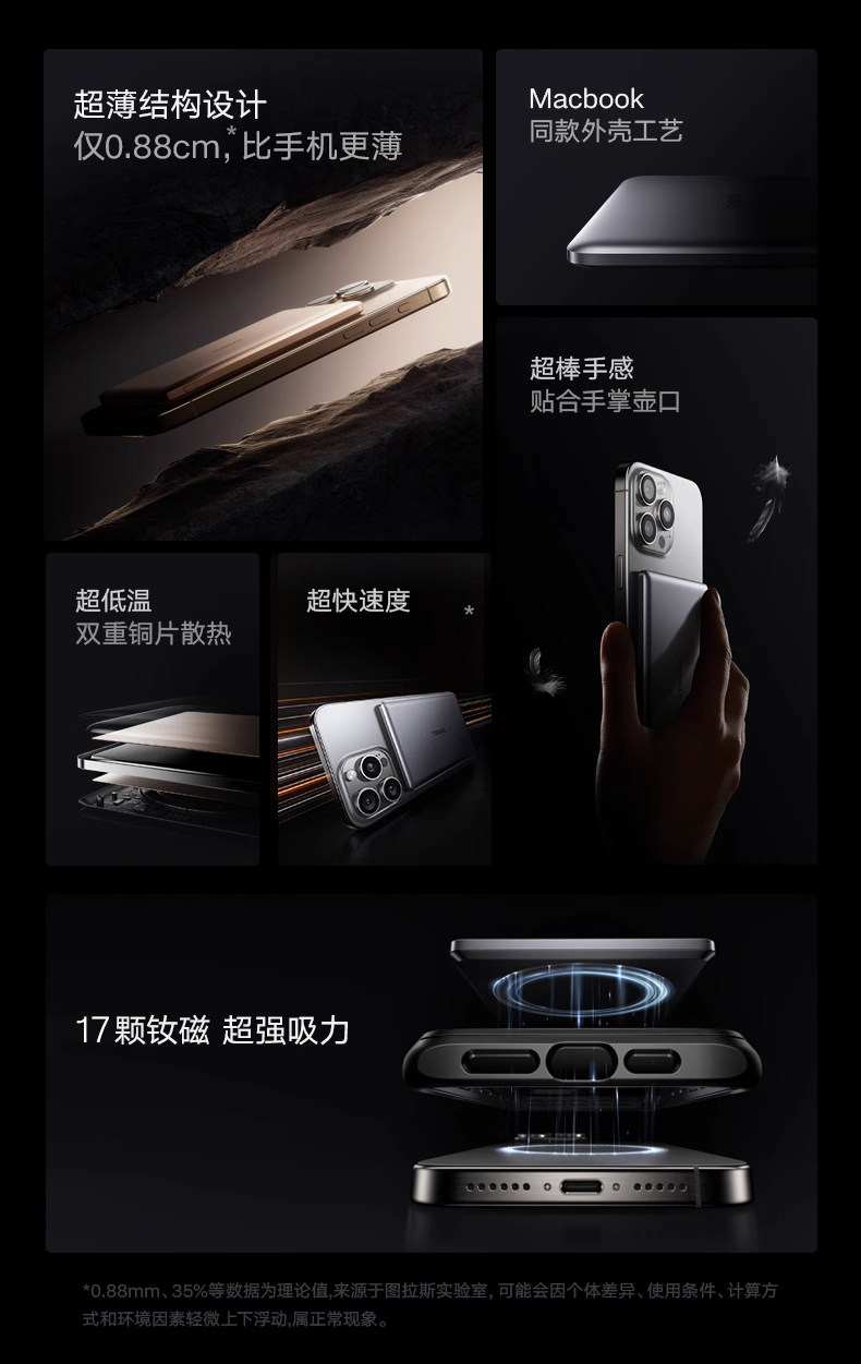 Turas Magnetic Power Bank Xiaoyunbao Is Suitable for Apple 17 Mini, New National Standard 3C Certified, iPhone Mobile Power Supply Certified, Wireless Model, Ultra-Thin, Compact, Portable, Can Be Carried on Airplanes