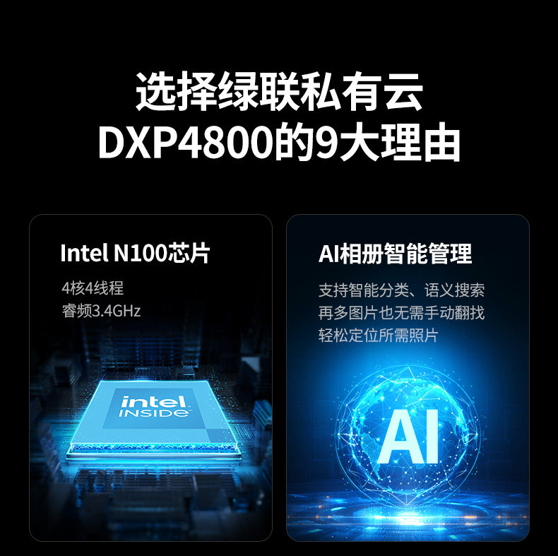Greenlink Private Cloud Dxp4800 Four-Bay Nas Home Network Storage Host Server Personal Cloud Hard Drive Ai Photo Album File Synchronization N100 Chip Mobile Phone Tablet Expansion